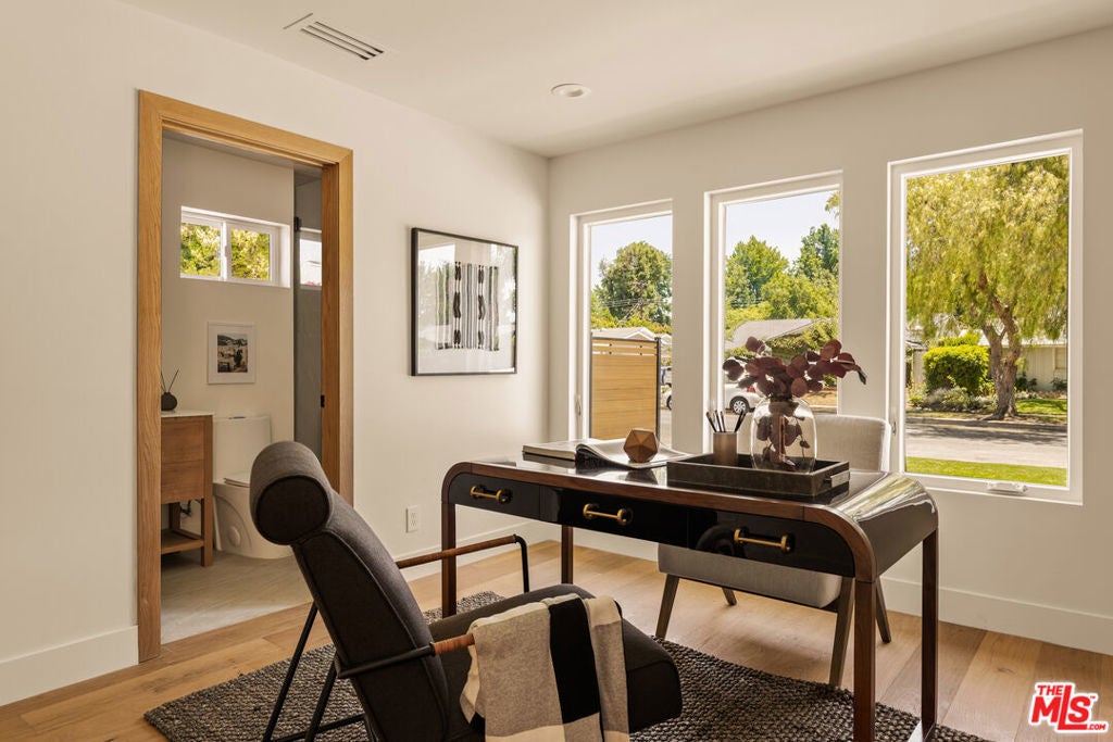 Stunningly reimagined with a refined eye for design, 5263 Buffalo Ave is a newly remodeled masterpiece that blends modern sophistication with timeless California living. Nestled on a quiet, tree-lined street, this home welcomes you with an expansive entryway bathed in natural light and framed by elegant olive trees, setting the tone for what's to come.Inside, wide-plank natural oak flooring leads you through an airy, open-concept floor plan designed for seamless indoor-outdoor living. At the heart of the home is a magazine-worthy chef's kitchen featuring an oversized island wrapped in natural stone, custom white oak cabinetry and shelving, Thermador appliances, and a hidden oversized walk-in pantry perfect for both entertaining and everyday life.The serene primary suite is a true retreat, complete with a cozy fireplace, custom walk-in closet, and a spa-like bathroom adorned with designer finishes. Additional bedrooms offer flexible space for family, guests, or a stylish home office.Step outside to a private backyard oasis, complete with a custom-built outdoor BBQ, mature landscaping, and multiple spaces to unwind or entertain under the sun. Thoughtfully equipped with solar panels, smart systems, and premium upgrades throughout, this home offers not only beauty but function and sustainability. Perfectly located just moments from Ventura Blvd's premier dining, shopping, and top-rated schools, this exceptional property is turnkey luxury at its finest.