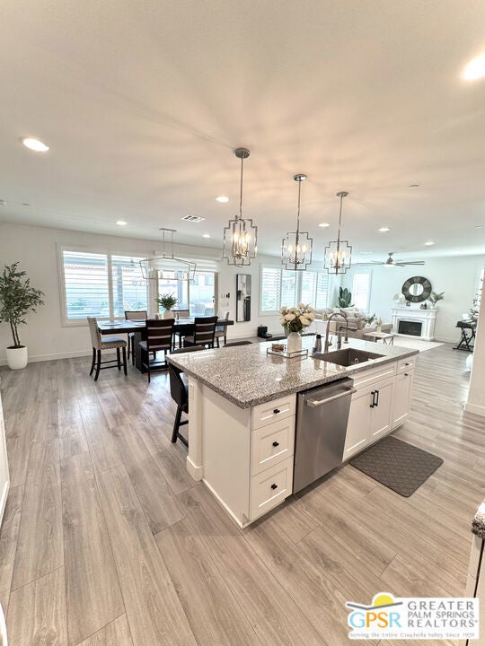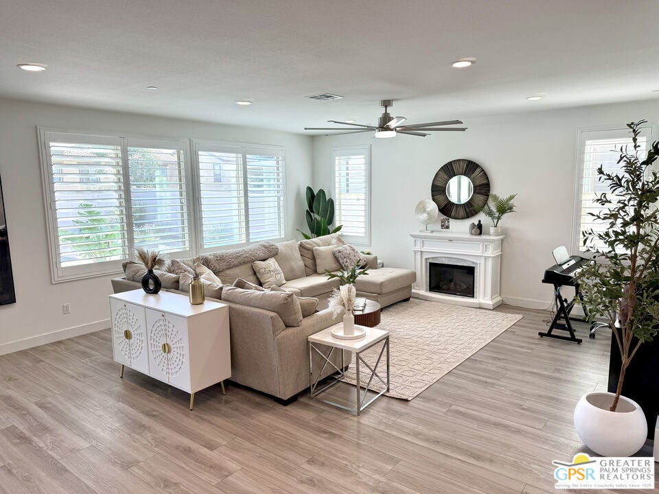 Welcome to your dream home! This stunning 5-bedroom, 3-bath residence, built in 2022, offers 3,293 sqft of modern living on a spacious 7,056 sqft lot. With over $100,000 in premium upgrades throughout the interior and backyard, this home is truly move-in ready and designed for both comfort and style.Step inside to discover upgraded stair railings with kickboards, designer light fixtures, and beautiful flooring that flows seamlessly throughout the open floor plan. The gourmet kitchen features upgraded cabinets and top-of-the-line appliances, perfect for any home chef. Throughout the home, you'll find custom real wood shutters valued at $10,000, adding both elegance and energy efficiency to every room. The versatile den with double doors is perfect for a home office or an extra bedroom to suit your needs.Upstairs, the expansive loft is equipped with upgraded ceiling speakers, creating the ultimate movie theater experience for family nights or entertaining guests. The 3-car garage boasts durable epoxy flooring and includes an electric car charging port, providing both style and modern convenience.Enjoy outdoor living year-round under the brand-new patio cover, which comes with a lifetime warranty and is engineered to support solar panels for future energy expansion. The professionally designed backyard is a true oasis, featuring a tranquil water fountain and a large storage unit included with the sale. The home is also equipped with rain gutters for added protection and peace of mind. Beyond your front door, the community offers an exceptional lifestyle with scenic walking trails, some featuring a picturesque river walk that leads to peaceful ponds. Residents also enjoy access to four community pools, each with BBQ grills, perfect for relaxing weekends and entertaining friends and family. Don't miss your chance to own this meticulously upgraded home that blends luxury, convenience, and thoughtful design in a vibrant community. Schedule your private tour today and experience all this exceptional property has to offer!