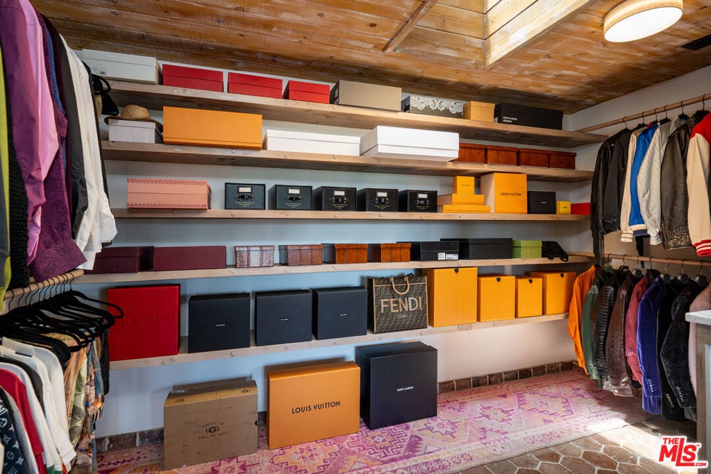 Beamed Ceilings, Wet Bar, Ceiling Fan(s), High Ceilings, Open Floorplan, Pull Down Attic Stairs, Recessed Lighting, Storage, Two Story Ceilings, Dressing Area, Walk-In Closet(s)