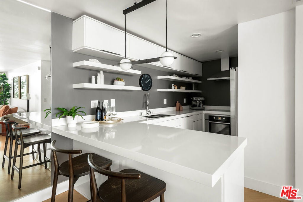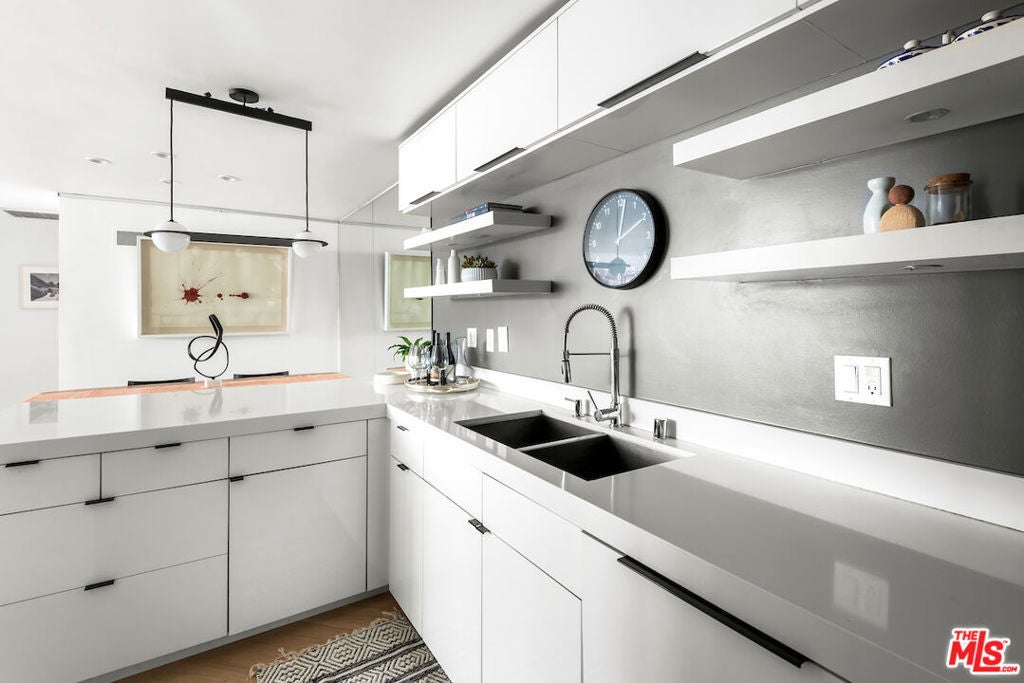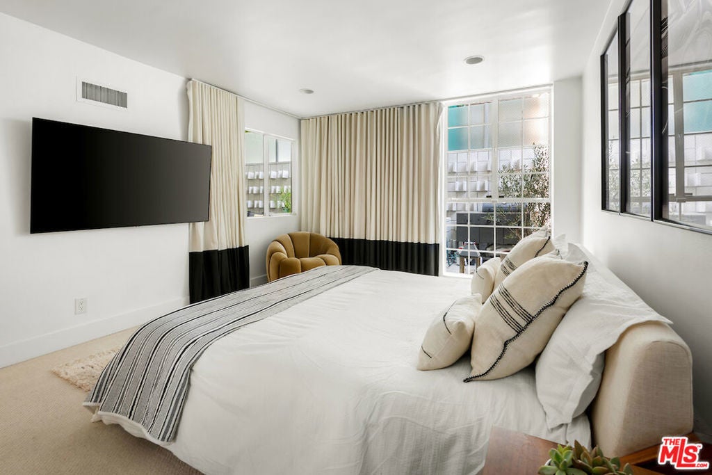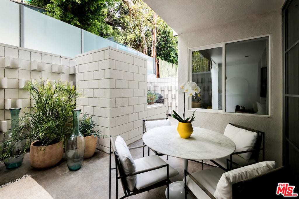 Experience Mid-Century Modern luxury steps from the Sunset Strip in Prime West Hollywood! This 2-bed, 2-bath residence blends timeless design with modern upgrades across 1,109 square feet, plus a rare large private patio, all in a stunning building designed by renowned architect Frank P. Schneider, AIA. Located on the quiet rear side of the building, this corner unit showcases clean architectural lines, a seamless open layout, and a floor-to-ceiling glass door that opens onto the largest private patio in the building, an outdoor sanctuary delivering unmatched space and tranquility. The updated kitchen features stainless steel appliances, granite countertops, and plenty of storage. Both bathrooms have been thoughtfully renovated with upgraded vanities, high-end fixtures, and state-of-the-art bidets. Throughout the home, new wide plank herringbone hardwood flooring elevates the aesthetic. Complemented by the convenience of in-unit laundry and side-by-side gated garage parking. Residents also enjoy access to a rooftop deck with panoramic city and ocean views. Enjoy this quiet and tranquil condo home on a peaceful street, just steps from all the action on the iconic Sunset Strip. Walk to Sunset Tower, Chateau Marmont, the Pendry and LA's best in dining, shopping and nightlife. Come experience this architecturally significant, extensively upgraded, and ideally located condo home for yourself.