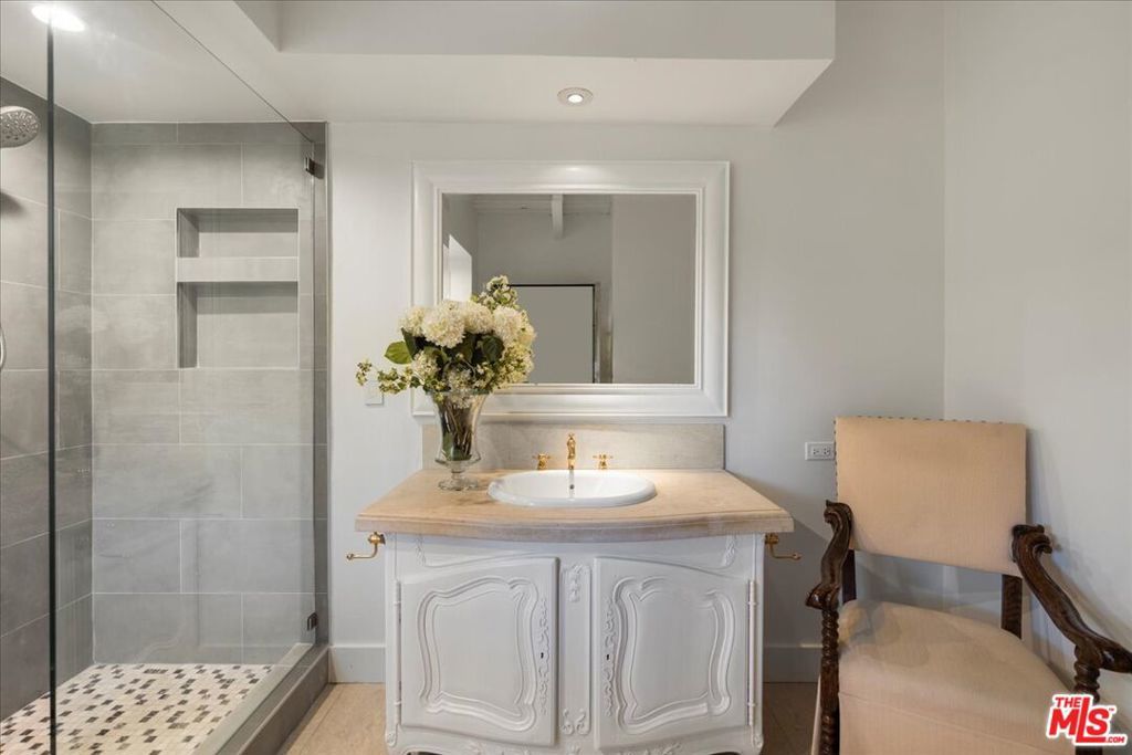 The Weinhart Estate. For the first time in nearly three decades, this rare architectural jewel crafted by the renowned Edward H. Fickett, FAIA comes to market. Often hailed as the "Frank Lloyd Wright of the 1950s," Fickett designed each residence as a bespoke work of art, harmonizing site, materials, and lifestyle. Set on an elevated corner lot in the tranquil hills above the flats, the home offers the perfect blend of privacy, pedigree, and location. Clean mid-century lines, soaring beamed ceilings, and walls of glass capture panoramic canyon views while seamlessly merging indoor and outdoor living. The residence unfolds with a dramatic pivoting front door, expansive living spaces anchored by a striking stone fireplace, and a 40-foot chef's kitchen outfitted with a 12-foot island, dual Wolf induction ranges, Sub-Zero refrigeration, and book-matched statuary marble. A marble-topped wet bar, sophisticated den, and thoughtfully designed entertaining areas reflect the era's timeless glamour. Upstairs, the skylit primary suite features a private balcony, marble fireplace, dual walk-in closets, and a spa-like bath. Additional guest suites echo the home's architectural integrity. Outside, lush landscaping surrounds a Pebble-finish pool, built-in barbecue, and multiple terraces for alfresco dining and lounging. An extraordinary opportunity to own an authentic piece of mid-century heritage in one of Beverly Hills' most coveted settings just moments from the iconic Beverly Hills Hotel and the world-renowned shops and dining of Rodeo Drive!