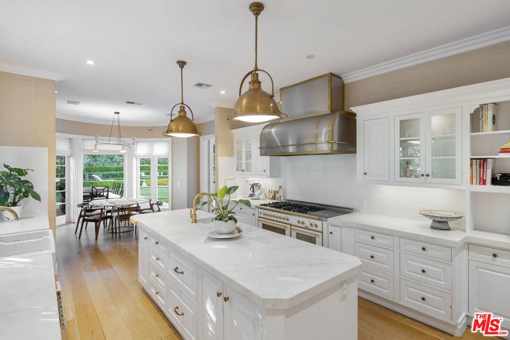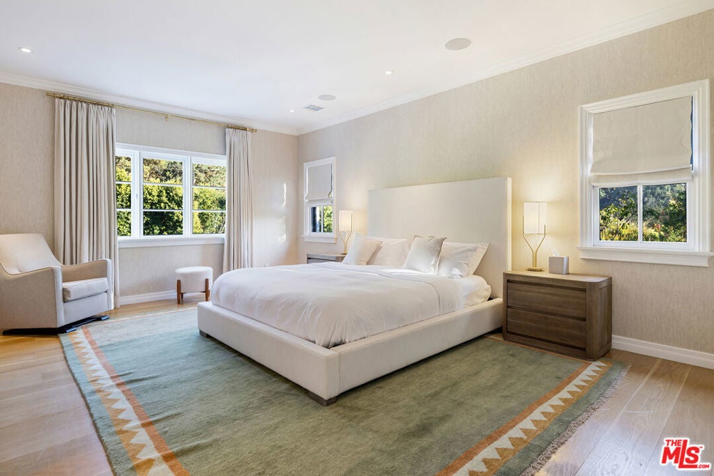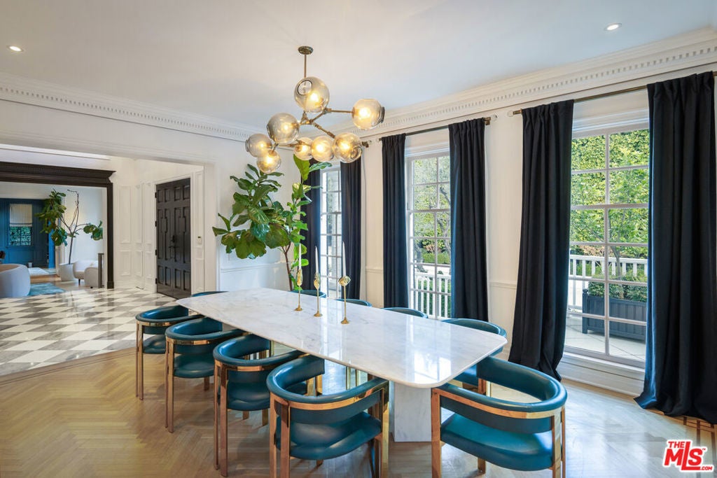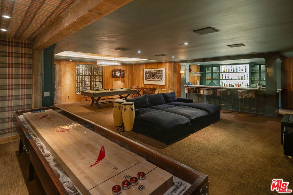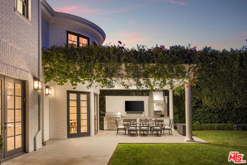 Tucked behind mature hedges and secure gates on prestigious Hazen Drive, this stately Georgian Revival estate offers the rare chance to lease one of Beverly Hills' most distinguished properties. Privacy is paramount here, with a gated driveway, expansive motor court, and a four-car garage. Inside, the home blends timeless architecture with fully updated, contemporary interiors. A double-height foyer welcomes you into light-filled living spaces designed for both grand entertaining and relaxed day-to-day living. French doors open from the formal living and family rooms to a lush backyard, creating an effortless indoor-outdoor flow. The chef's kitchen, complete with La Cornue range, butler's pantry, and breakfast area, connects directly to the outdoor dining patio for easy entertaining. Upstairs, the serene primary suite includes a sitting room with fireplace, private balcony, dual walk-in closets, and two spa-like bathrooms. Four additional en-suite bedrooms provide ample space for family or guests. A private library, screening room, fitness studio with sauna, and a spectacular lower-level lounge with billiards, bar, and wine gallery offer endless ways to relax and entertain at home. Outdoors, a flat lawn, sparkling pool and spa, outdoor kitchen, pizza oven, and fire pit lounge create a resort-like atmosphere. The manicured gardens, hillside vegetable patch, and multiple dining areas make it easy to embrace Beverly Hills' indoor outdoor lifestyle year-round. This exceptional residence is moments from world-class shopping, dining, and top-rated schools -- offering a rare opportunity to experience Beverly Hills living at its most refined.