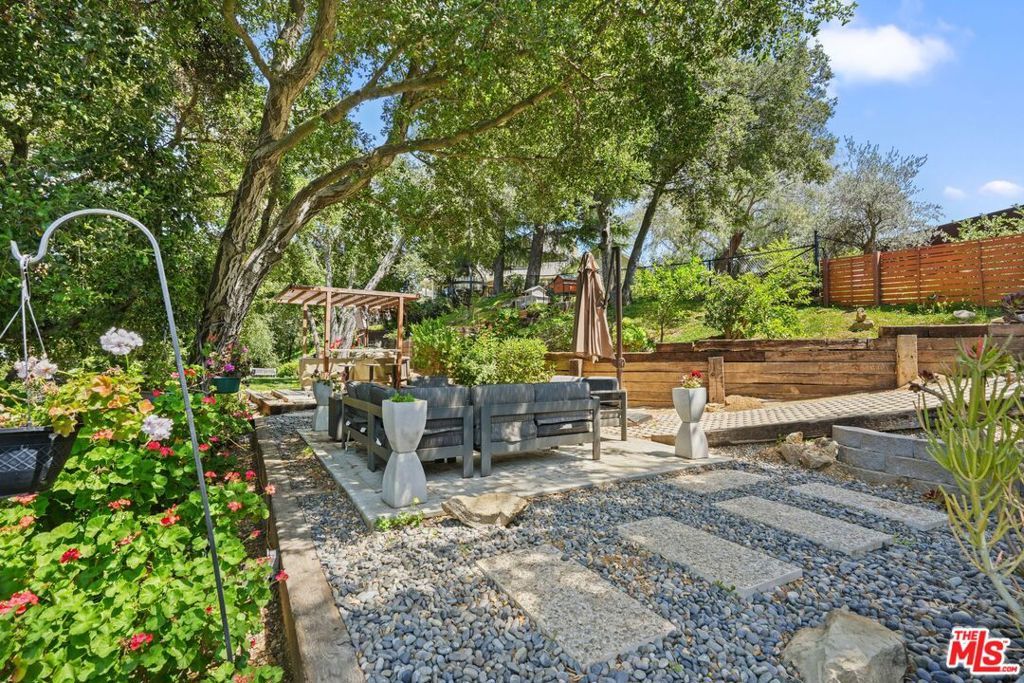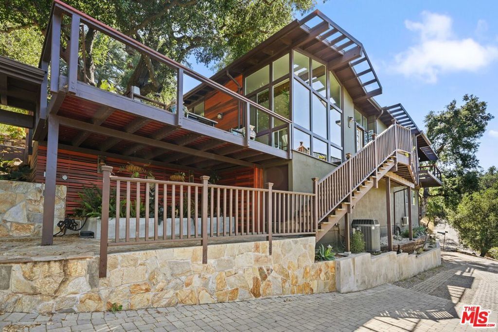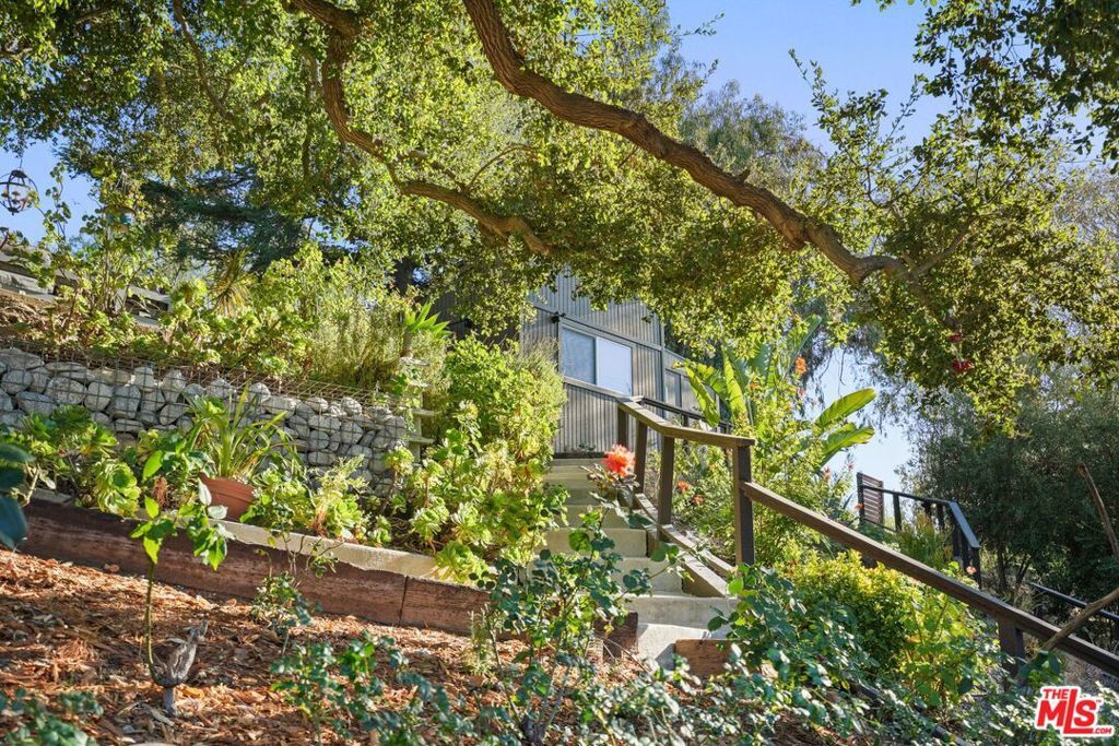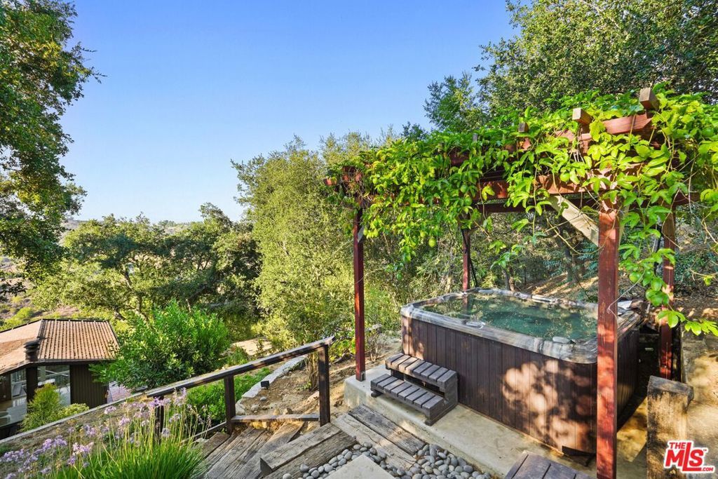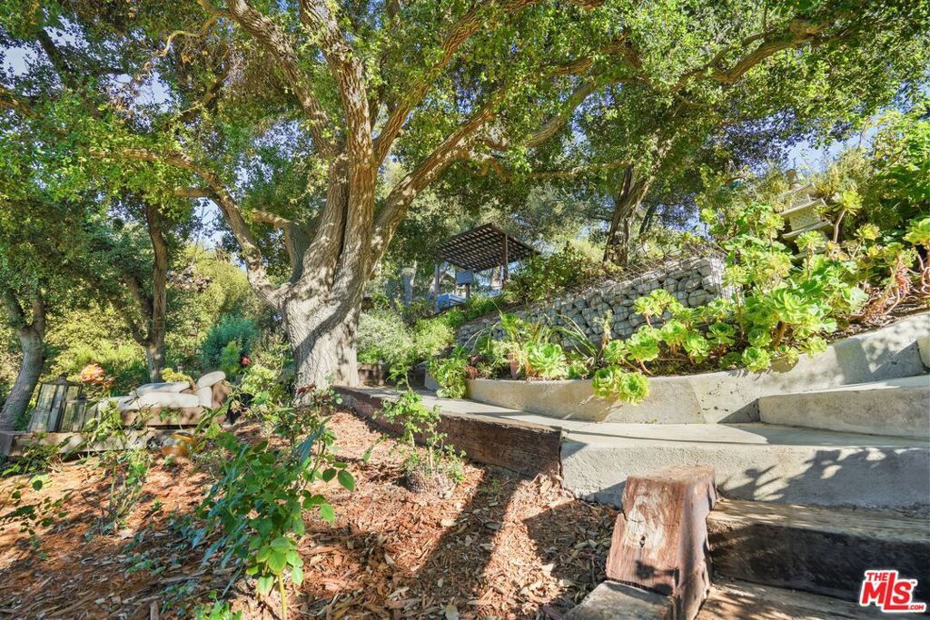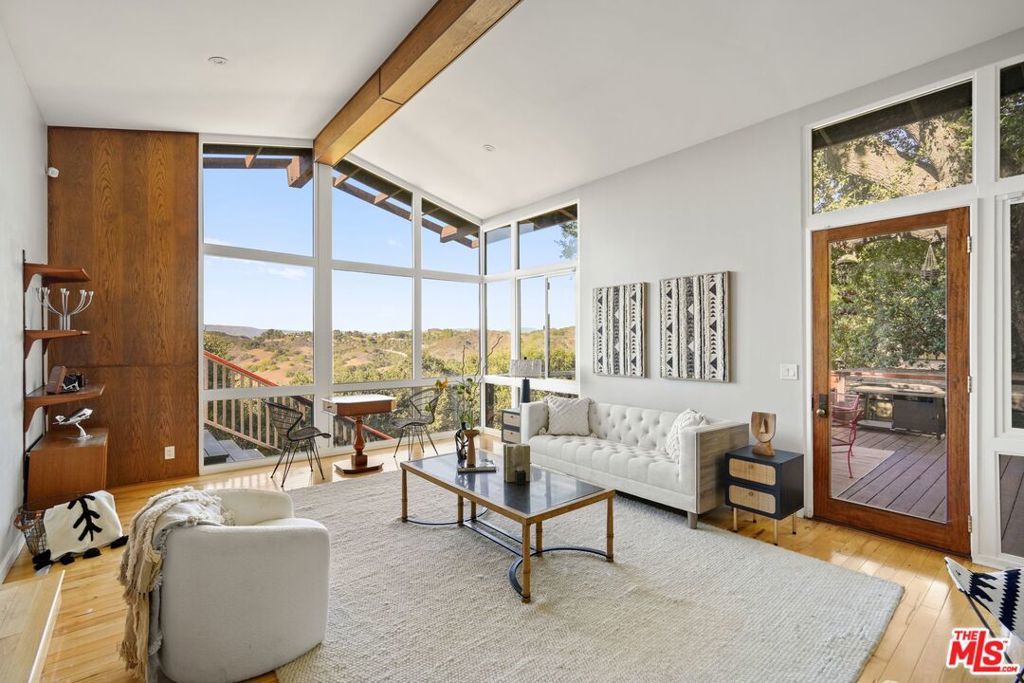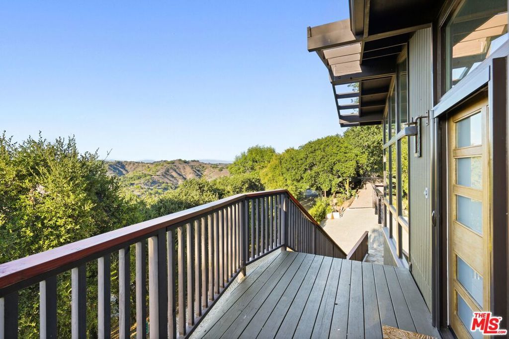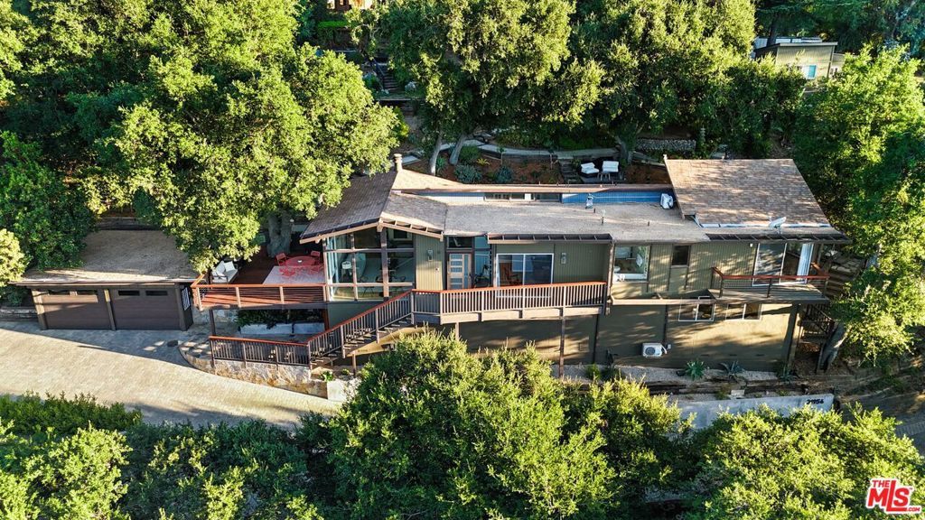 Mid-Century Sanctuary with Guest House, and Studio Apartment. Tucked away in the poetic hills of Topanga, where the scent of sagebrush mingles with coastal air and the canyon light shifts like watercolor, this mid-century retreat rises from the earth like sculpture. Built in the 80s by a Topanga Family of master builders, this home has the soul of a 1960s architectural, with towering walls of glass, but is built with modern building methods and amenities that live more fully in our present. Set across 6 lots totaling more than half an acre of pure California dreaming, this is not merely a home, but a dream made real. Framed in clean, modernist lines and softened by warm woods and welcoming landscaping, the main residence offers three bedrooms and two baths, with interiors that channel the understated elegance of a bygone era. Vaulted ceilings open skyward, while walls of glass dissolve the boundary between indoors and the wild beyond, inviting the Santa Monica Mountains in like an old friend. A sunken living room anchors the space with quiet drama, its hardwood floors catching golden light, while a fireplace hums softly against the cool hush of canyon evenings. The sleekly updated kitchen gleams with high end stainless appliances, huge windows, stone counters, and cabinetry that soars up to the 14 ft ceilings. The primary suite is a private escape, complete with a dreamy, custom, walnut, walk-in closet with a view, private viewing deck, and a spa-like bath where a glass-wrapped shower overlooks the green hills of the nearby state parka tableau, framed in stillness and sky. The living room flows onto a huge deck, set in the wide vistas. Steps lead to paths meandering through native landscaping and terraced gardens that create a sanctuary for the senses. A gorgeous, built in, Charbroil outdoor kitchen nestles under an arbor, perfect for grilling up a celebration! Dine beneath a canopy of oaks, sip wine beneath the stars around the gas fire pit, or soak in the hot tub while hawks wheel overhead. Here, every detail whispers of retreat and ritual. Two thoughtfully appointed guest units, a charming detached cabin at the top of the property, with loft, kitchenette, bath, and deck; and a second large studio apartment, with private entry, kitchen, and bath, offer room for reflection, creation, or connection. Set along a private drive just moments from the vibrancy of the center of Topanga, with its restaurants, galleries, yoga studios, and charming shops, in a quiet neighborhood surrounded by trails, this graceful home is close to Malibu, the Valley, and all that LA has to offer. This is a home for artists, dreamers, and seekers of beauty. A place where architecture meets wilderness in elegant accord, and where every sunrise feels like a new beginning. This is a Topanga Miracle, refined, rare, and waiting for you.