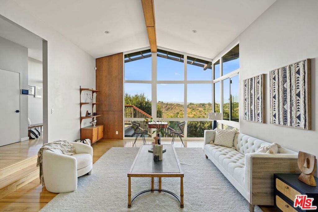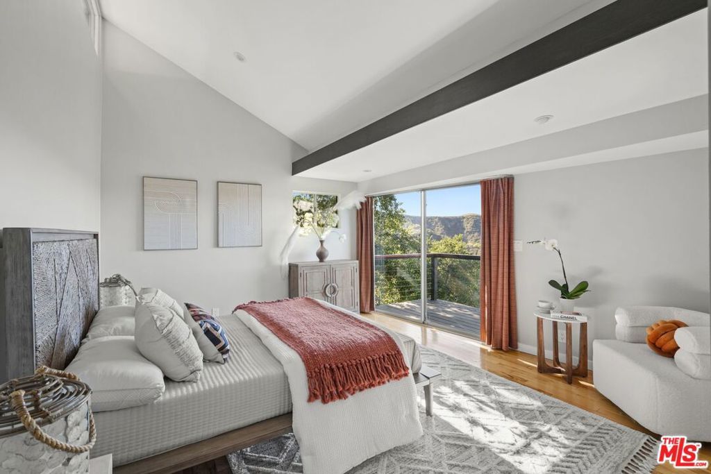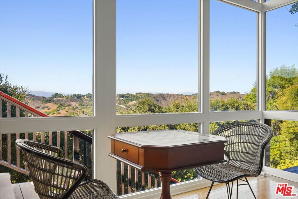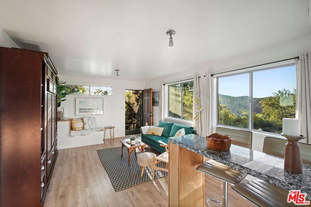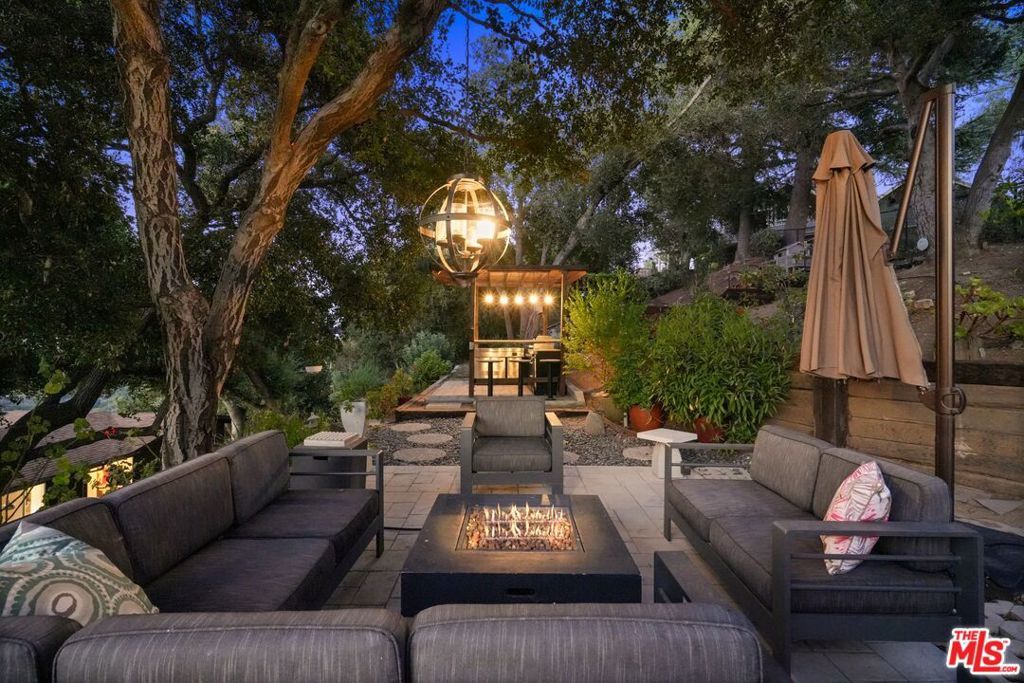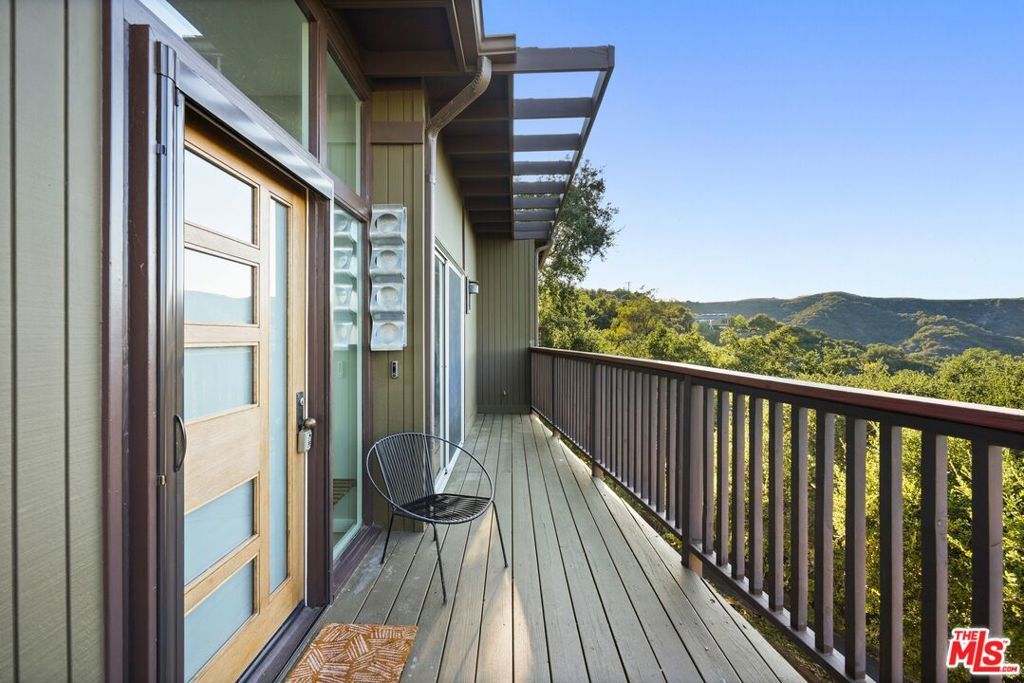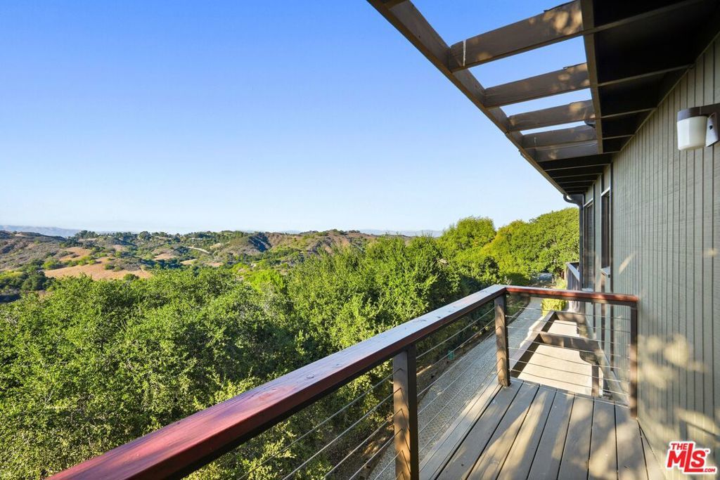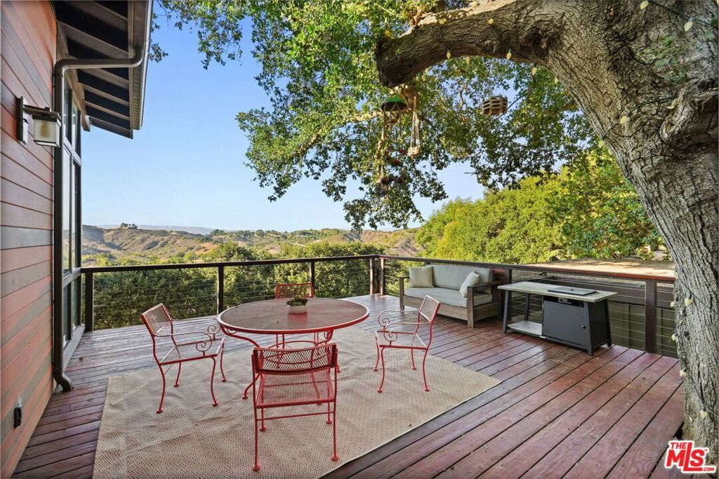 Mid-Century Sanctuary with Guest House, and Studio Apartment. Tucked away in the poetic hills of Topanga, where the scent of sagebrush mingles with coastal air and the canyon light shifts like watercolor, this mid-century retreat rises from the earth like sculpture. Built in the 80s by a Topanga Family of master builders, this home has the soul of a 1960s architectural, with towering walls of glass, but is built with modern building methods and amenities that live more fully in our present. Set across 6 lots totaling more than half an acre of pure California dreaming, this is not merely a home, but a dream made real. Framed in clean, modernist lines and softened by warm woods and welcoming landscaping, the main residence offers three bedrooms and two baths, with interiors that channel the understated elegance of a bygone era. Vaulted ceilings open skyward, while walls of glass dissolve the boundary between indoors and the wild beyond, inviting the Santa Monica Mountains in like an old friend. A sunken living room anchors the space with quiet drama, its hardwood floors catching golden light, while a fireplace hums softly against the cool hush of canyon evenings. The sleekly updated kitchen gleams with high end stainless appliances, huge windows, stone counters, and cabinetry that soars up to the 14 ft ceilings. The primary suite is a private escape, complete with a dreamy, custom, walnut, walk-in closet with a view, private viewing deck, and a spa-like bath where a glass-wrapped shower overlooks the green hills of the nearby state parka tableau, framed in stillness and sky. The living room flows onto a huge deck, set in the wide vistas. Steps lead to paths meandering through native landscaping and terraced gardens that create a sanctuary for the senses. A gorgeous, built in, Charbroil outdoor kitchen nestles under an arbor, perfect for grilling up a celebration! Dine beneath a canopy of oaks, sip wine beneath the stars around the gas fire pit, or soak in the hot tub while hawks wheel overhead. Here, every detail whispers of retreat and ritual. Two thoughtfully appointed guest units, a charming detached cabin at the top of the property, with loft, kitchenette, bath, and deck; and a second large studio apartment, with private entry, kitchen, and bath, offer room for reflection, creation, or connection. Set along a private drive just moments from the vibrancy of the center of Topanga, with its restaurants, galleries, yoga studios, and charming shops, in a quiet neighborhood surrounded by trails, this graceful home is close to Malibu, the Valley, and all that LA has to offer. This is a home for artists, dreamers, and seekers of beauty. A place where architecture meets wilderness in elegant accord, and where every sunrise feels like a new beginning. This is a Topanga Miracle, refined, rare, and waiting for you.