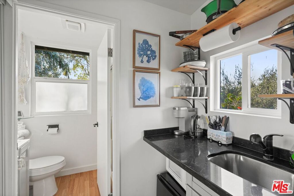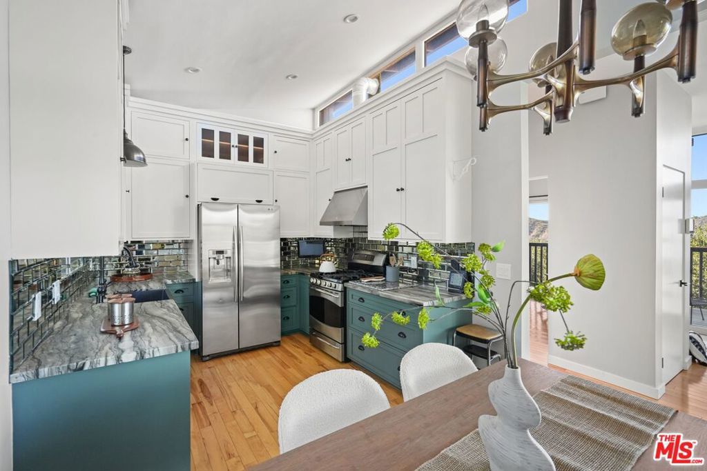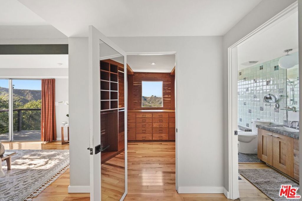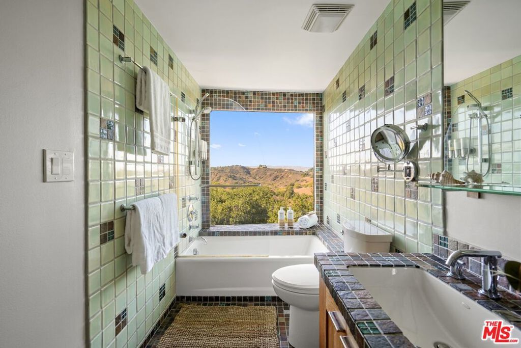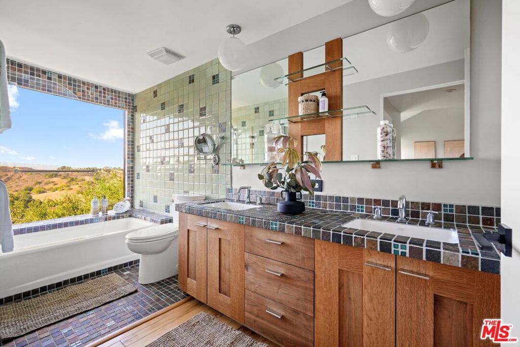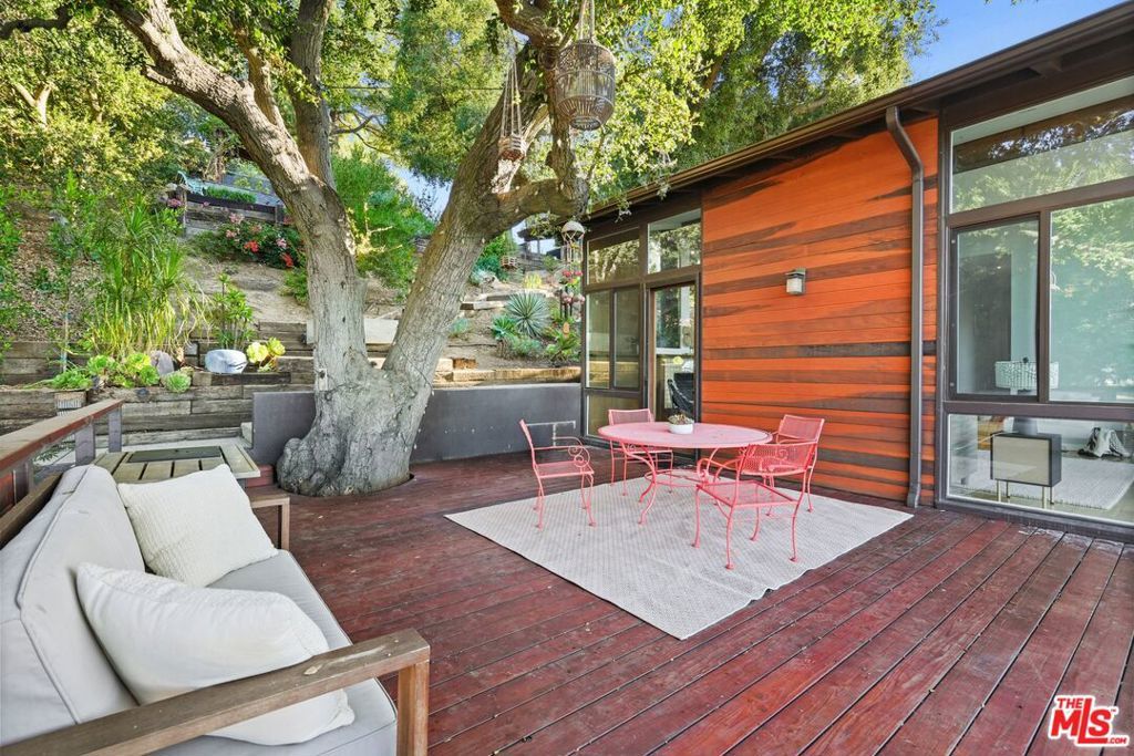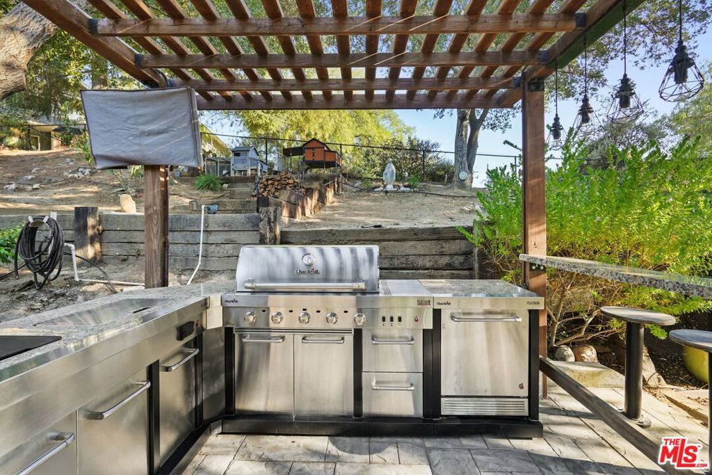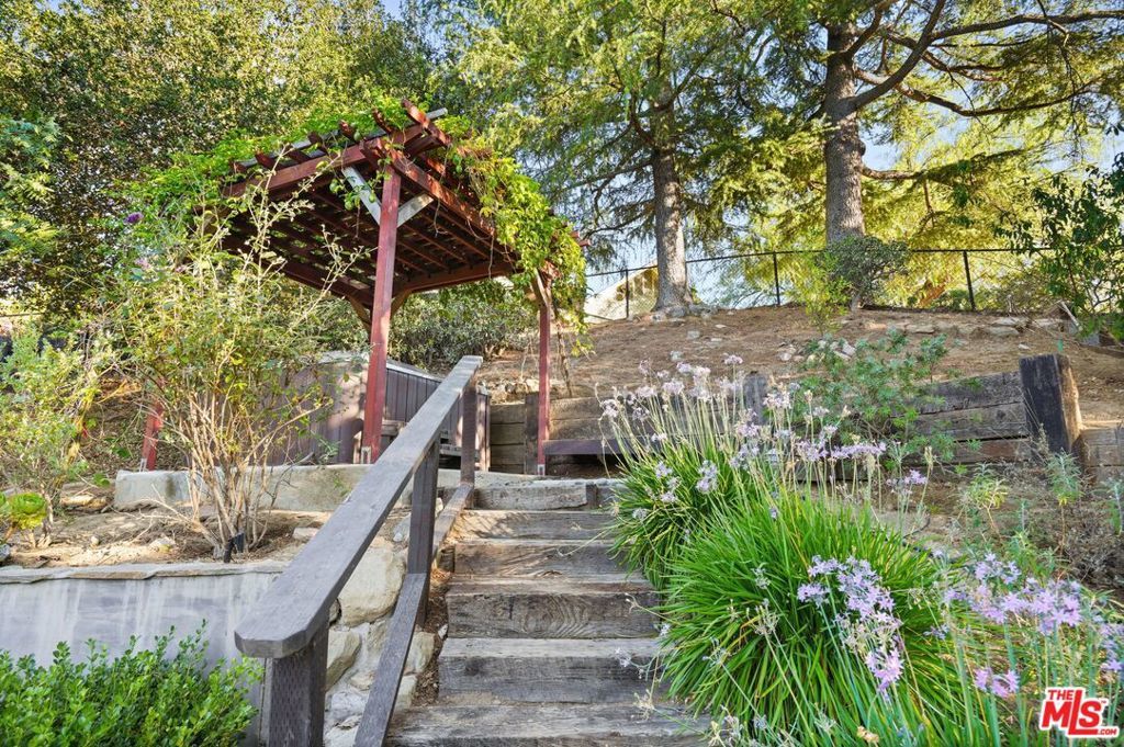 Mid-Century Sanctuary with Guest House, and Studio Apartment. Tucked away in the poetic hills of Topanga, where the scent of sagebrush mingles with coastal air and the canyon light shifts like watercolor, this mid-century retreat rises from the earth like sculpture. Built in the 80s by a Topanga Family of master builders, this home has the soul of a 1960s architectural, with towering walls of glass, but is built with modern building methods and amenities that live more fully in our present. Set across 6 lots totaling more than half an acre of pure California dreaming, this is not merely a home, but a dream made real. Framed in clean, modernist lines and softened by warm woods and welcoming landscaping, the main residence offers three bedrooms and two baths, with interiors that channel the understated elegance of a bygone era. Vaulted ceilings open skyward, while walls of glass dissolve the boundary between indoors and the wild beyond, inviting the Santa Monica Mountains in like an old friend. A sunken living room anchors the space with quiet drama, its hardwood floors catching golden light, while a fireplace hums softly against the cool hush of canyon evenings. The sleekly updated kitchen gleams with high end stainless appliances, huge windows, stone counters, and cabinetry that soars up to the 14 ft ceilings. The primary suite is a private escape, complete with a dreamy, custom, walnut, walk-in closet with a view, private viewing deck, and a spa-like bath where a glass-wrapped shower overlooks the green hills of the nearby state parka tableau, framed in stillness and sky. The living room flows onto a huge deck, set in the wide vistas. Steps lead to paths meandering through native landscaping and terraced gardens that create a sanctuary for the senses. A gorgeous, built in, Charbroil outdoor kitchen nestles under an arbor, perfect for grilling up a celebration! Dine beneath a canopy of oaks, sip wine beneath the stars around the gas fire pit, or soak in the hot tub while hawks wheel overhead. Here, every detail whispers of retreat and ritual. Two thoughtfully appointed guest units, a charming detached cabin at the top of the property, with loft, kitchenette, bath, and deck; and a second large studio apartment, with private entry, kitchen, and bath, offer room for reflection, creation, or connection. Set along a private drive just moments from the vibrancy of the center of Topanga, with its restaurants, galleries, yoga studios, and charming shops, in a quiet neighborhood surrounded by trails, this graceful home is close to Malibu, the Valley, and all that LA has to offer. This is a home for artists, dreamers, and seekers of beauty. A place where architecture meets wilderness in elegant accord, and where every sunrise feels like a new beginning. This is a Topanga Miracle, refined, rare, and waiting for you.