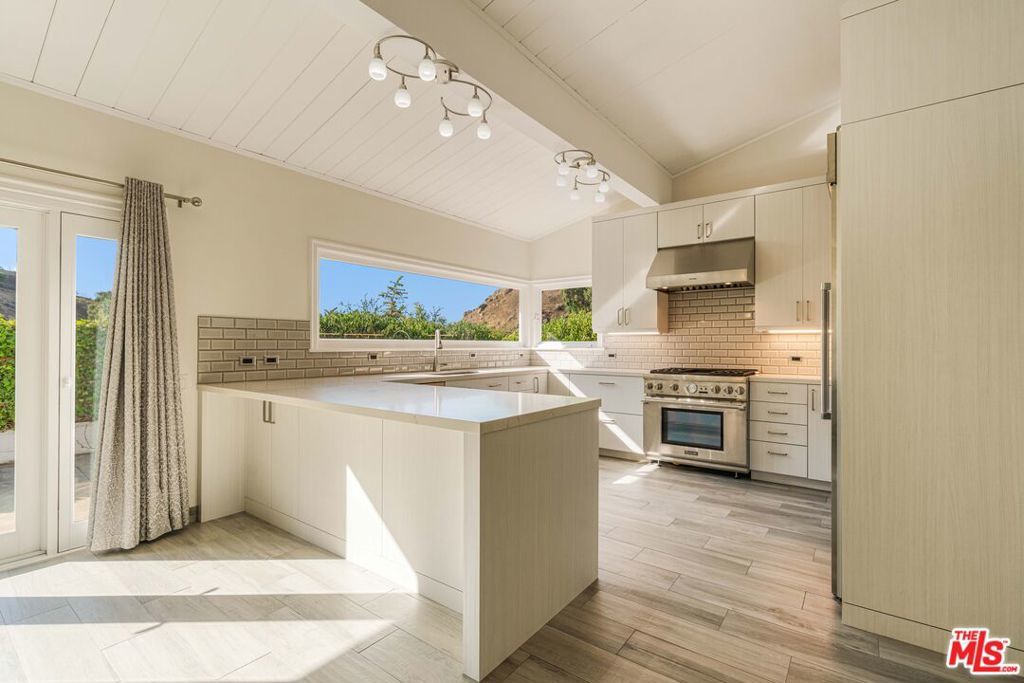 Perched on a large 10,567 sq ft lot atop a peaceful knoll, this light and bright single-story home offers privacy, charm, and peace of mind with no surrounding homes impacted by recent fires and full post-fire remediation completed. Inside, a spacious entry with atrium and fountain opens to a living and dining room with vaulted ceilings, sunlit windows, and a cozy fireplace. The fully remodeled gourmet kitchen, featuring granite countertops, a breakfast bar, and an adjacent family room with a fireplace, makes for an ideal gathering space that flows seamlessly to the outdoors through numerous French doors. Freshly painted throughout, the home features three bedrooms, a bonus room, and two and a half baths, including a primary suite with a walk-in closet, en-suite bath, and direct patio access. Outdoors, newly landscaped gardens with walking paths, sitting areas, and peek-a-boo ocean views complement the expansive lawn. With excellent curb appeal, natural light, and direct access from the attached two-car garage, this move-in-ready property is truly a gem.
