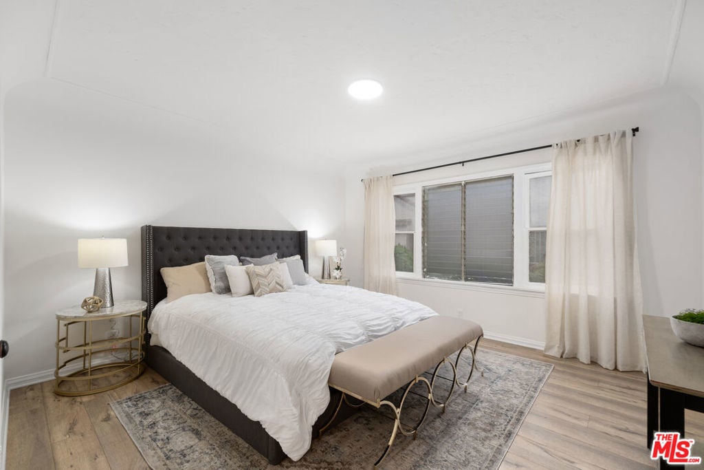 This charming Spanish style house offers three bedrooms and two bathrooms in a desirable location. Inter block public park great for kids to play. Short distance to Horace Mann elementary school, shops and restaurants. The home features lush landscaping, charming architecture and a good size lot. The layout is designed to be spacious, with abundant natural lighting throughout. Living room with cozy fireplace and high ceiling leads to dining room with French windows. Creates a warm and inviting atmosphere. Laminated wood flooring adds a touch of elegance. The primary bedroom provides a peaceful retreat, with a spacious layout and ample natural lighting. The two additional bedrooms offer comfortable accommodations. The home landscaping and ample outdoor space allow for enjoyment of the natural environment. Detached two car garage with long car port driveway. Plenty of storage space. Easy to show.