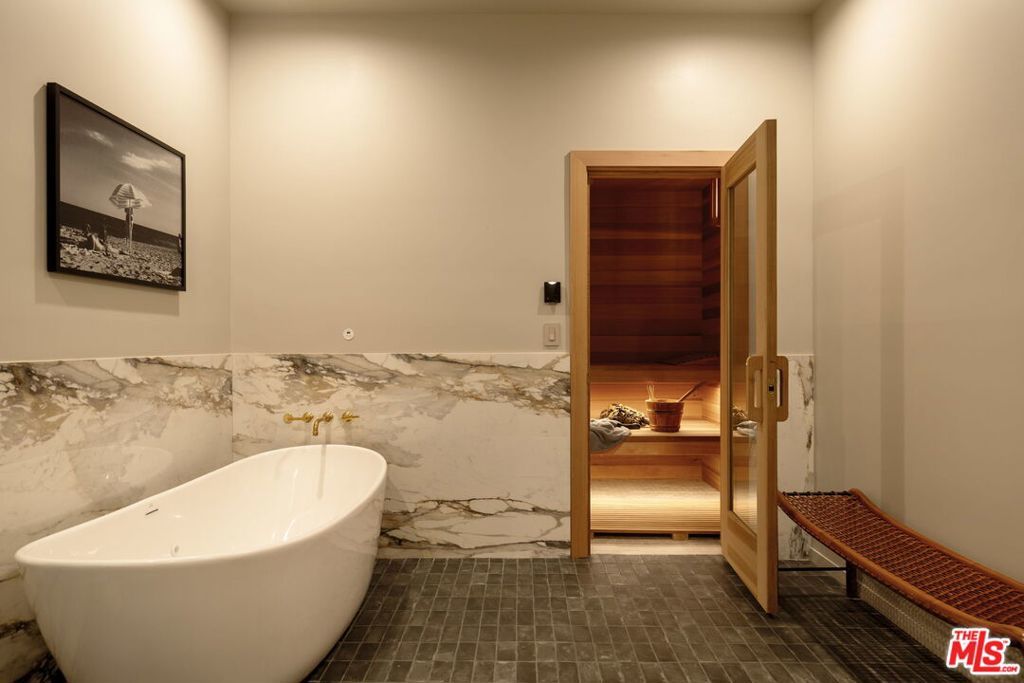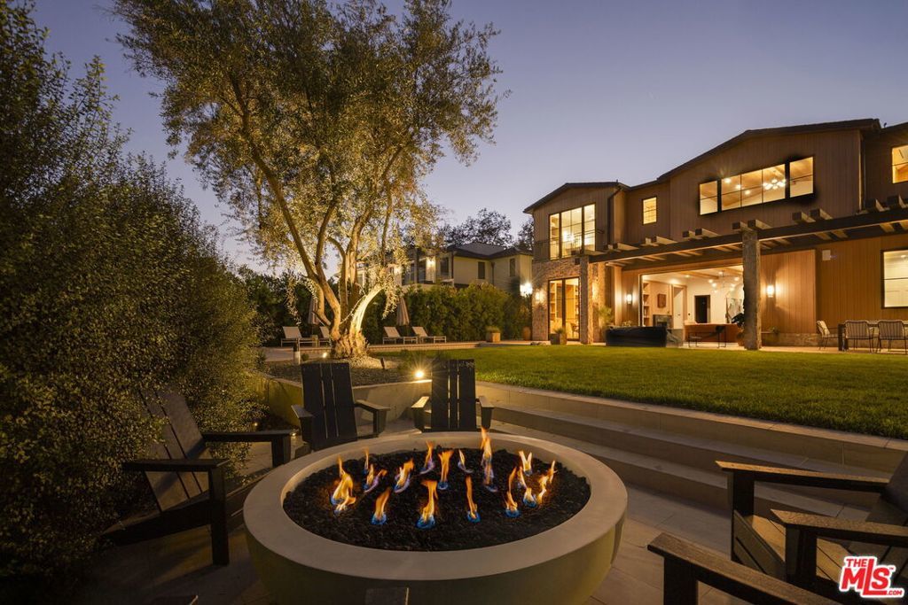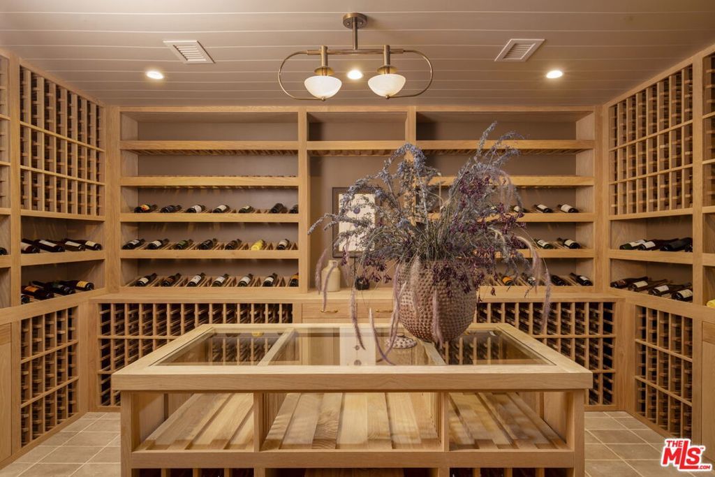 Mediterranean charm meets refined European elegance in this brand-new construction, 6-bedroom plus office, 9-bath, 10,100 sq ft residence set on a 14,143 sq ft corner lot. Heritage olive trees, vintage ceramic pots, and lush Mediterranean-inspired gardens frame a tumbled natural stone facade accented with fire-rated Acre siding that blends durability with timeless appeal. Step inside to discover interiors that celebrate artisanal craftsmanship and understated luxury. Solid white oak floors flow seamlessly throughout, complemented by intricate custom wood moldings and millwork that bring depth and warmth to every room. A curated selection of handpicked designer finishes lends effortless sophistication. The chef's kitchen features custom marble countertops sourced and designed with inspiration from classic French ateliers, paired with European checkered flooring that continues into the hidden butler's pantry. Formal living and dining rooms, a family room, and multiple entertaining spaces connect effortlessly to the resort-style backyard. Outdoors, a shimmering pool and spa with checkered stone waterline tiles set the tone for a luxurious living experience. An outdoor kitchen featuring an Alfresco pizza oven, a sculptural fire pit, and multiple terraces with panoramic canyon views extends the living space beyond the interior. The primary suite offers a tranquil escape beneath vaulted white oak ceilings, complete with dual walk-in closets, a private morning bar, and a spa-like bath featuring Waterworks fixtures and a Hydro Systems soaking tub . Additional amenities include a moody speakeasy bar, a 1,657-bottle refrigerated wine room, a state-of-the-art theater, and a wellness wing with a gym, cold plunge, sauna, steam room, and private massage room.