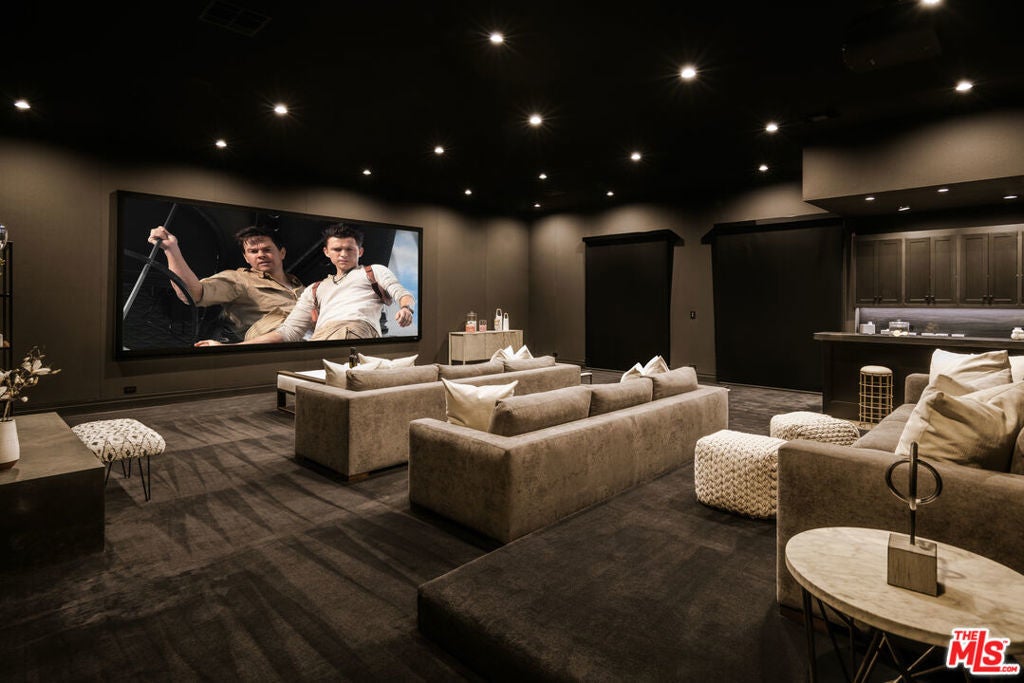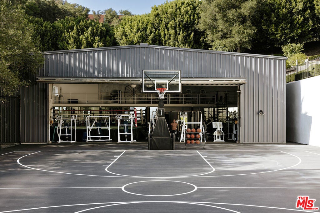Welcome to 9694 Oak Pass Road, riddled with celebrity history, step inside this extraordinary private compound in the exclusive gated enclave of Oak Pass in Beverly Hills. Set on 1.7 acres with dual entrances, this estate offers both privacy and unmatched proximity to Rodeo Drive and the Beverly Hills Hotel. The property showcases a grand main residence, a two-story guest two bedroom guest house with kitchen, a striking two-level gym structure with a full-size boxing ring and aircraft hangar doors that flow seamlessly to a full basketball/sports court. Outdoor living is elevated with a resort-style grotto pool, cascading waterfalls, a waterslide, wood-burning pizza oven, putting greens, citrus orchards, and expansive entertaining areas. The main residence features soaring ceilings, white oak floors, and refined living and dining spaces opening to an oversized deck with sweeping lush green canyon views. The gourmet kitchen features a breakfast area and eat-in area with temp. controlled wine cellar and access to deck. The expansive primary suite on the main level features a retractable tv, two en-suites with full luxury amenities and two walk-in closets with dressing area. A 136" home theater with wet bar and fireplace opens to an outdoor screening terrace. Additional suites and a spacious lower level family room with bar occupy the lower level, creating a seamless indoor-outdoor floor plan. Complete with a salon, staff facilities, and meticulously landscaped grounds, 9694 Oak Pass Road embodies complete privacy, timeless elegance, and a rare opportunity to own one of Beverly Hills' most coveted compounds.