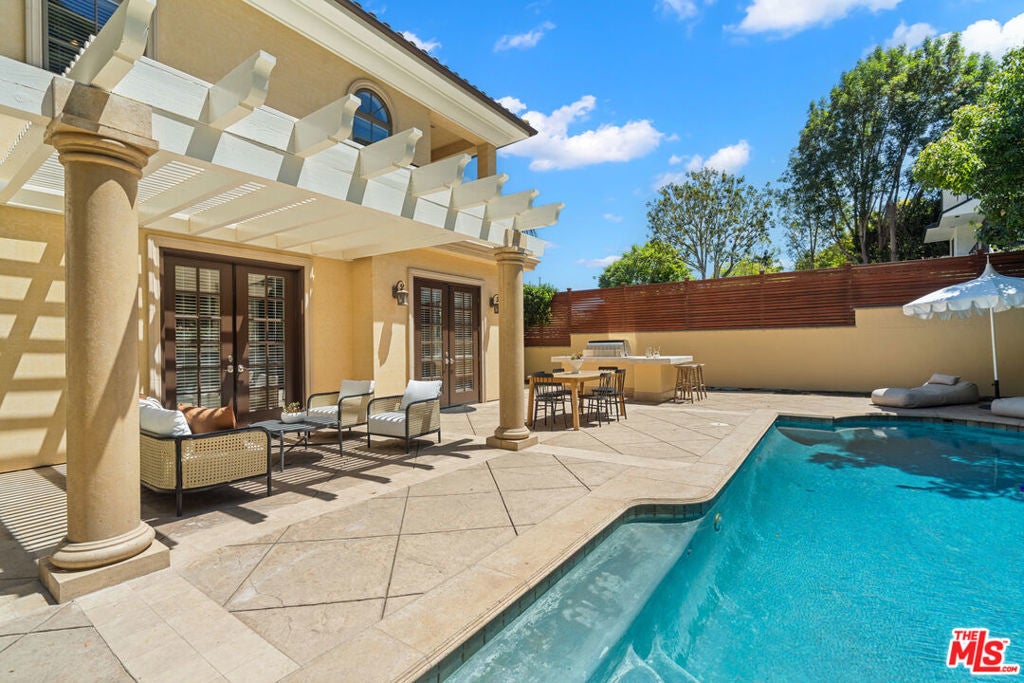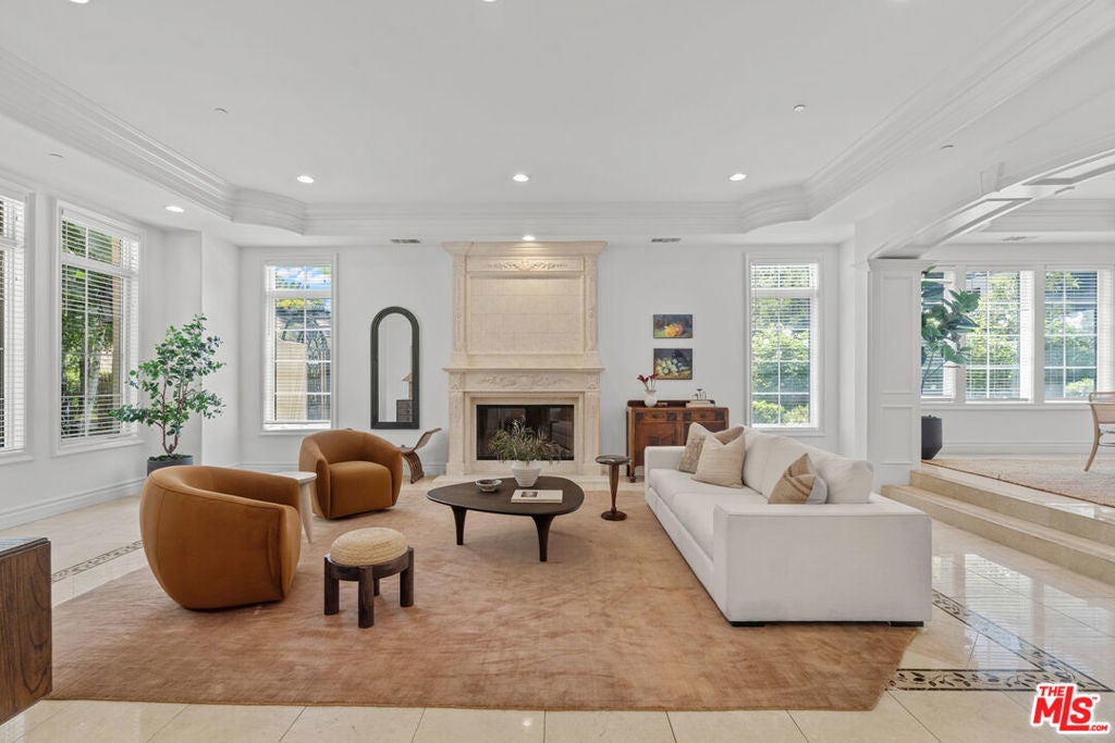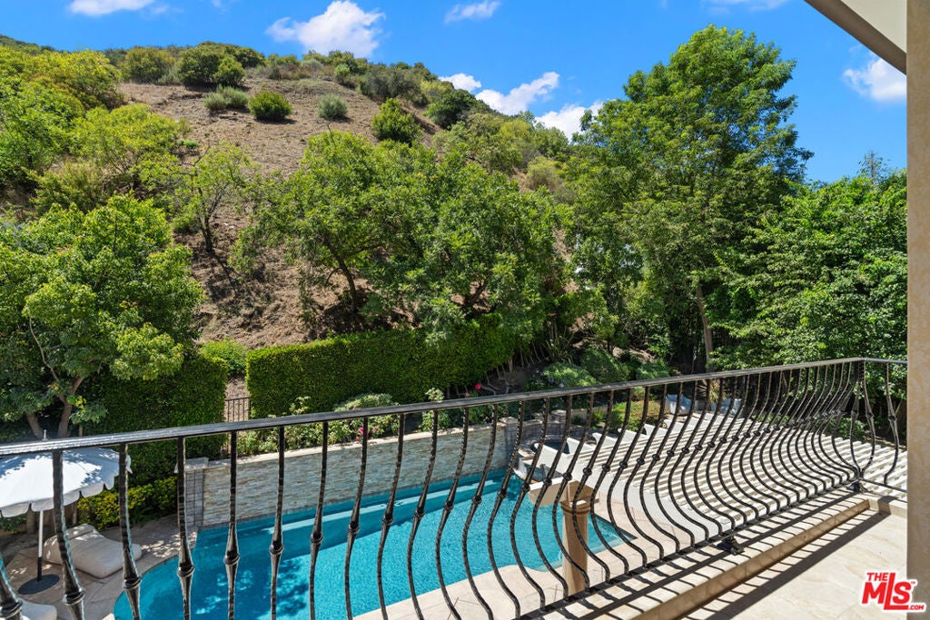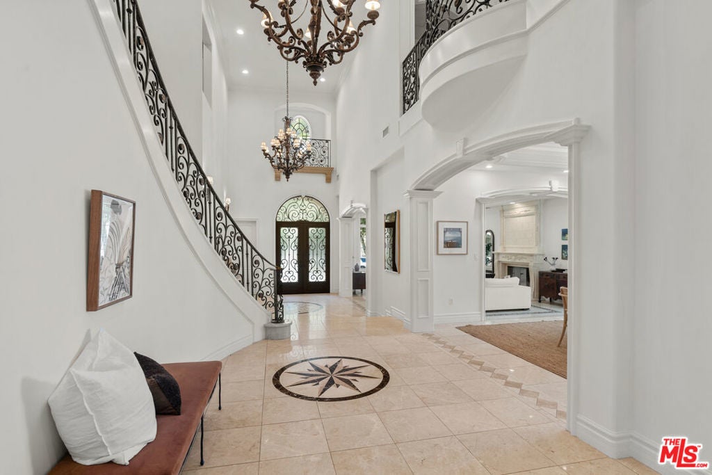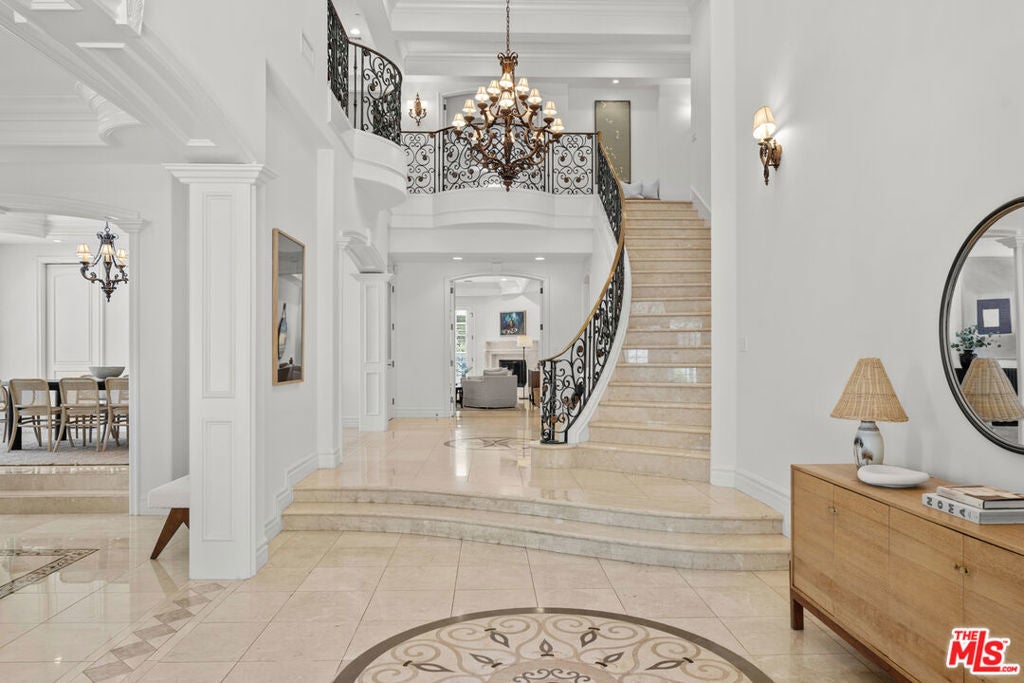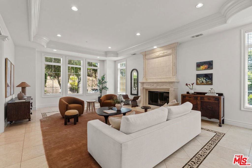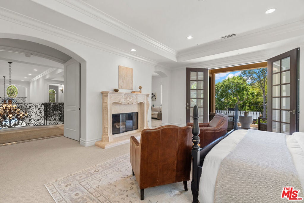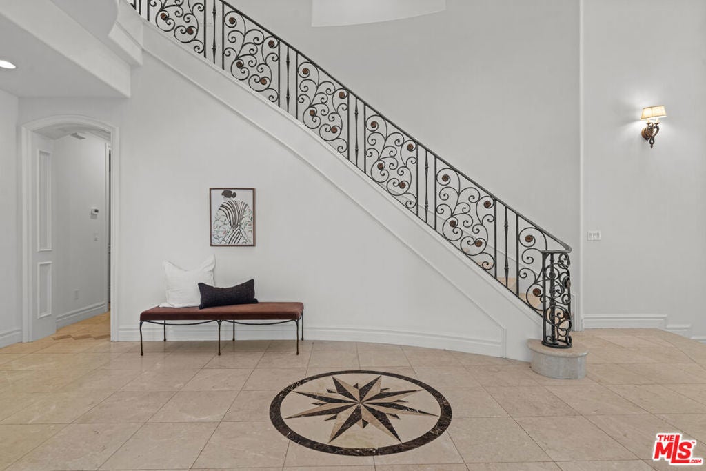 New Price! Tuscan-inspired architecture defines this exceptional 2007-built private estate perched on top of a quiet cul-de-sac in premier upper Brentwood neighborhood North of Sunset. Over 6,200 sq. ft. of living space on over 11,000 sq ft lot with pool & spa make this 6-bedroom, 6.5-bath residence the epitome of California luxury living. The 2 story floorplan features a layout designed with functionality, comfort, & modern living needs. Welcome guests into a grand entry with soaring ceilings, marble floors, tall curved staircase, formal living room with ornate fireplace, bright dining room, wine cellar, family room with fireplace, & 2 spacious ground floor bedrooms. The chef's center island kitchen boasts Sub-Zero double door refrigerator, Miele appliances, butler's pantry, & breakfast nook opening to the family room with French doors & direct access to the pool & patio. The upper landing of the grand foyer leads to separate wings featuring four en-suite bedrooms plus a versatile media/game /study room. The primary suite is a deluxe retreat with a sitting room, fireplace, balcony, spa bath with steam shower, dual water closets, & a stunning custom oversized walk-in closet. Highlights include 4-car garage, outdoor BBQ & fire pit, laundry room, coffered ceilings, custom crown moldings, elegant wrought-iron railings, multiple balconies, arched doors with decorative glass panels, circular inlaid stone medallion in the stone tile polished floor. Timeless in style & sophistication, this beautiful property feels private, warm, the spaces filled with light, openness, and quality craftsmanship.
