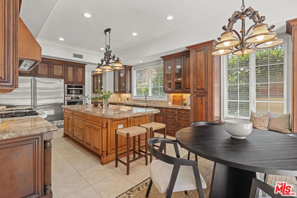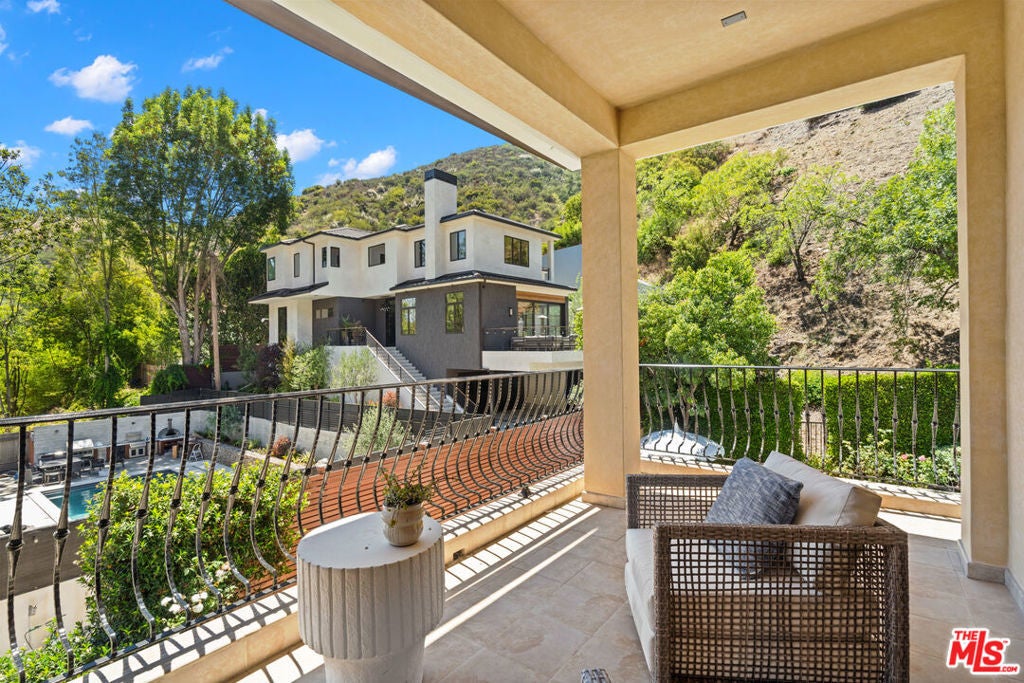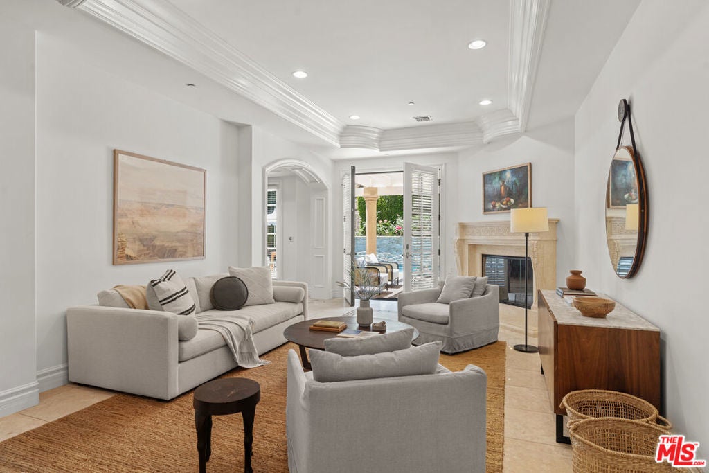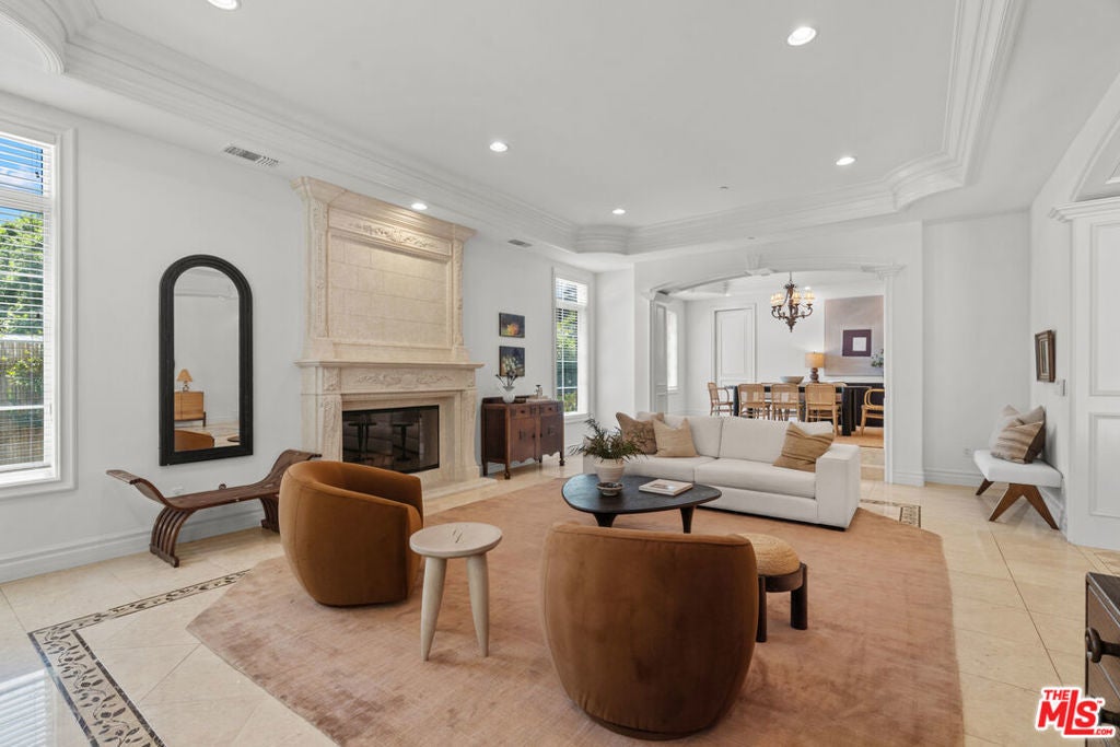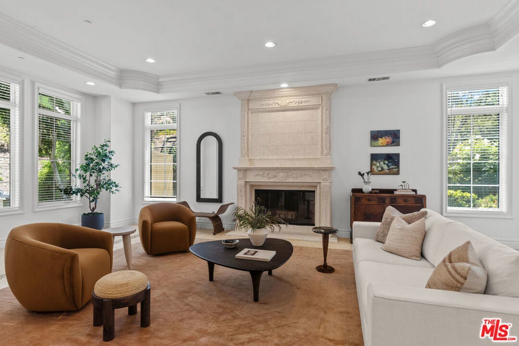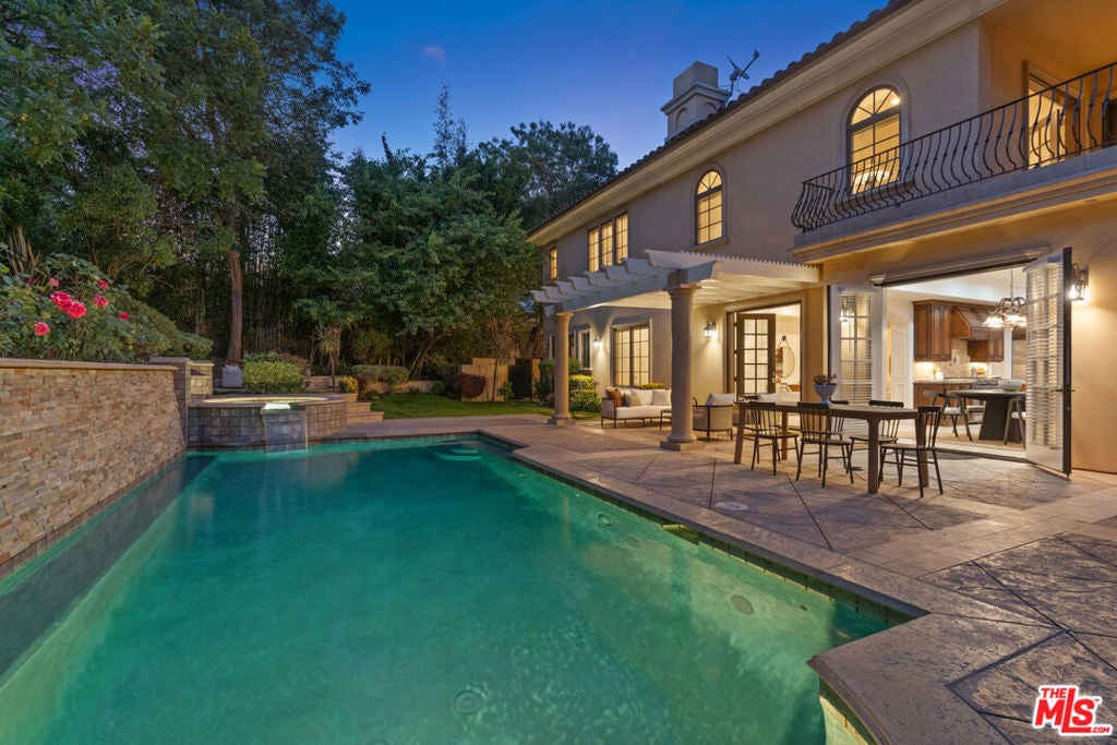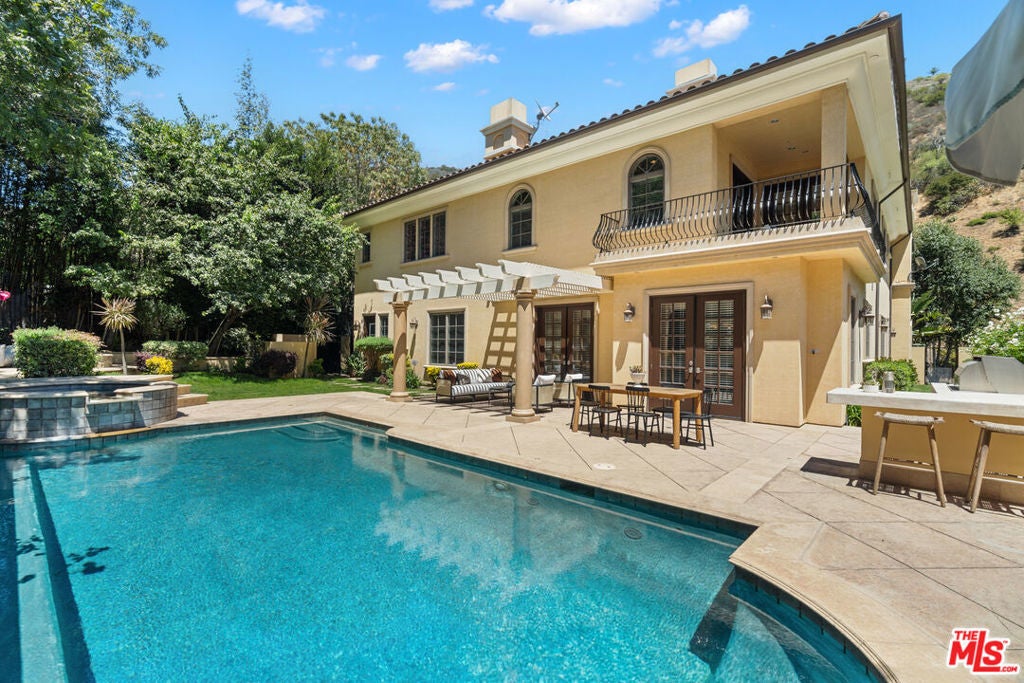 New Price! Tuscan-inspired architecture defines this exceptional 2007-built private estate perched on top of a quiet cul-de-sac in premier upper Brentwood neighborhood North of Sunset. Over 6,200 sq. ft. of living space on over 11,000 sq ft lot with pool & spa make this 6-bedroom, 6.5-bath residence the epitome of California luxury living. The 2 story floorplan features a layout designed with functionality, comfort, & modern living needs. Welcome guests into a grand entry with soaring ceilings, marble floors, tall curved staircase, formal living room with ornate fireplace, bright dining room, wine cellar, family room with fireplace, & 2 spacious ground floor bedrooms. The chef's center island kitchen boasts Sub-Zero double door refrigerator, Miele appliances, butler's pantry, & breakfast nook opening to the family room with French doors & direct access to the pool & patio. The upper landing of the grand foyer leads to separate wings featuring four en-suite bedrooms plus a versatile media/game /study room. The primary suite is a deluxe retreat with a sitting room, fireplace, balcony, spa bath with steam shower, dual water closets, & a stunning custom oversized walk-in closet. Highlights include 4-car garage, outdoor BBQ & fire pit, laundry room, coffered ceilings, custom crown moldings, elegant wrought-iron railings, multiple balconies, arched doors with decorative glass panels, circular inlaid stone medallion in the stone tile polished floor. Timeless in style & sophistication, this beautiful property feels private, warm, the spaces filled with light, openness, and quality craftsmanship.