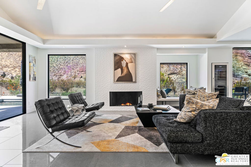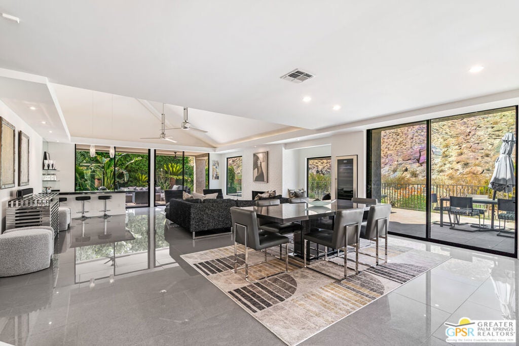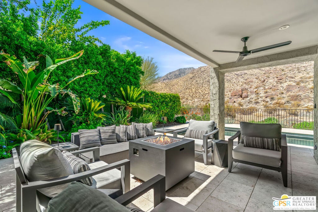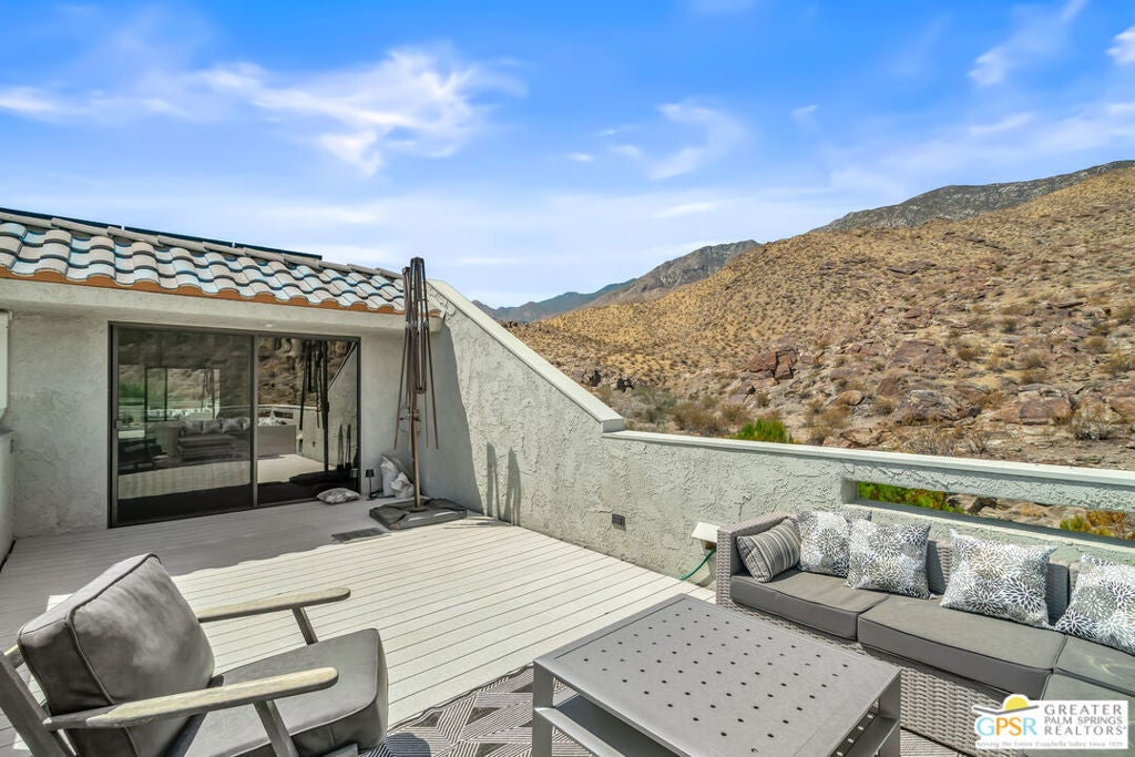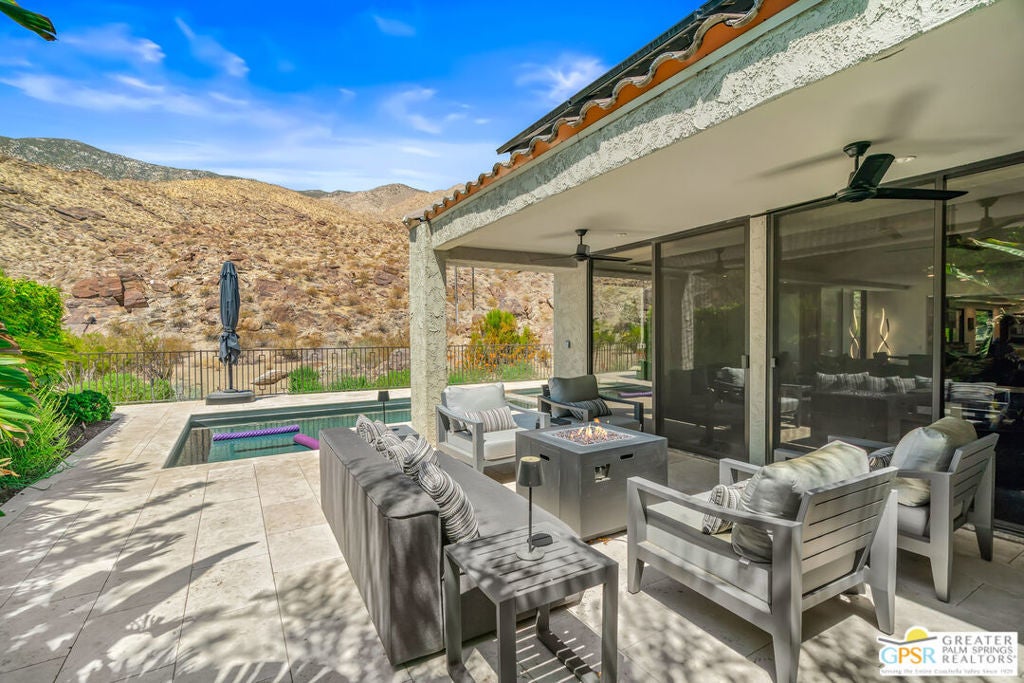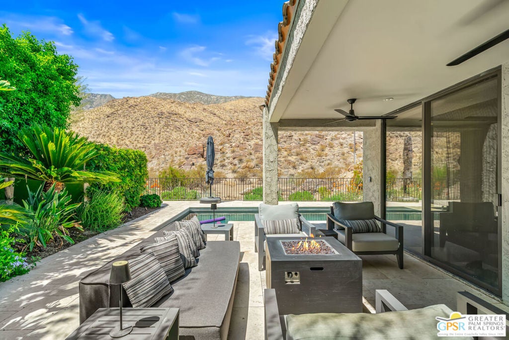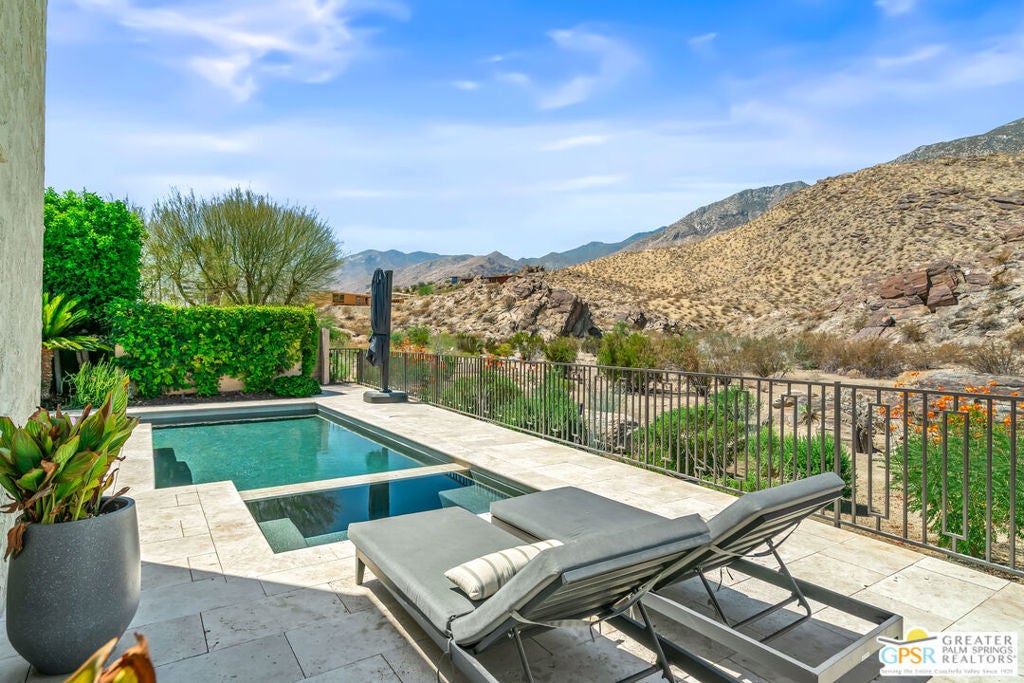 Spectacular forever mountainside views abound from this stunning Architectural Digest quality renovation. Offering 4 bedrooms and 4 baths, this thoughtfully appointed home proudly stands out as the jewel of Vista Canyon, a superb community of 29 homes on FEE (you own) land. From the soaring ceilings and floor to ceiling sliders to the outstanding chef's kitchen, this home far exceeds any competing new construction that offers limited square footage, builder finishes and expensive lease land fees. Two Primary suites, one on each level, both offering phenomenal vistas. The upscale kitchen is a cooking enthusiast's dream with high end appliances and adjoins a wonderful family room. Large entertaining spaces include a wonderful sunken bar and room for a table of 10. The double doored, gallery style entry offers an amazing space to showcase an art collection. Other outstanding features include a new pool with gorgeous decking and new heater and pool "cooler". Low HOA dues of 665.00 per month include front landscape maintenance, security gates, 2 pools and 2 spas, tennis court and romantic brick paved streets, lush landscaping and a community of excellent and caring neighbors. Truly a rare opportunity not to be missed.