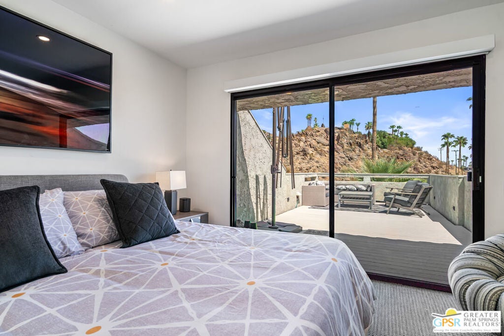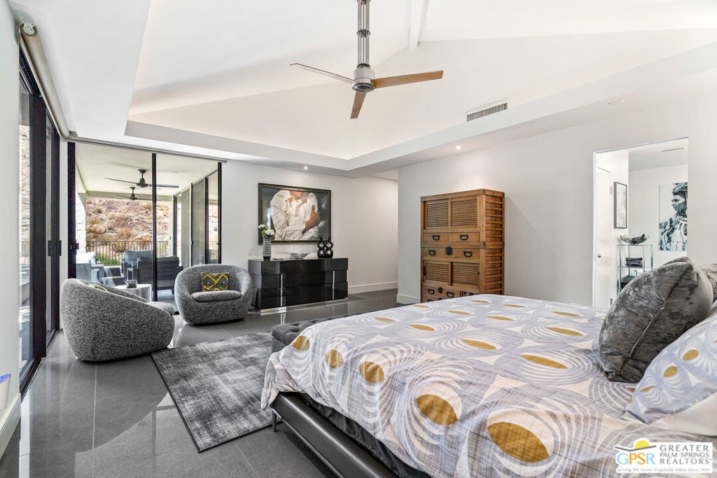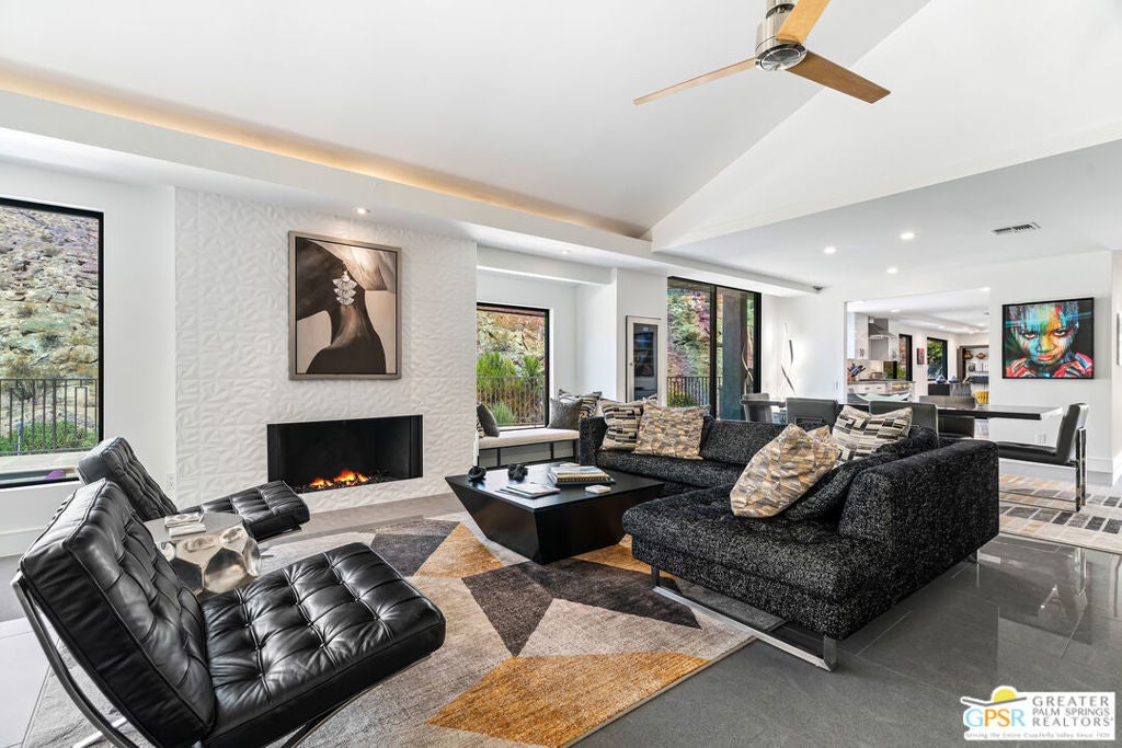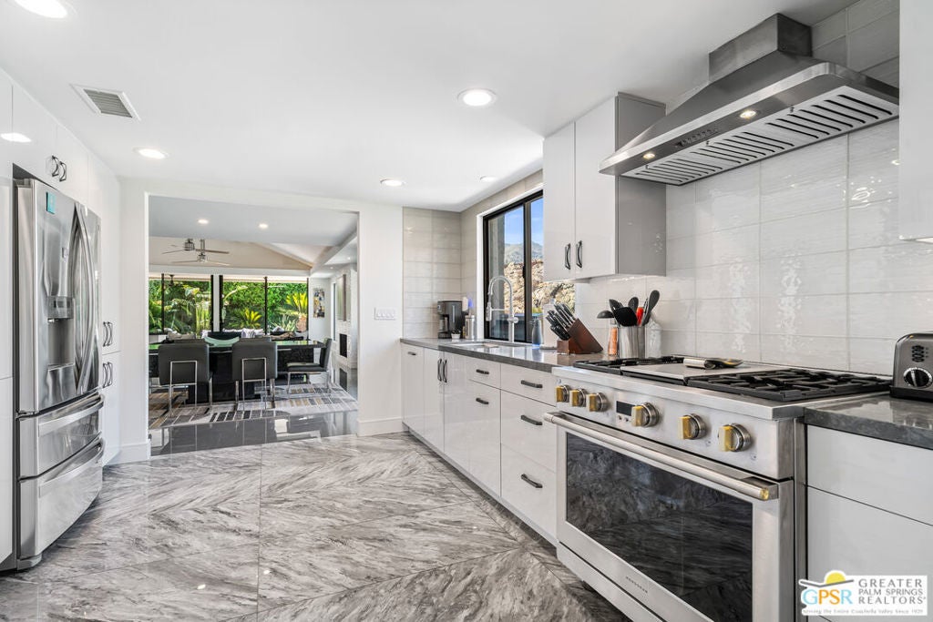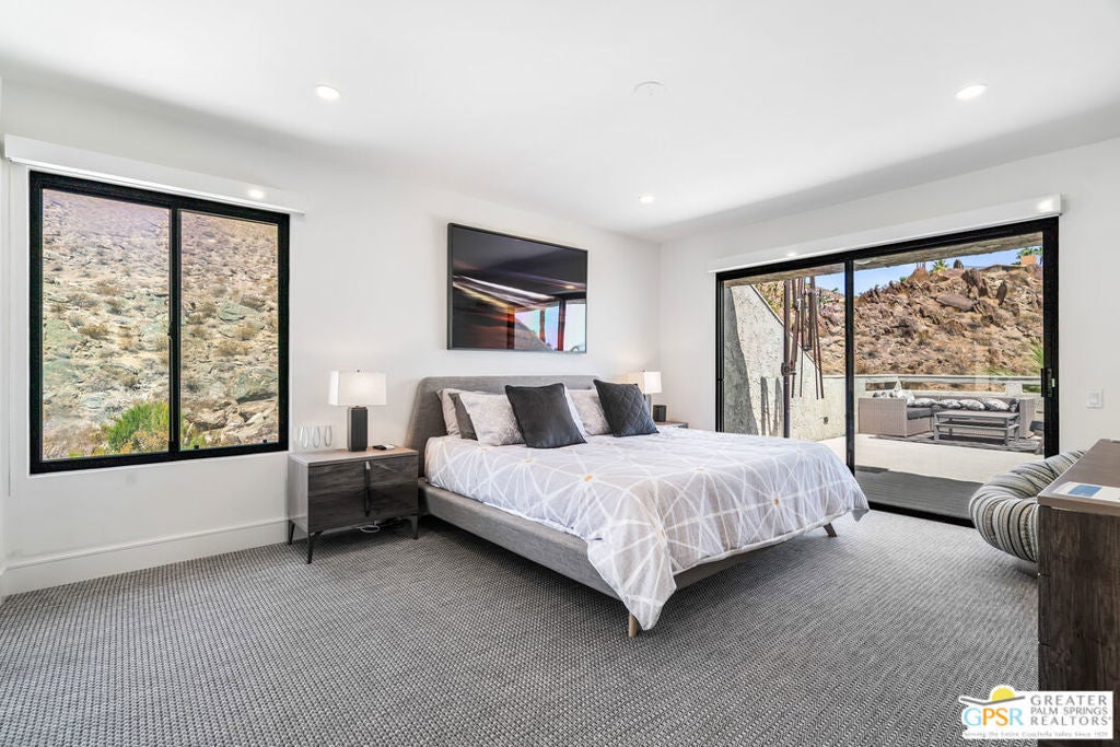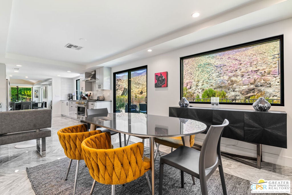 Spectacular forever mountainside views abound from this stunning Architectural Digest quality renovation. Offering 4 bedrooms and 4 baths, this thoughtfully appointed home proudly stands out as the jewel of Vista Canyon, a superb community of 29 homes on FEE (you own) land. From the soaring ceilings and floor to ceiling sliders to the outstanding chef's kitchen, this home far exceeds any competing new construction that offers limited square footage, builder finishes and expensive lease land fees. Two Primary suites, one on each level, both offering phenomenal vistas. The upscale kitchen is a cooking enthusiast's dream with high end appliances and adjoins a wonderful family room. Large entertaining spaces include a wonderful sunken bar and room for a table of 10. The double doored, gallery style entry offers an amazing space to showcase an art collection. Other outstanding features include a new pool with gorgeous decking and new heater and pool "cooler". Low HOA dues of 665.00 per month include front landscape maintenance, security gates, 2 pools and 2 spas, tennis court and romantic brick paved streets, lush landscaping and a community of excellent and caring neighbors. Truly a rare opportunity not to be missed.