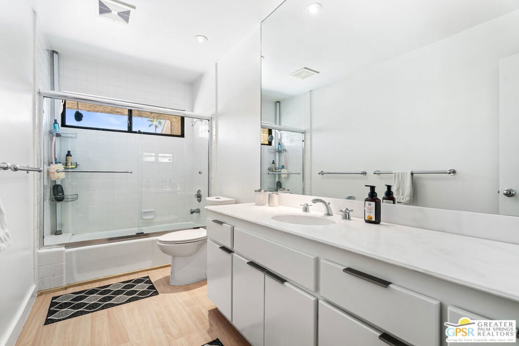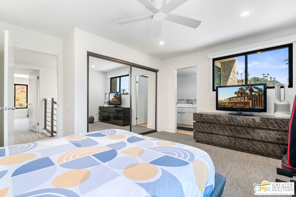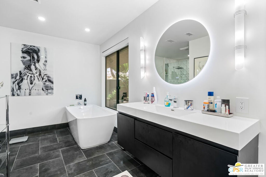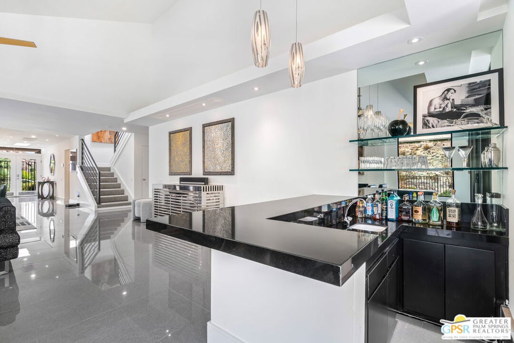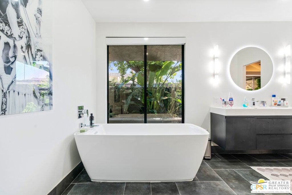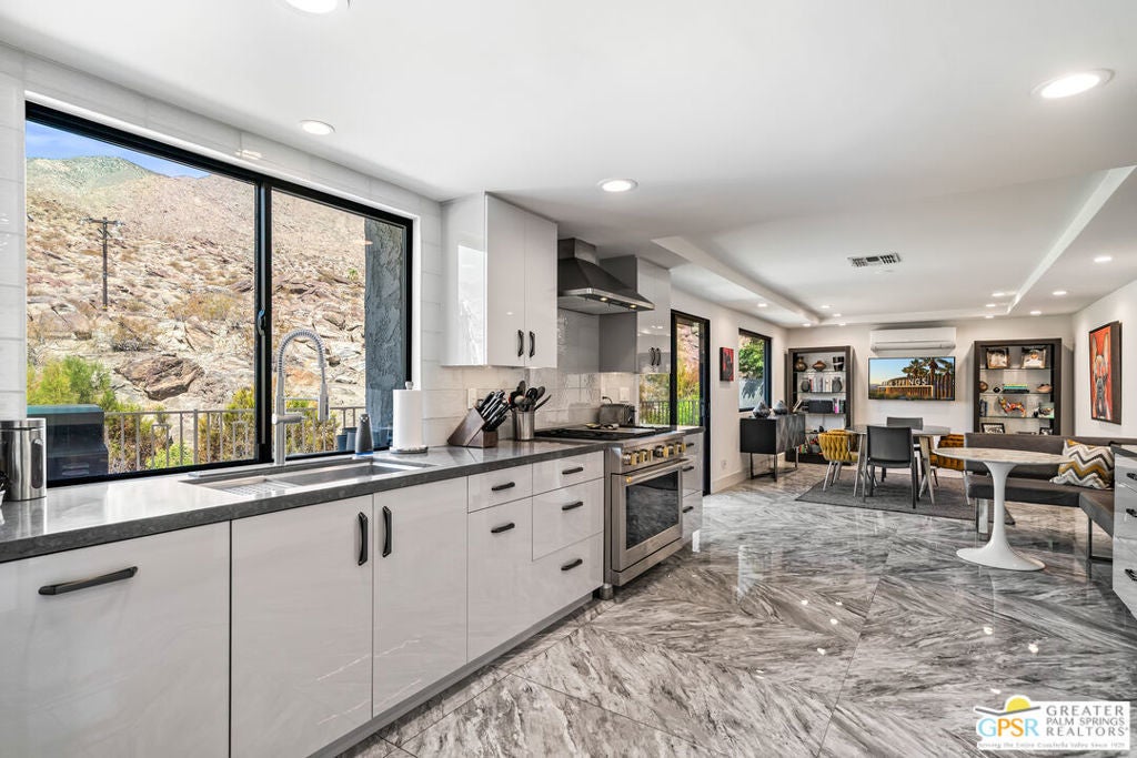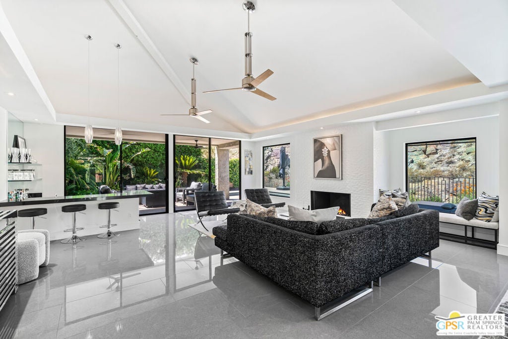 Spectacular forever mountainside views abound from this stunning Architectural Digest quality renovation. Offering 4 bedrooms and 4 baths, this thoughtfully appointed home proudly stands out as the jewel of Vista Canyon, a superb community of 29 homes on FEE (you own) land. From the soaring ceilings and floor to ceiling sliders to the outstanding chef's kitchen, this home far exceeds any competing new construction that offers limited square footage, builder finishes and expensive lease land fees. Two Primary suites, one on each level, both offering phenomenal vistas. The upscale kitchen is a cooking enthusiast's dream with high end appliances and adjoins a wonderful family room. Large entertaining spaces include a wonderful sunken bar and room for a table of 10. The double doored, gallery style entry offers an amazing space to showcase an art collection. Other outstanding features include a new pool with gorgeous decking and new heater and pool "cooler". Low HOA dues of 665.00 per month include front landscape maintenance, security gates, 2 pools and 2 spas, tennis court and romantic brick paved streets, lush landscaping and a community of excellent and caring neighbors. Truly a rare opportunity not to be missed.