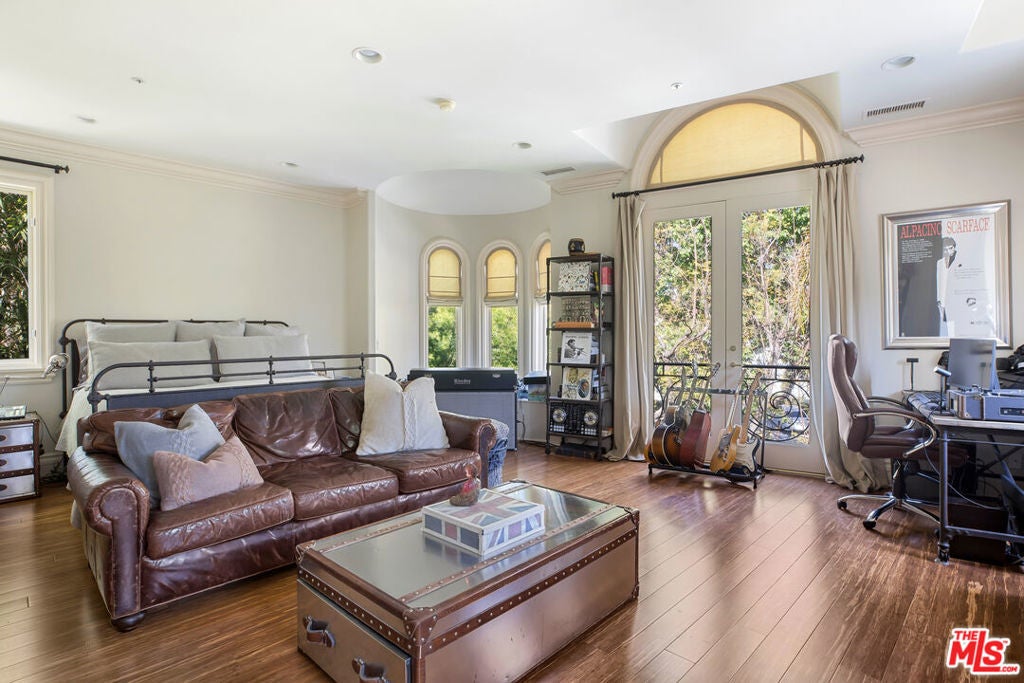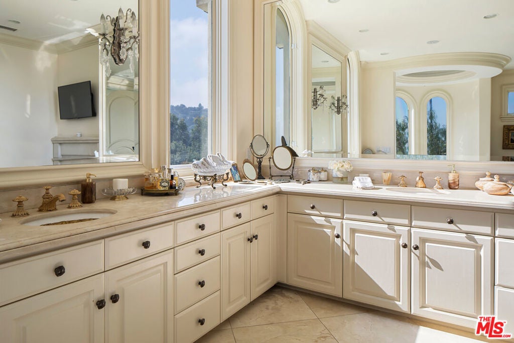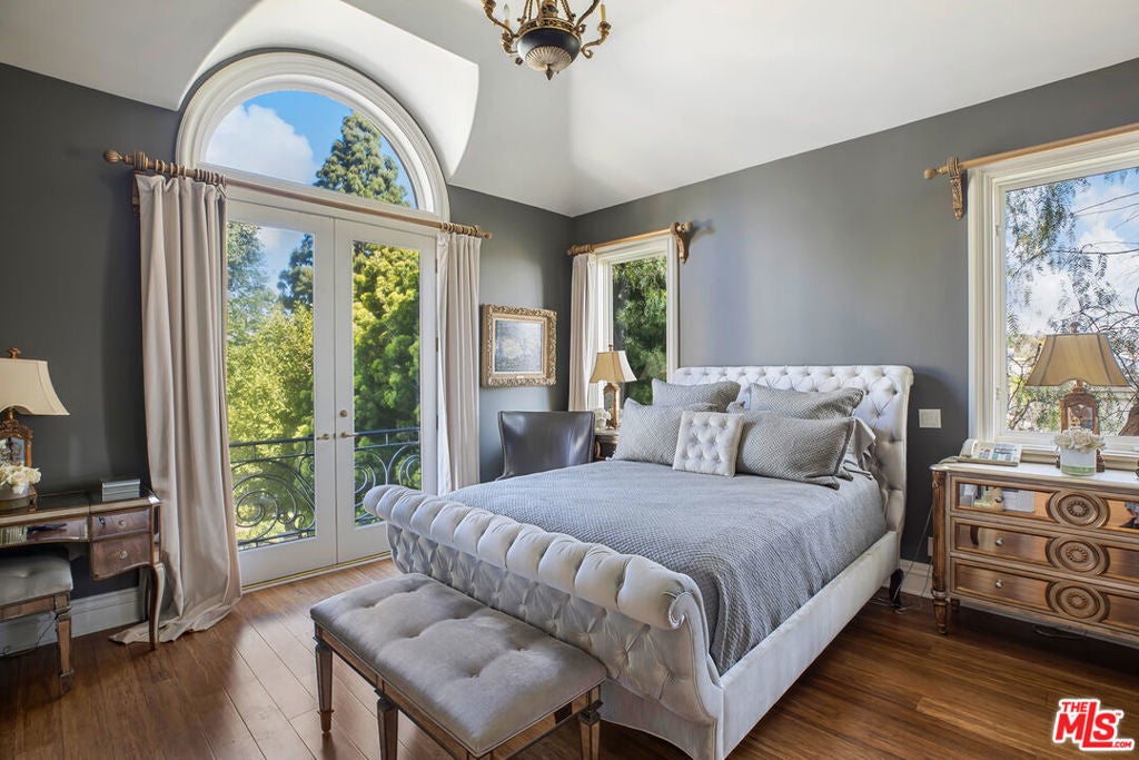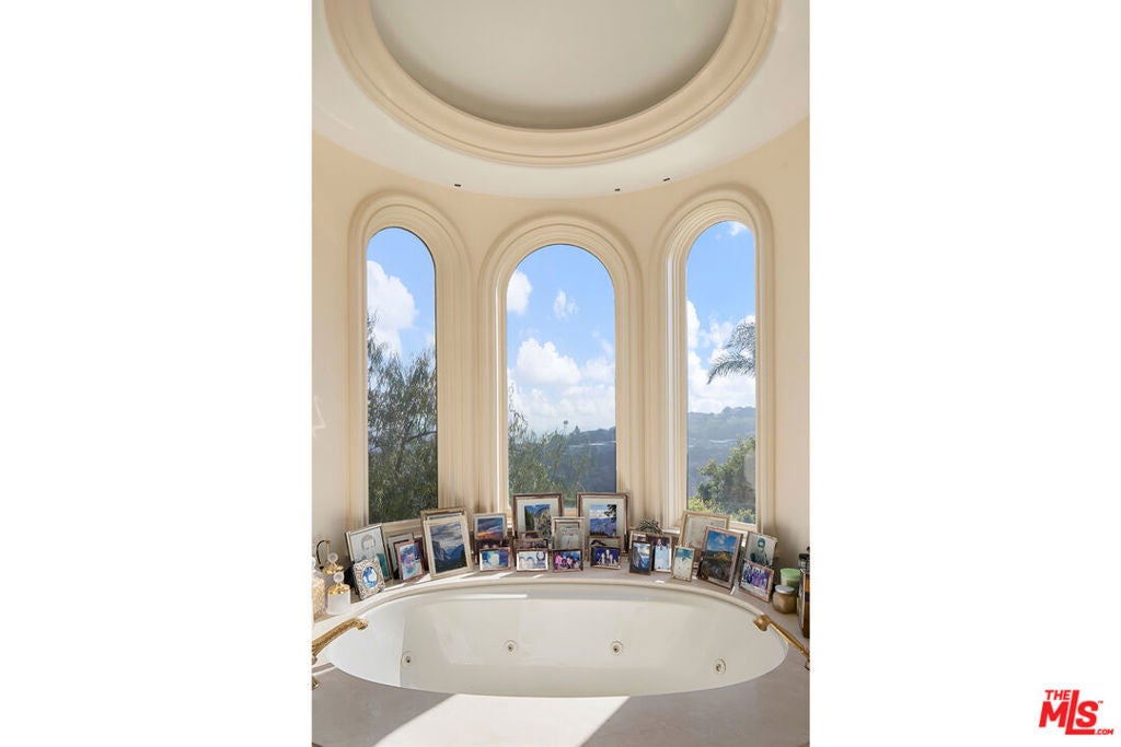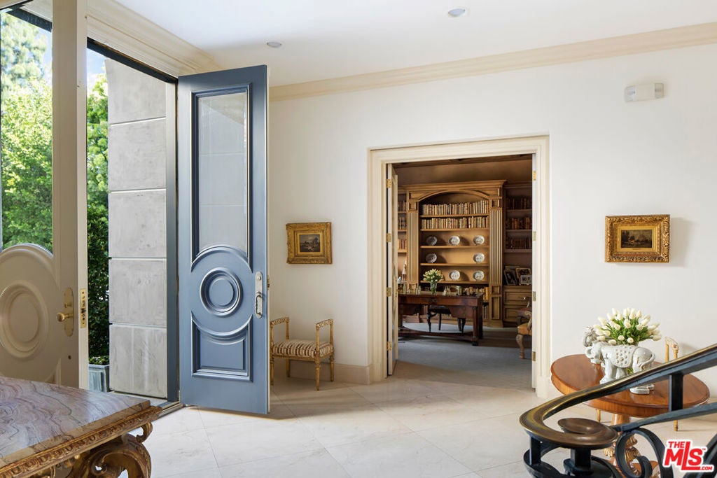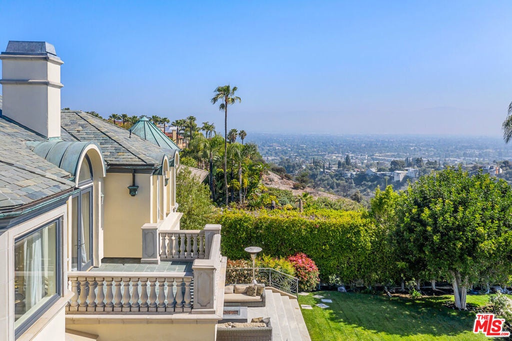 Fully Furnished French Chateau Estate. A spectacular residence set on over a half-acre, boasting the most coveted views in Mulholland Estates, a prestigious 24-hour guard-gated community. Behind grand iron gates, step into refined luxury with a dramatic two-story foyer and sweeping spiral staircase. The home showcases a formal living room with herringbone wood floors, a wood-paneled library, family/media room, formal dining room, and a gourmet kitchen with marble backsplash, Viking appliances, and water filtration system all overlooking manicured grounds, a tranquil fountain, and breathtaking views. The grand primary suite features a step-down sitting area with a double-sided fireplace, a custom marble bath with deep soaking tub, and a spa-like sauna. The private backyard is an entertainer's paradise with a sparkling pool, spa, multiple lounge areas, and a built-in BBQ. Available for lease fully furnished, offering a turnkey lifestyle in one of the most exclusive communities in Los Angeles.