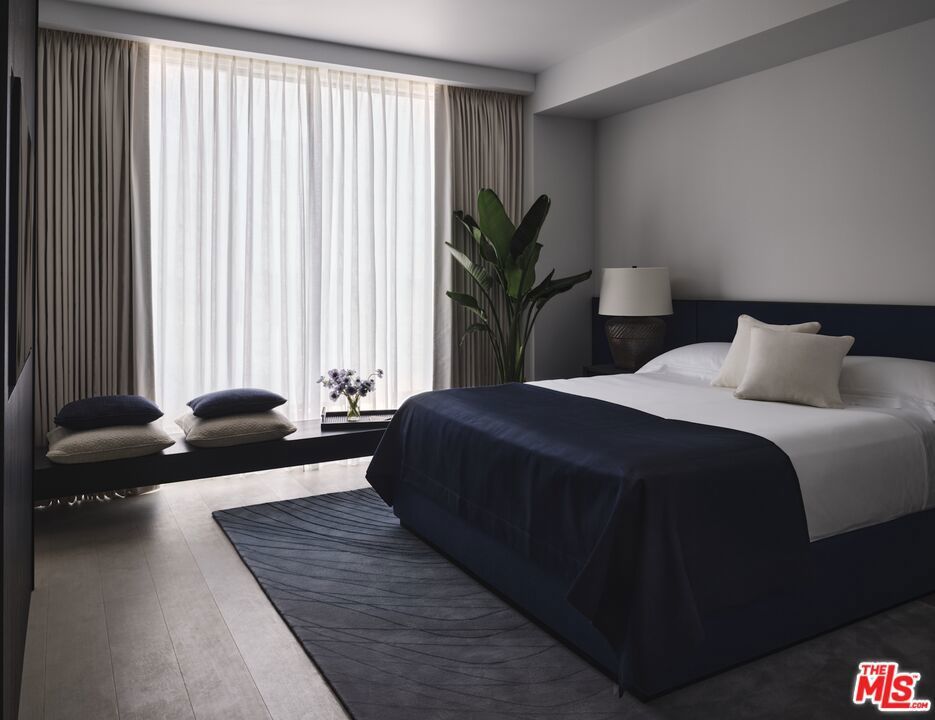 A harmonious blend of privacy and indulgence, Mandarin Oriental Residences, Beverly Hills offers the intimacy of a private home enhanced by the legendary service of a five-star hotel. Designed in collaboration with internationally acclaimed 1508 London, each residence is a master class in refinement, where daily rituals are elevated into moments of quiet luxury. The rooftop is a sanctuary unto itself, with sweeping views of Beverly Hills' iconic palm-lined streets. Surrounded by citrus trees and fragrant plantings of lavender, rosemary and sage the rooftop oasis features a heated pool, towel service, and serene lounge areas infused with calming natural scents. Wellness offerings continue with an impeccable spa suite featuring private treatment rooms, a steam room and sauna, and a state-of-the-art fitness center with Technogym equipment, private ballet/yoga room, and a sunlit outdoor terrace overlooking Century City and the pool. On the ground level, residents enjoy access to a private boardroom and cozy fireplace lounge, perfect for entertaining or working from home in style. Around-the-clock valet, concierge, and residence services ensure every detail is handled with signature Mandarin Oriental grace and discretion. Featuring a gracious two-bedroom layout with tranquil northeast exposures and a formal entry leading into a loft-like Great Room that flows effortlessly to a private treetop terrace. The open chef's kitchen is anchored by a leathered Taj Mahal quartzite peninsula, perfect for casual dining or entertaining. The en-suite guest bedroom overlooks the lushly landscaped Palm Court, while the serene primary suite offers a generous walk-in closet and five-fixture bath designed for total relaxation.