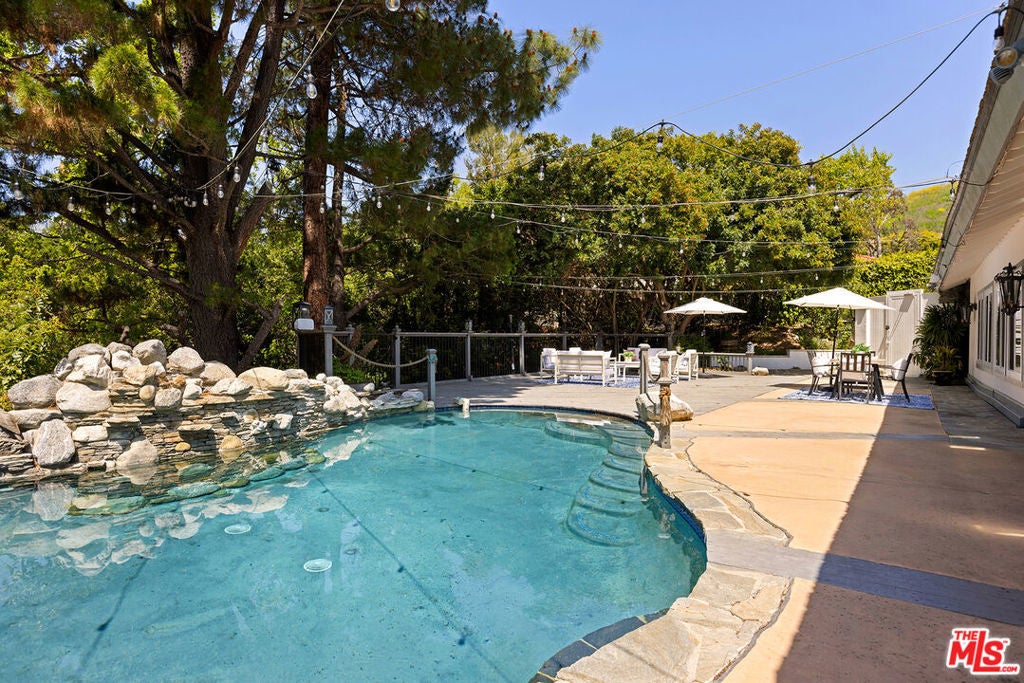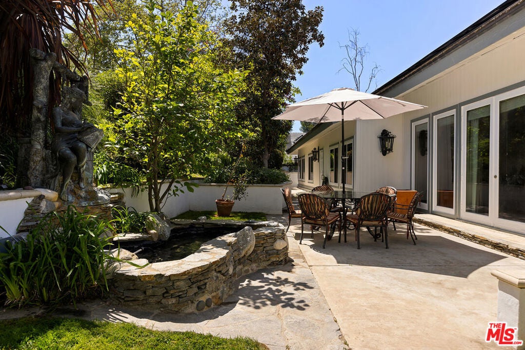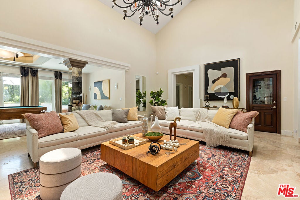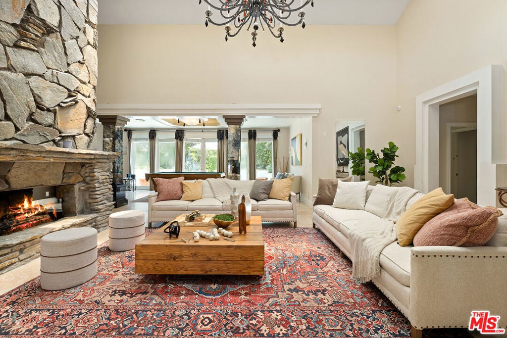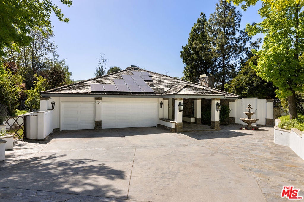 Nestled in the prestigious North Ranch community of Westlake Village, this single-story residence offers over 4,300 sq ft of living space on a half-acre lot. With 4 bedrooms and 4 bathrooms, the home combines spacious interiors with a private outdoor retreat. The entryway with soaring ceilings and stone tile flooring opens to a bright formal living room with fireplace and walls of windows. A large dining room provides the perfect setting for gatherings, while the great room features another fireplace and space for entertaining. The kitchen is equipped with Sub-Zero, Wolf, and Bosch appliances, complemented by a large pantry and abundant cabinetry. The oversized primary suite includes high ceilings, a fireplace, direct access to the backyard, and a spa-style bathroom. Three additional bedrooms and bathrooms offer comfort and flexibility for family, guests, or office space. Outside, the backyard is designed for leisure and entertaining, complete with a heated pool, spa, built-in BBQ, and mature landscaping for privacy. Additional highlights include:Three-car garage with storage and EV chargers, solar panels for energy efficiency(buyer to assume solar payments), security system and electric gate, Samsung washer & dryer, and Smart toilets. Just minutes from The Promenade at Westlake, The Shoppes at Westlake Village, and fine dining options including Tuscany Il Ristorante, Stonehaus, and Mediterraneo. Outdoor enthusiasts will appreciate the nearby North Ranch Country Club, Westlake Lake, and miles of hiking and biking trails.