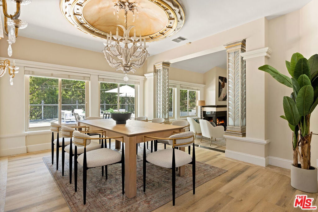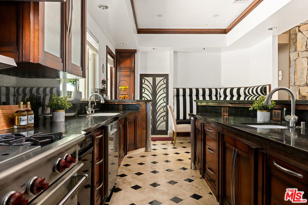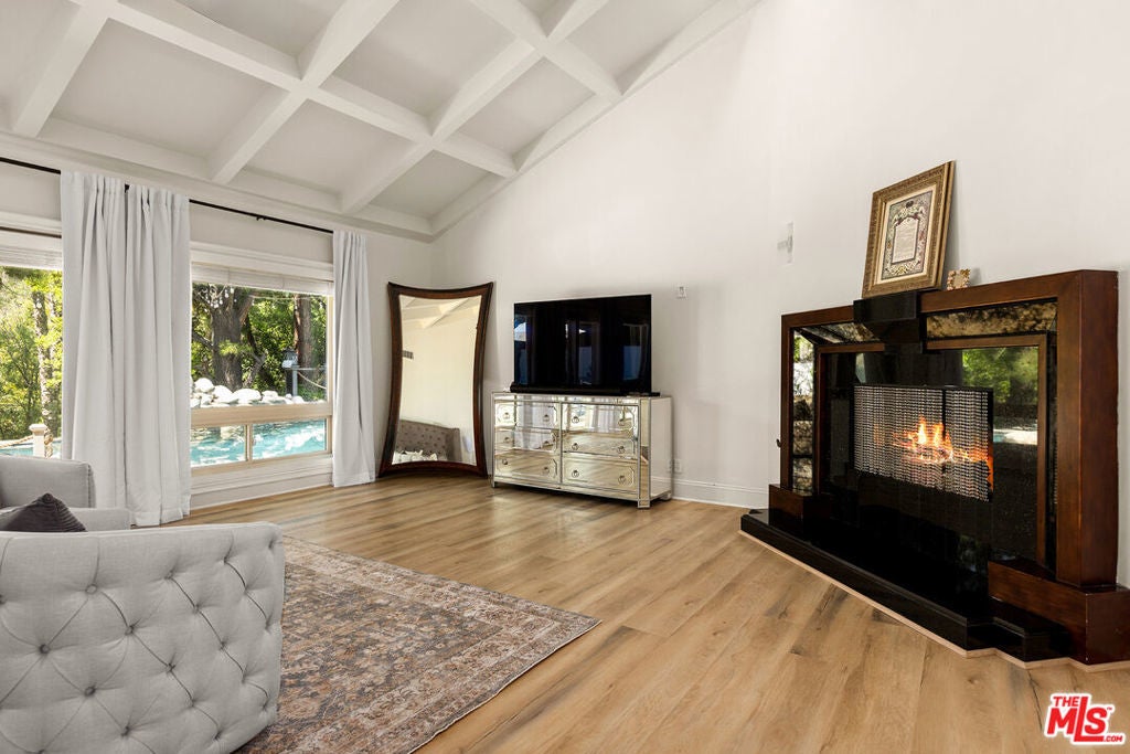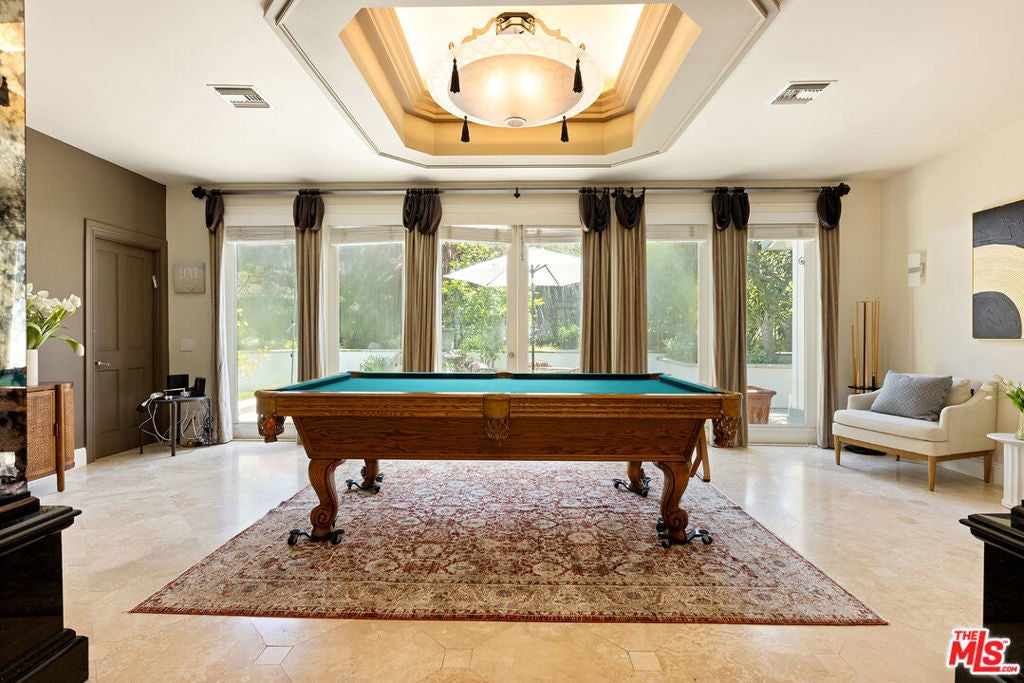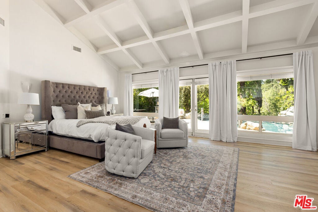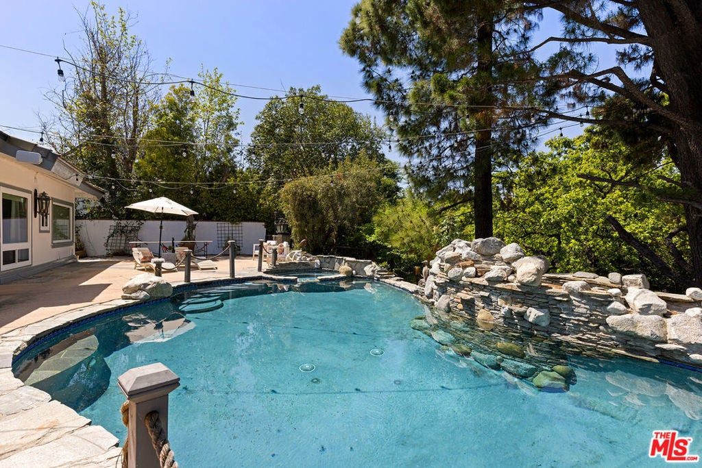 Nestled in the prestigious North Ranch community of Westlake Village, this single-story residence offers over 4,300 sq ft of living space on a half-acre lot. With 4 bedrooms and 4 bathrooms, the home combines spacious interiors with a private outdoor retreat. The entryway with soaring ceilings and stone tile flooring opens to a bright formal living room with fireplace and walls of windows. A large dining room provides the perfect setting for gatherings, while the great room features another fireplace and space for entertaining. The kitchen is equipped with Sub-Zero, Wolf, and Bosch appliances, complemented by a large pantry and abundant cabinetry. The oversized primary suite includes high ceilings, a fireplace, direct access to the backyard, and a spa-style bathroom. Three additional bedrooms and bathrooms offer comfort and flexibility for family, guests, or office space. Outside, the backyard is designed for leisure and entertaining, complete with a heated pool, spa, built-in BBQ, and mature landscaping for privacy. Additional highlights include:Three-car garage with storage and EV chargers, solar panels for energy efficiency(buyer to assume solar payments), security system and electric gate, Samsung washer & dryer, and Smart toilets. Just minutes from The Promenade at Westlake, The Shoppes at Westlake Village, and fine dining options including Tuscany Il Ristorante, Stonehaus, and Mediterraneo. Outdoor enthusiasts will appreciate the nearby North Ranch Country Club, Westlake Lake, and miles of hiking and biking trails.