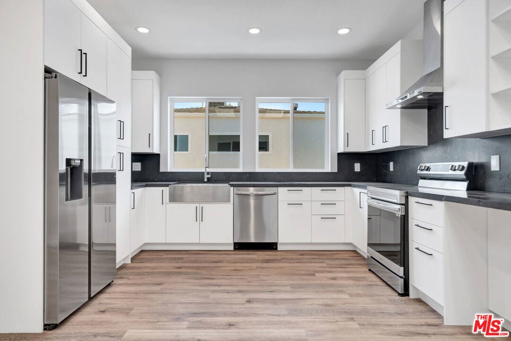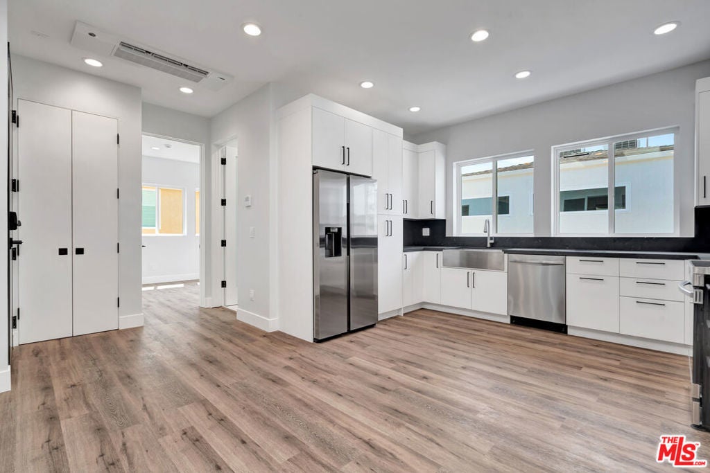 One month free with 18 month lease! Absolutely stunning and spacious 2br/2ba unit in a small 5 unit complex. Newly built, well appointed, and versatile unit features a massive kitchen, ample modern cabinets and new stainless steel refrigerator, stove, and dishwasher, Oversized undermount sink, modern multi unit central AC and heat and modern decorative and functional fireplace unit. Floating vanity in the bathroom. Washer/dryer included. The unit is modern, spacious and well located close to freeways, shopping and convenient to all areas of the City. . The bedrooms have cathedral ceilings and the bathroom is sleek, modern and spacious with rain head showers and contemporary tile work. Hardwood floors throughout. Be the first to live in this meticulously finished, modern home. Great for use as a two bedroom or a spacious one bedroom plus a den/office. Great for remote work from home. Welcome, your new home awaits. All occupants over 18 must complete an application. One year lease to begin. Tenants pay all utilities except water. Available for immediate move in.