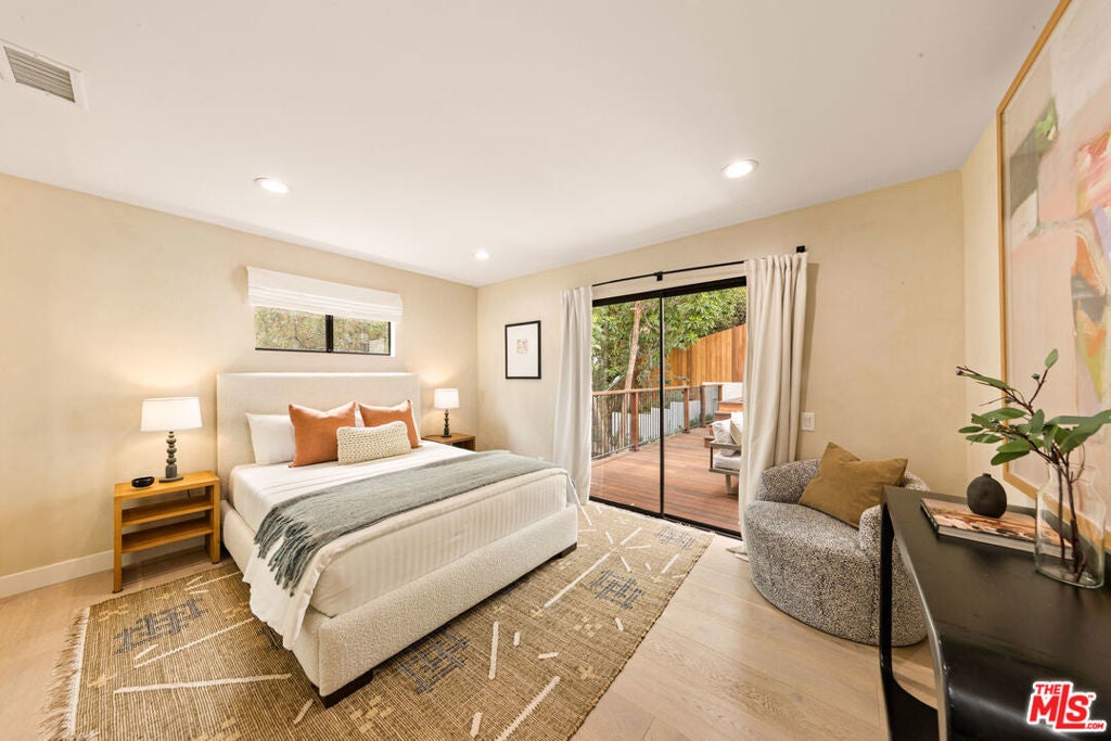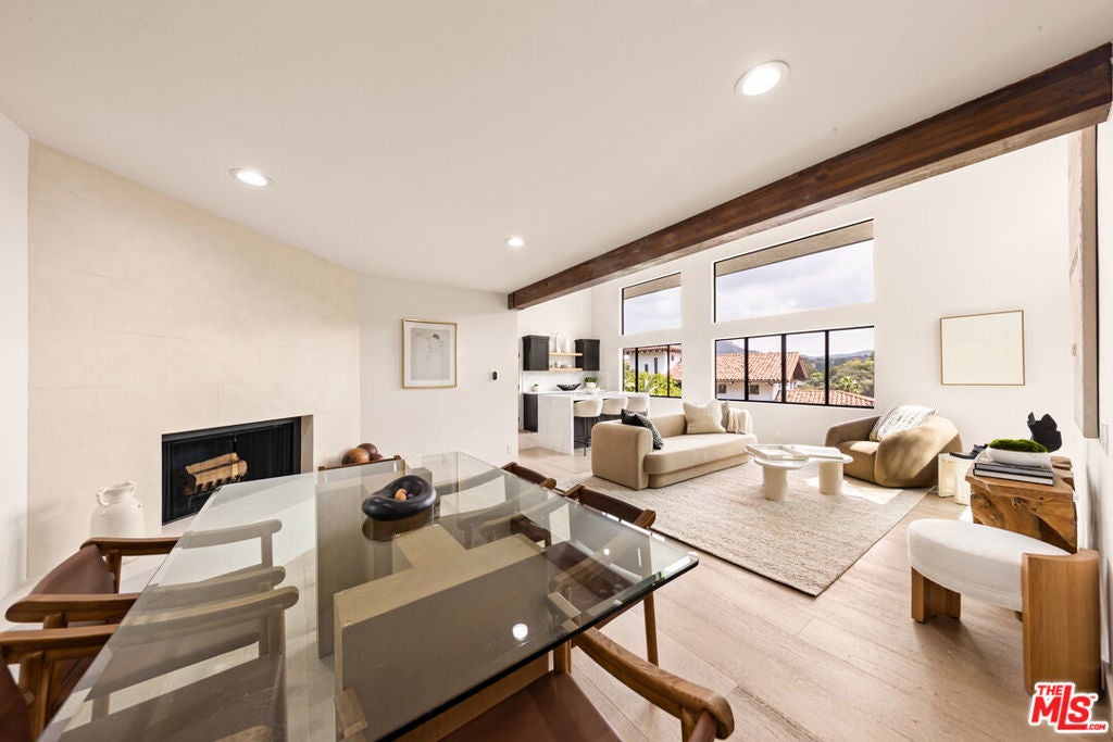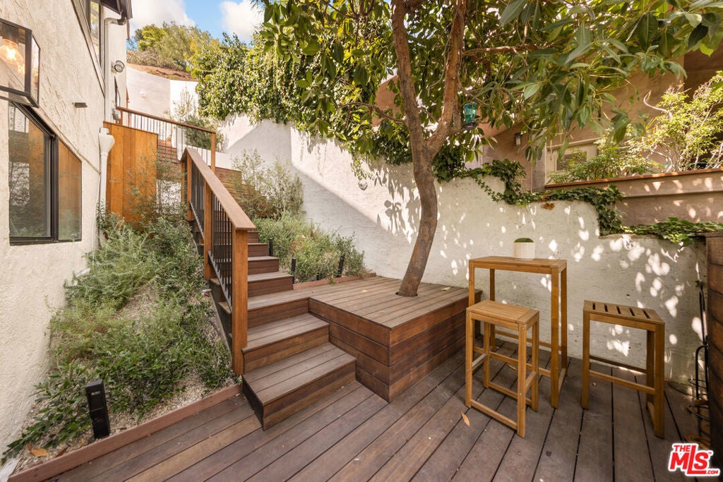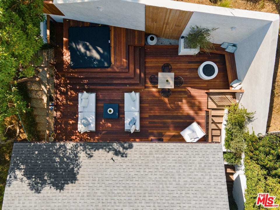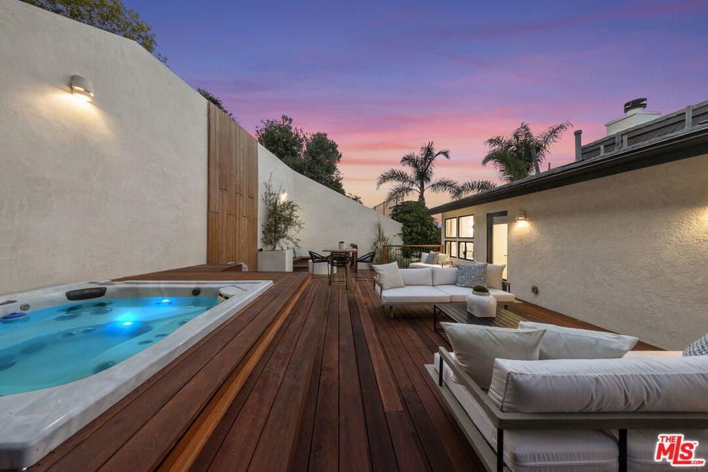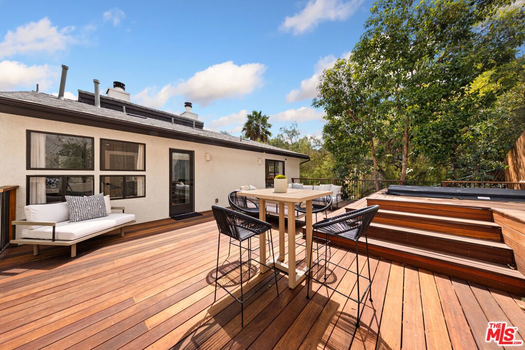 Tucked away in the serene Hollywood Hills, this recently remodeled turn-key home offers peaceful hillside living with sweeping canyon and city views yet sits just minutes from the energy of the city. Enjoy the calm of your own retreat while being only 10 minutes from world-class dining, nightlife, and entertainment. Universal Studios and CityWalk are nearby, while the Hollywood Bowl, Runyon Canyon, Studio City, and all of Hollywood are moments away. Inside, the open, airy layout is designed for both relaxation and entertaining. Design features double height living room, wood beam ceiling, oversized windows that flood the home with natural light and frame the views. Clean modern palette, stone slab style backsplash, oak open shelves, matte black cabinetry and hardwood flooring throughout. Truly a move-in ready house with seamless indoor-outdoor flow leads to multiple private terraces. A stunning newly built deck with a hot tub and fire pit creates the perfect setting for unwinding or entertaining under the stars. The chef's kitchen, generous living spaces, and a primary suite with spa-like bath combine comfort with sophistication. This property is ideal for those who value both convenience and privacy, prioritizing thoughtful design, breathtaking views, and a true turn-key experience.