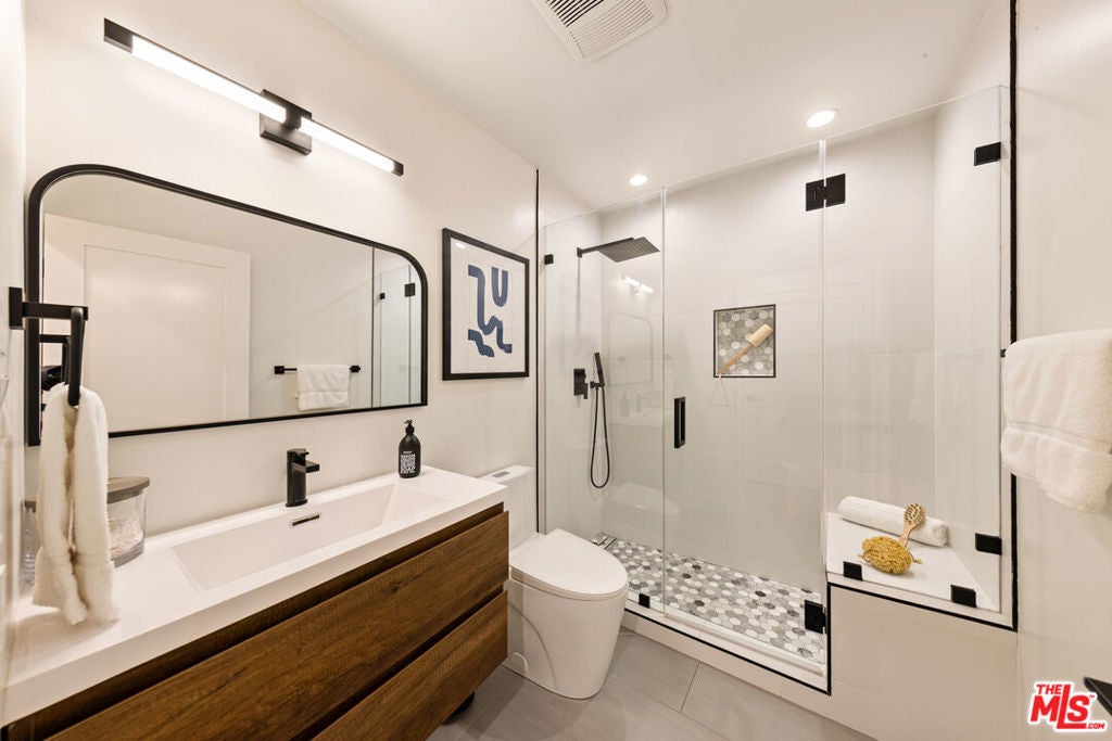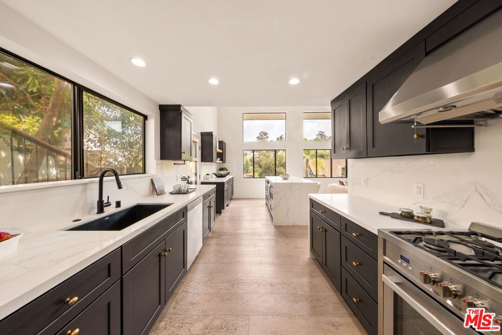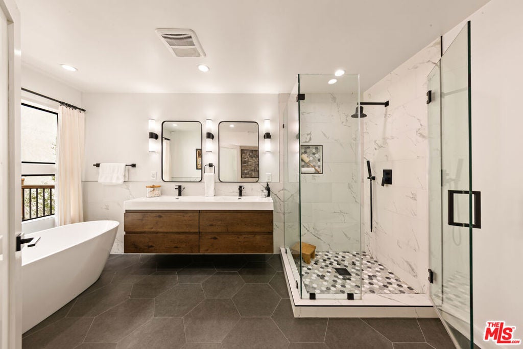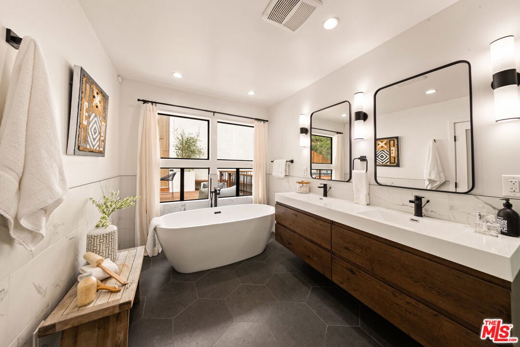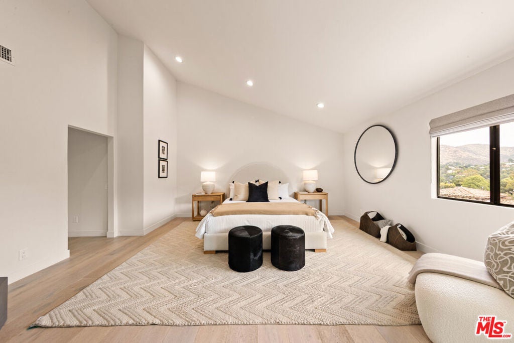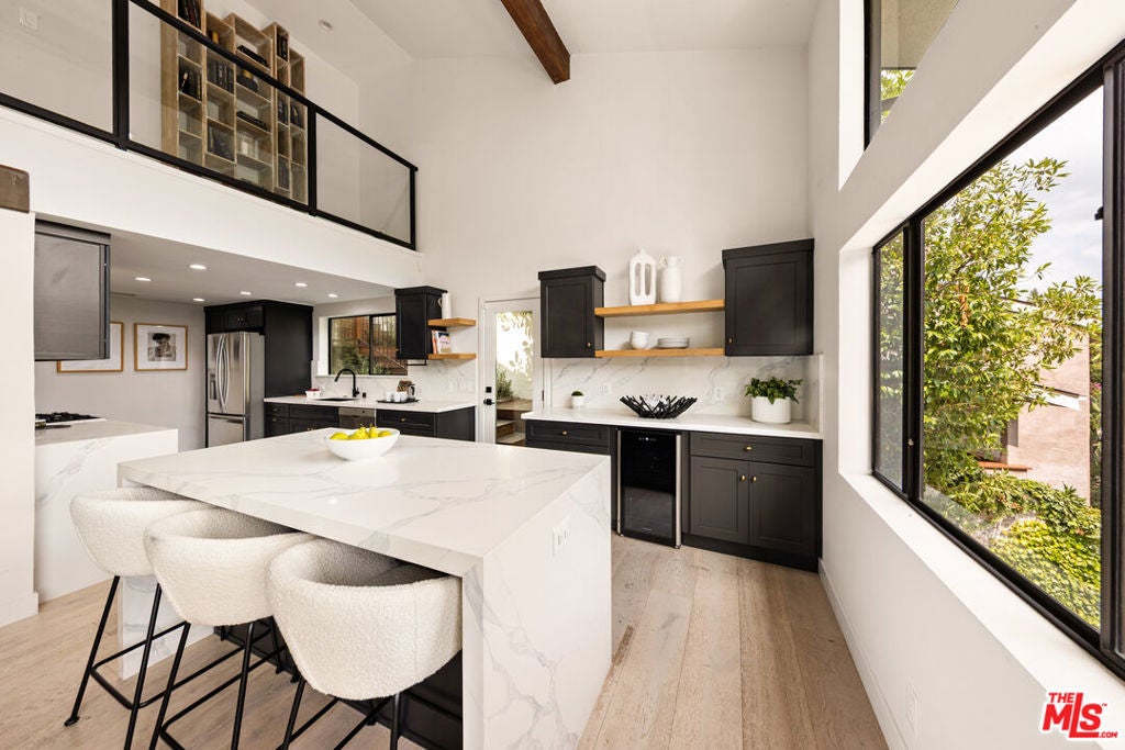 Tucked away in the serene Hollywood Hills, this recently remodeled turn-key home offers peaceful hillside living with sweeping canyon and city views yet sits just minutes from the energy of the city. Enjoy the calm of your own retreat while being only 10 minutes from world-class dining, nightlife, and entertainment. Universal Studios and CityWalk are nearby, while the Hollywood Bowl, Runyon Canyon, Studio City, and all of Hollywood are moments away. Inside, the open, airy layout is designed for both relaxation and entertaining. Design features double height living room, wood beam ceiling, oversized windows that flood the home with natural light and frame the views. Clean modern palette, stone slab style backsplash, oak open shelves, matte black cabinetry and hardwood flooring throughout. Truly a move-in ready house with seamless indoor-outdoor flow leads to multiple private terraces. A stunning newly built deck with a hot tub and fire pit creates the perfect setting for unwinding or entertaining under the stars. The chef's kitchen, generous living spaces, and a primary suite with spa-like bath combine comfort with sophistication. This property is ideal for those who value both convenience and privacy, prioritizing thoughtful design, breathtaking views, and a true turn-key experience.