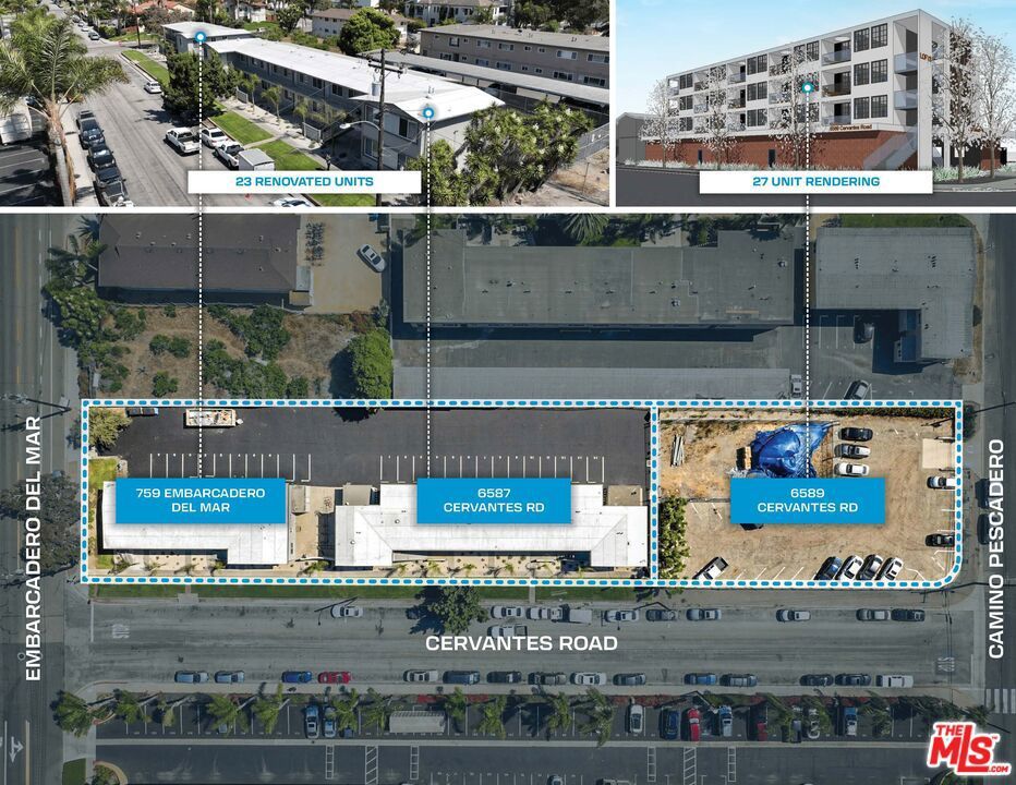We are pleased to present a rare combined offering in the heart of Isla Vista: a stabilized, fully renovated student housing portfolio seamlessly integrated with an entitled development site. This irreplaceable parcel, located just two blocks from the University of California, Santa Barbara (UCSB), provides a unique solution to one of the most challenging aspects of real estate development carrying costs. Investors can immediately collect substantial income from the existing 22 units, offsetting much or all of the holding expenses typically associated with development. This built-in income hedge mitigates risk, enhances returns, and allows positive cash flow from day one through the entire development timeline. The income-producing portion consists of 22 fully renovated units (48 beds) across two contiguous buildings at 759 Embarcadero Del Mar and 6587 Cervantes Road. Together, the properties total approximately 12,757 square feet of gross building area on 28,560 square feet of allocated lot area. Both properties underwent comprehensive renovations in 2023, including major system replacements, fully remodeled kitchens and bathrooms, in-unit laundry installation, and exterior upgrades. Durable finishes, modern amenities, and professional management creating an operationally stable, turnkey asset ideal for student housing. Adjacent to the multifamily portfolio, 6589 Cervantes Road occupies approximately 15,000 square feet and is entitled for a 27-unit, 22,677 square-foot four-story podium building with 27 on-site parking spaces. The approved unit mix 24 one-bedrooms and 3 two-bedrooms is designed to maximize rent per bed in a market defined by severe undersupply and consistent demand. While fully entitled, the project is not yet Ready-to-Issue (RTI); the buyer will complete the remaining plan check and permitting before construction can begin. McCarthy Companies, a highly experienced regional general contractor, has estimated hard costs at approximately $10.4 million, with total all-in costs (including soft costs, fees, and contingencies) projected at approximately $14.4 million. At pro forma rents of $4,150 for one-bedrooms and $6,500 for two bedrooms, the building is projected to generate an NOI of $1,025,392 and stabilize at a value of $20.5 million (5.00% CAP).