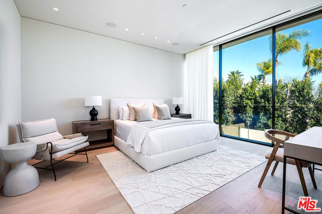 Indulge all of your senses in this brand-new Contemporary marvel located in the prestigious Bird Streets. Showcasing supreme quality with the finest materials, this estate embodies luxurious Los Angeles living and is the ultimate view estate with unobstructed jetliner vistas from Century City to the Pacific Ocean. A masterful creation by Paul McClean architecture, built by Dugally Oberfeld, and interior design and finishes by Marmol Radziner, this home features every conceivable amenity. Spanning approx. 13,400 sq.ft. of living space with 7 bedrooms and 9 bathrooms, there is ample space for friends, family, staff, and entertaining. Offering privacy and security, a gated driveway leads to a subterranean 8-car garage and the gated front entryway leads to the glass front door across a bridge spanning above the lower level interior courtyard oasis. Equipped with state-of-the-art smart home technology and custom automated walls of glass that amplify the incredible views throughout. The main level offers a grand living room with fireplace, dining area, expansive kitchen with enormous island and Wolf and Subzero appliances, family room, powder room, two guest bedroom suites with one furnished as an office, and the beautiful primary bedroom suite with walls of glass and terrace overlooking the views, fireplace, dual walk-in custom closets, and Afyon White Slab marble bathroom. The living room and primary bedroom flow into the exterior space featuring lounging terraces, fireplace, synthetic turf, and zero-edged pool and spa. Descend the floating staircase or take the elevator to the lower level which offers an incredible entertainer's oasis and wellness retreat. Features include a living room with large built-in bar, game/billiard room, glass wine display, gorgeous theater/media room, huge gym with walls of glass to covered patio, and spa with massage room, large shower and sauna. There is also a remarkable interior courtyard Zen-garden with water wall and the most beautiful living wall that brings light and nature inside. The lower level is complete with a guest suite, powder room, laundry room, and two staff suites. Discover this ultimate hillside oasis just moments from the excitement of Sunset Blvd and the best of Los Angeles dining, shopping, entertainment, and nightlife.