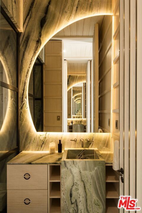 There are homes you live in and there are homes that live forever. Welcome to Simka Malibu - an awe-inspiring creation by "God's Architect" Kris Halliday. Thirty thousand square feet of architectural permanence rising from the bluffs of the Pacific, conceived as both fortress and sanctuary. A location chosen with the foresight of a thousand years thoughtfully positioned, engineered, and constructed with resilience in mind - designed to meet the challenges of fire, earthquake, tsunami, mudslide, and storm erosion. Built with over 7,300 cubic yards of super-reinforced concrete, Simka is a monument to permanence. Every line, every proportion, every material was shaped by one mind, one vision, one creation. The result is not just architecture, but a living work of art. Defined by bold lines of concrete and glass, softened by sculptural landscaping and curated natural stones from around the world, the estate embodies GA's philosophy of Brutality Vitality - where strength is balanced by serenity, and concrete itself is reimagined into a velvet-like presence. Entry unfolds through a secondary gated entry into a tranquil zen courtyard and stone pathway, revealing interiors where floor-to-ceiling glass dissolves the boundary between home and horizon. Simka is a sanctuary - built on Divine Masculinity, created to protect, nurture, and heal. Life here unfolds through sublime experiences: a 176-foot multi-level vein-matched stone pool with swim-up bar, sunken lounge, and dramatic viewing window merging seamlessly with the Pacific horizon. A world-class theater with a 235-inch LED screen, Dolby Atmos sound, and Atelier Italian leather recliners rivals the world's finest private cinemas. A Japanese tea room - a sanctuary within the sanctuary - offers profound quiet. The full commercial kitchen easily supports gourmet cooking for up to 200 guests, complemented by terraces for al fresco dining, shaded loggias, and an outdoor kitchen for endless gatherings. Throughout, water and nature flow: Japanese gardens, waterfalls, meditation courts, koi ponds, and pathways that weave stillness into daily life. Swinging daybeds, a circular fire lounge, and open-air courtyards transform relaxation into ritual. For wellness and longevity, Simka offers a full spa, cold plunge, sauna, treatment rooms, and a state-of-the-art gym with underwater pool windows. A nightclub, private guest suites, and an underground 10-car garage complete the lifestyle offering. The 1,800 sq ft primary suite is a private sanctuary suspended above the waves, with its own hot tubs, fireplace lounge, and spa-inspired bath. Additional suites echo this intimacy, blending organic textures, curated furnishings, and panoramic ocean views. Every detail, down to marble-clad powder rooms designed as art, speaks to permanence and intention. With 10 bedrooms, 20 bathrooms, and seamless indoor-outdoor living, Simka is monumental yet intimate - enduring yet ethereal. Not built for a decade or a generation, but for centuries. Simka Malibu - architecture for eternity.
