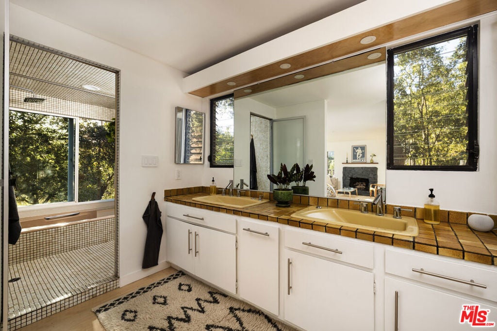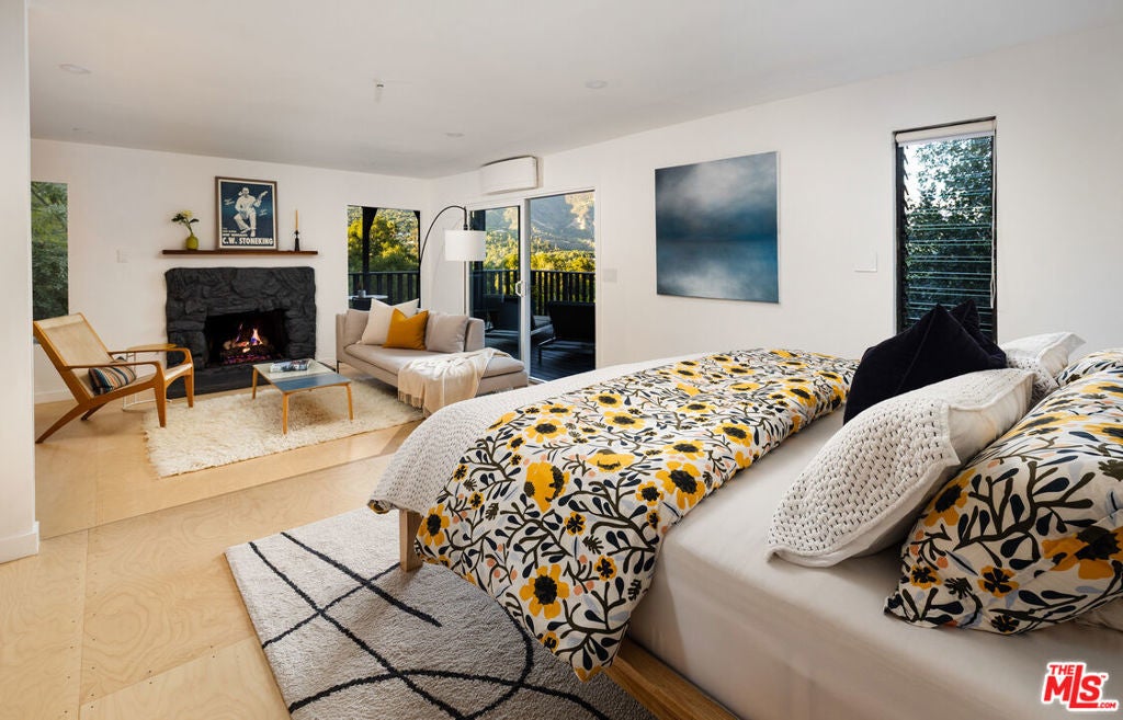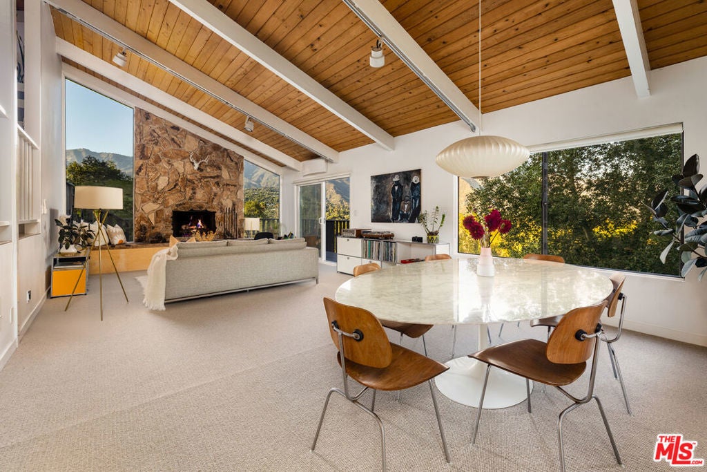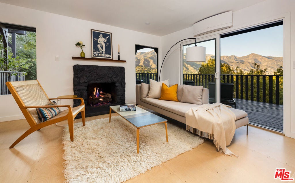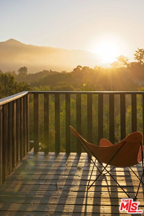 This Riviera Summit mid-century retreat, set on approximately one acre, embodies a rare harmony of architecture and nature. Just minutes from downtown Santa Barbara and Montecito's shopping and dining, the serene multi-level residence is celebrated for its architectural significance, mountain vistas, sunrises and moonrises, and daily encounters with deer, hawks, and the evening song of coyotes. The home's open layout blends European sensibility with Santa Barbara's signature indoor-outdoor living, seamlessly connecting the main living, kitchen, and dining spacesappointed with high-end appliancesto multiple view decks, ideal for year-round entertaining, al fresco dining, and relaxed lounging. Arrival is marked by a distinctive entry deck designed around two graceful oak trees, leading to a calming water fountain. Inside, expansive windows, beamed ceilings, and a striking stone fireplace frame mountain views that serve as living artwork. The private primary suite occupies its own level, offering a sitting area, fireplace, generous closet, flexible office space, and a secluded deck that heightens the sense of retreat. Its spa-like bath features a soaking tub with views to the natural surroundings. Freshly painted inside and out, with a new roof and gutters, the residence offers peace of mind along with timeless style. Bordered by Franceschi and Parma Parks, the home is immersed in nature with world-class hiking and cycling just outside the door. Below the residence, the gently sloping acre invites possibilities: a pool, orchard, enhanced landscaping, or an ADU with existing design plans and site approvals, an opportunity to expand this mid-century gem into a multi-generational enclave or guest retreat.
