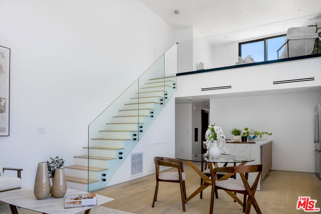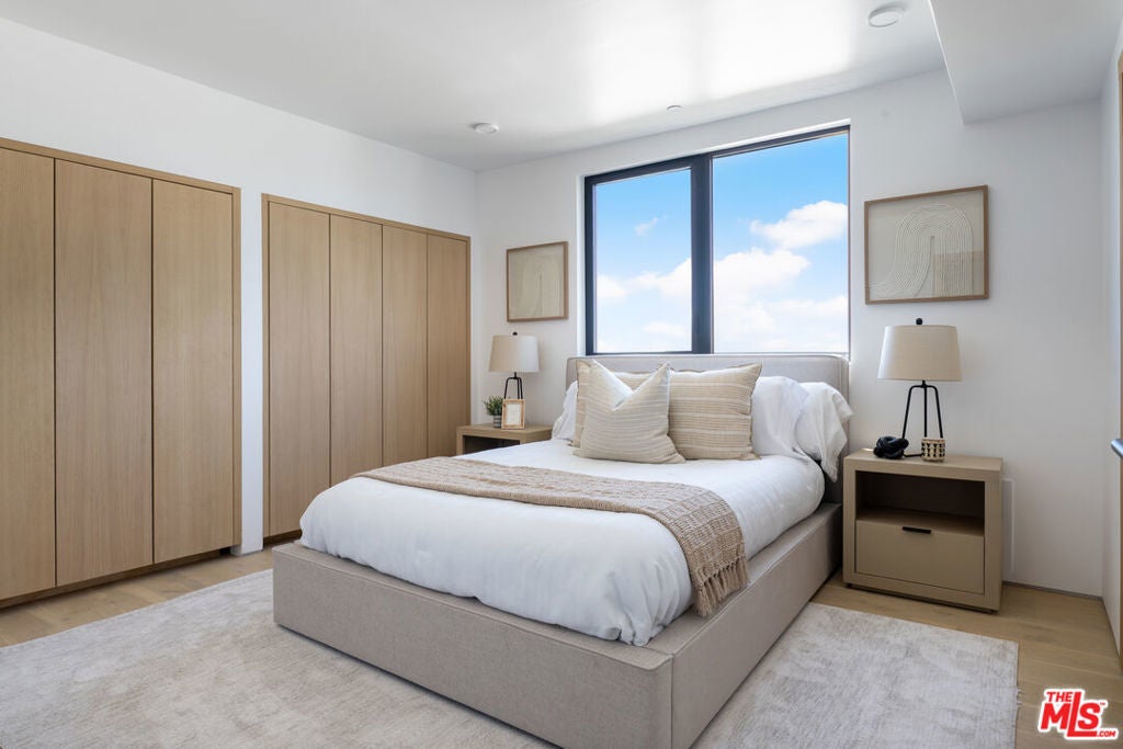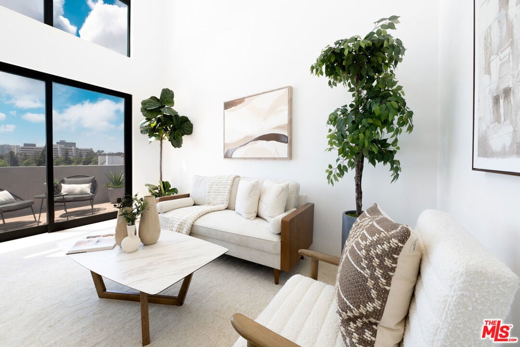 2025 Ultra-Modern Boutique Penthouse in Prime Westwood. A brand-new 2025 architectural gem, this boutique building of only 15 residences is just minutes from UCLA and Westwood Villageperfect for students, faculty, or professionals seeking elegance, convenience, and walkability.This stunning 2BR/2BA penthouse with loft showcases dramatic soaring ceilings and expansive black-framed windows that flood the space with natural light. The open-concept design features oak hardwood floors, custom built-ins, refined luxury tile finishes, and an oversized kitchen island ideal for gatherings. The gourmet kitchen is appointed with European cabinetry, quartz countertops, and premium Thermador appliances, blending form and function seamlessly.Upstairs, the loft overlooks the main living area and provides direct access to a private rooftop terrace with breathtaking city and mountain views. The primary suite includes a private en-suite bath, while the guest bedroom has a separate full bath for comfort and convenience.Residents enjoy secure parking, elevator access, and an elegant high-ceiling lobby. Set on a quiet, tree-lined street, the location offers effortless access to campus, cafes, fitness studios, shopping, and transit, with Beverly Hills, Century City, and Santa Monica just minutes away.Experience penthouse living at its finest modern design, boutique exclusivity, and a Westwood lifestyle without compromise.
