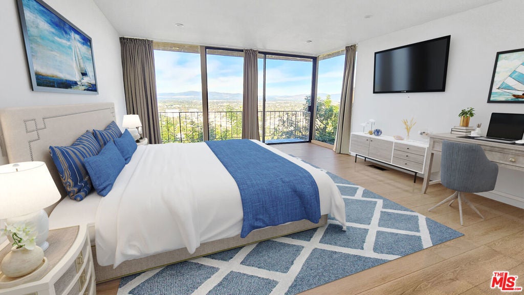Recently remodeled stunning home with spectacular panoramic views from most areas of the home! Offering 2,311 sq. ft., this 2-bedroom + 1 office room (could be easily converted to a bedroom upon request), 2.5-bath residence combines comfort and elegance. Entire home is newly painted with new flooring! The bright and spacious living room features lots of natural light, a spectacular panoramic view and a cozy fireplace. The kitchen has been recently upgraded is equipped with granite countertops, abundant updated cabinetry, and stainless steel appliances, a good sized dining area and a breakfast area. The office room / third bedroom is customized with an oak library. Large patio with exposure also to panoramic views. Large sized garage. Tucked away in a quiet, secluded cul-de-sac, yet conveniently close to the 405 and 101 Freeways, Mulholland Drive, and Beverly Hills, this home truly offers the best of both privacy and accessibility.