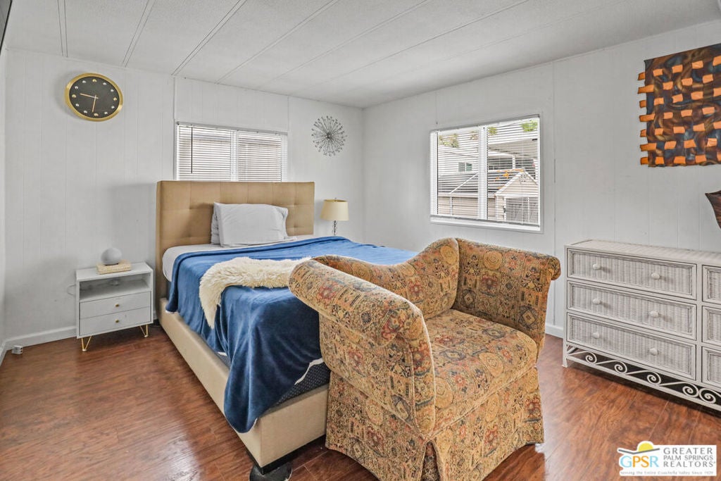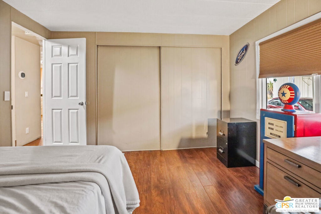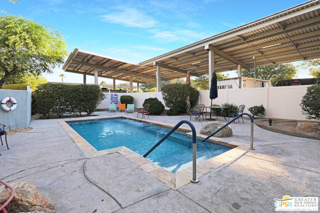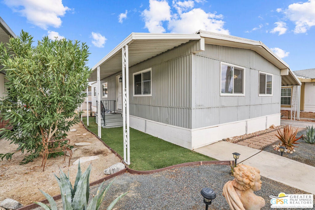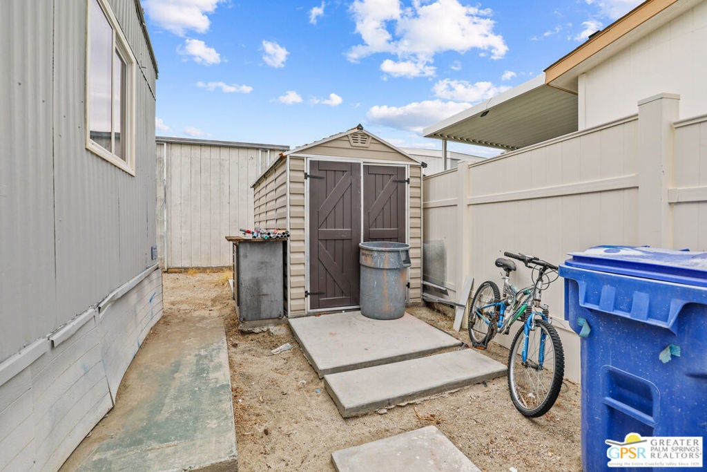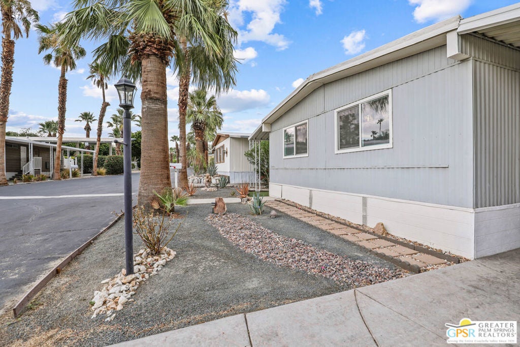 Located in the picturesque Desert Palms Community, this charming 2-bedroom, 2-bathroom home offers comfort and modern touches in a serene, gated setting. Featuring tile flooring throughout the main areas and updated laminate floors in the halls and bedrooms, this residence is both stylish and functional. The dual-pane windows have been recently replaced, enhancing energy efficiency while allowing natural light to pour in.The guest bathroom which has been tastefully remodeled, offers a fresh and inviting space. The kitchen, while it needs some updated aesthetics, includes a stainless-steel range hood and refrigerator, adding a sleek contemporary touch to the home. Inside, the living room is spacious; the bedrooms are generously sized and the primary suite includes multiple closets for optimum organization. Window blinds provide privacy while complementing functional elements. Outside, you'll find a well-maintained front yard with desert gravel and faux turf walkways, giving the space a clean and low-maintenance appeal. The carport offers ample parking along with a driveway, while a utility sheds provide extra storage solutions. This home is situated in an all-age park, making it suitable for a variety of lifestyles. It offers a pool, spa, RV parking, playground, workout room, club house, BBQ, dog park and onsite management. The area is peaceful and serene, ideal for those seeking a quiet environment with affordable space rent. Don't miss this opportunity to live the desert lifestyle in this beautiful Desert Palms Community. Park Approval required. Space rent will be $678.00, Trash: $48 and Sewer: $31.96.