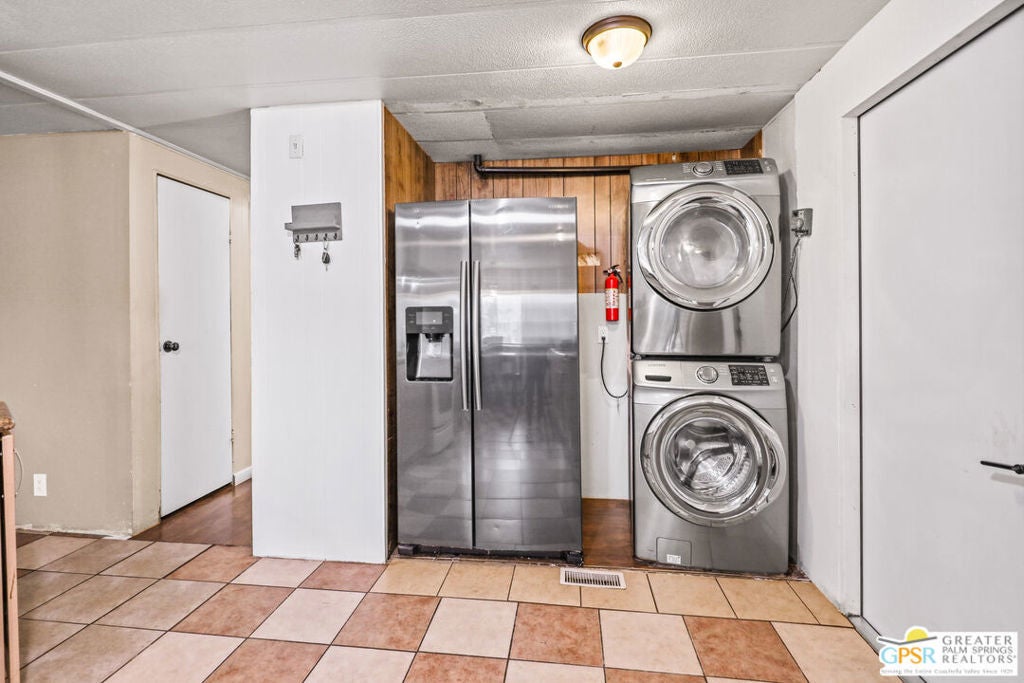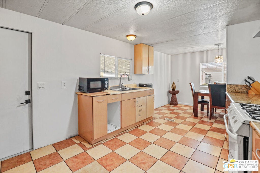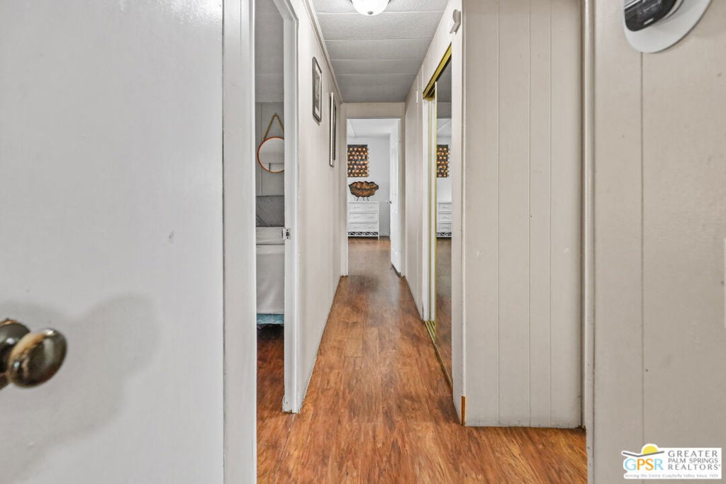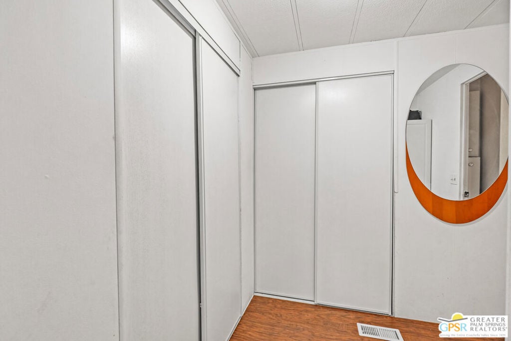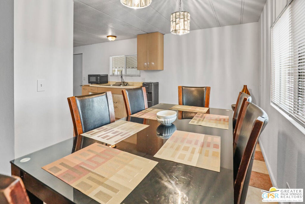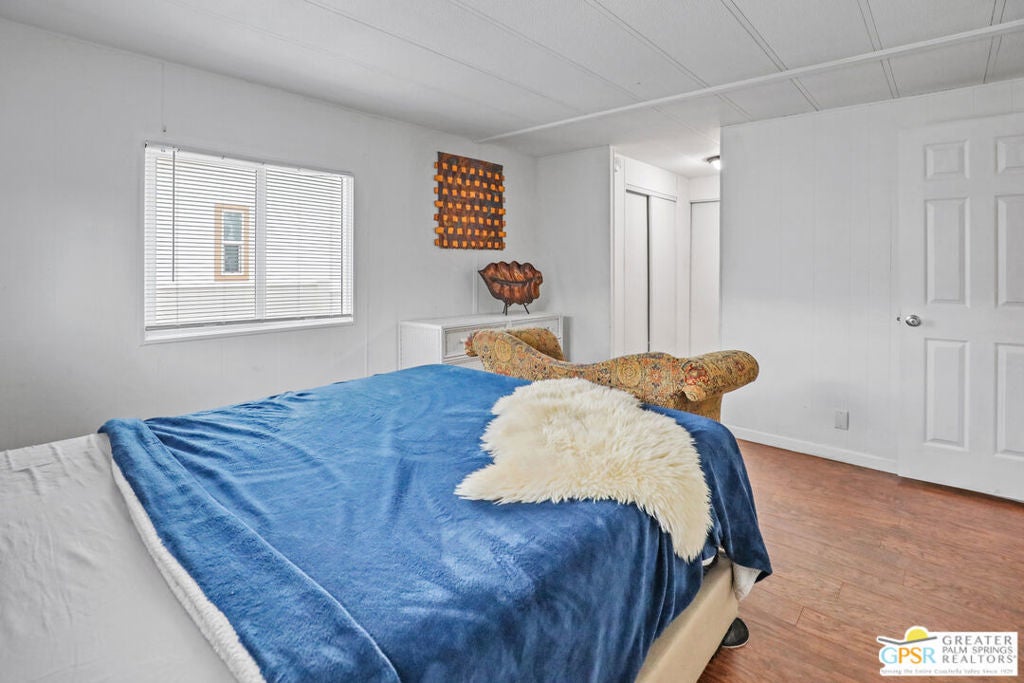 Located in the picturesque Desert Palms Community, this charming 2-bedroom, 2-bathroom home offers comfort and modern touches in a serene, gated setting. Featuring tile flooring throughout the main areas and updated laminate floors in the halls and bedrooms, this residence is both stylish and functional. The dual-pane windows have been recently replaced, enhancing energy efficiency while allowing natural light to pour in.The guest bathroom which has been tastefully remodeled, offers a fresh and inviting space. The kitchen, while it needs some updated aesthetics, includes a stainless-steel range hood and refrigerator, adding a sleek contemporary touch to the home. Inside, the living room is spacious; the bedrooms are generously sized and the primary suite includes multiple closets for optimum organization. Window blinds provide privacy while complementing functional elements. Outside, you'll find a well-maintained front yard with desert gravel and faux turf walkways, giving the space a clean and low-maintenance appeal. The carport offers ample parking along with a driveway, while a utility sheds provide extra storage solutions. This home is situated in an all-age park, making it suitable for a variety of lifestyles. It offers a pool, spa, RV parking, playground, workout room, club house, BBQ, dog park and onsite management. The area is peaceful and serene, ideal for those seeking a quiet environment with affordable space rent. Don't miss this opportunity to live the desert lifestyle in this beautiful Desert Palms Community. Park Approval required. Space rent will be $678.00, Trash: $48 and Sewer: $31.96.