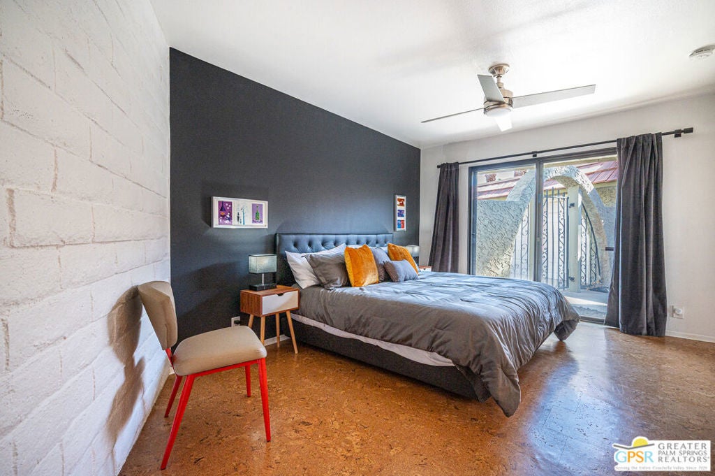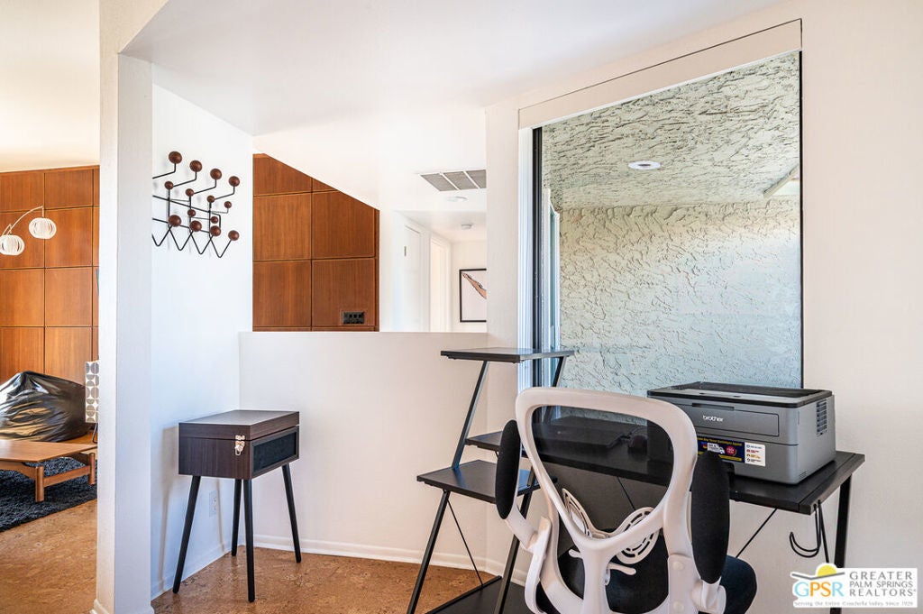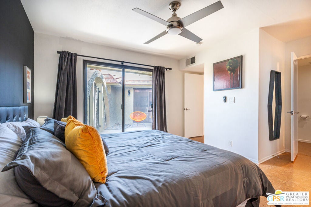 Resort Style Living at Cathedral Canyon Country Club! This light & bright furnished home has beautiful mountain views surrounded by palm trees, located on a quiet cul-de-sac with lots of green space. Cathedral Canyon CC has a 18 hole golf course, tennis courts, pool, spa and clubhouse. This spacious 2 bed 2 bath home has been upgraded with gorgeous cork flooring throughout, mahogany wall in living room, views from living room, open dining & kitchen with stainless steel appliances, both bedrooms are primary with en suite. Pet friendly community! Large 2 car garage with car charger & tankless water heater & extra storage space. Beautiful community pool and spa just steps from your door. Private courtyard area in front with gates and nice patio area off living room with BBQ. This home has solar with 10 panels so its easy to keep cool & enjoy. Solar is leased at $154.65/per month for 24 years and has 2 batteries which makes this energy independent. Land lease of $219.18/per month and land lease until Sept 13, 2061 (36 years on land lease). current loan is assumable @4% $236,094 call agent for info. Easy access to Country Club and Golf. Easy to get to Palm Springs, Rancho Mirage and Palm Desert all offering great restaurants, shopping and much more. Palm Springs Airport 12 minutes away. The World Famous "El Paseo" shopping district located in Palm Desert is a 10 minute trip. This home has it all! Move right in.