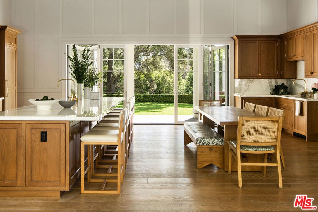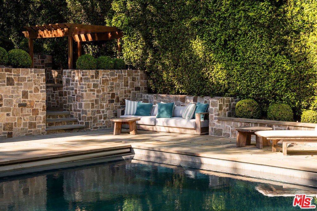 Step behind a discreet gate into a private oasis. A gentle stream sets a calming tone as views open to nearly an acre of park-like grounds. Stone pathways lead to beautiful yards for relaxation and play, a sports court, a gorgeous pool area with spa and guest house. The main residence, reimagined with Maurice Gadson Design, embodies simplicity, beauty, and craftsmanship. The dramatic living room and kitchen with soaring ceilings and seamless garden access are the heart of the home. The custom wood paneled media room and secondary family room were designed for comfort and flexible living. Every detail speaks of curation: Samuel Heath and Waterworks fixtures, vintage French lighting, textiles by Holly Hunt, Thomas Lavin, Schumacher, Missoni runners, Calcutta stone, custom millwork, and Christian Lacroix wallpaper. Smart automation and tailored shades complete the experience. The outdoor kitchen and dining area with views of your very own vineyard elevate one's entertaining experience and evenings by the outdoor fireplace brings birdsong, owl calls, and absolute tranquility. Boca de Canon is a setting that truly cannot be replicated.