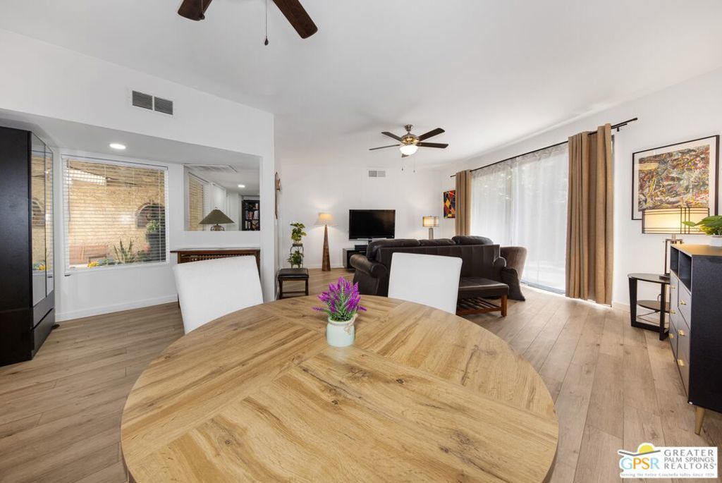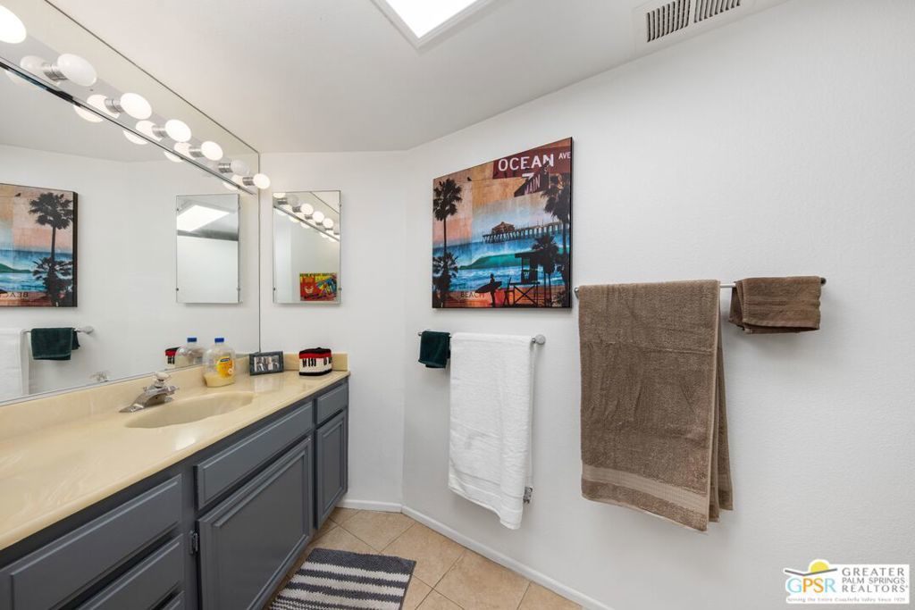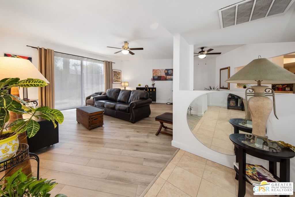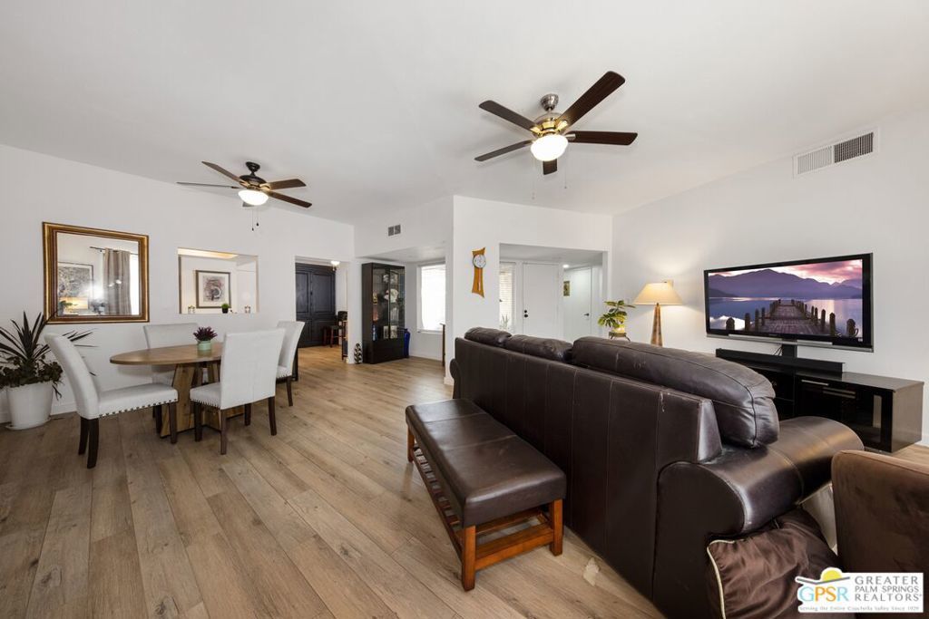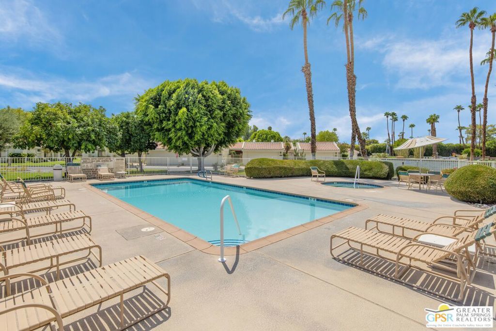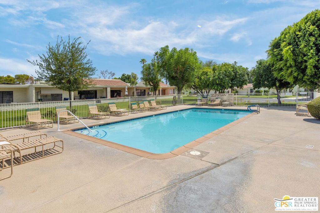Situated at the end of a peaceful cul-de-sac, this beautifully updated 2-bedroom, 2-bathroom home in Cathedral Canyon Country Club blends modern elegance with desert serenity. This home features a chef-inspired kitchen equipped with high-end appliances and sleek flooring throughout. The garage includes storage cabinets for added convenience. The home's private setting provides peace and quiet while still offering easy access to community amenities, including refreshing pools for those warm desert days. The semi-private backyard is a peaceful oasis, complete with a charming patio perfect for relaxing or entertaining. This home presents an incredible opportunity to embrace the desert lifestyle. Don't miss out on owning a piece of paradise in this sought-after community.