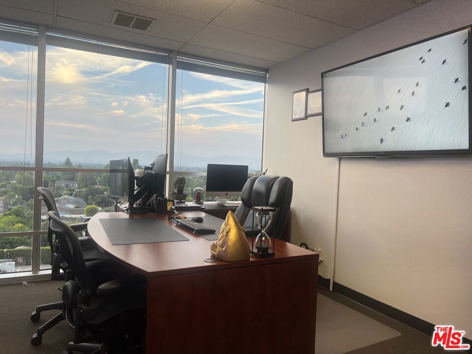 This turnkey 222 SQFT office combines functionality with elegance in the renowned Encino Financial Center. Offering beautiful natural light and sweeping Valley views, the space is fully furnished with contemporary pieces, allowing you to move right in and focus on what matters most. The building enhances the workday with exceptional amenities, including a caf, outdoor lounge, community conference room, dry cleaner, EV charging, and 24-hour secure access. Perfectly positioned in the heart of Encino, the property is surrounded by top restaurants, boutiques, and services, with seamless access to the 405 and 101 freeways as well as Metro transit. One secured parking space included.
