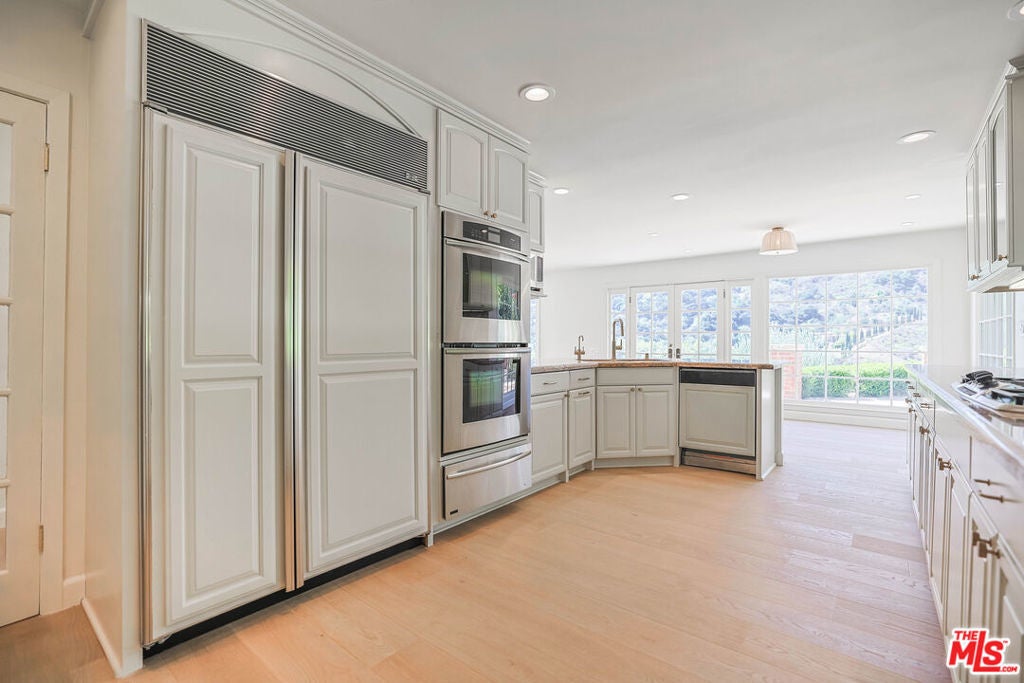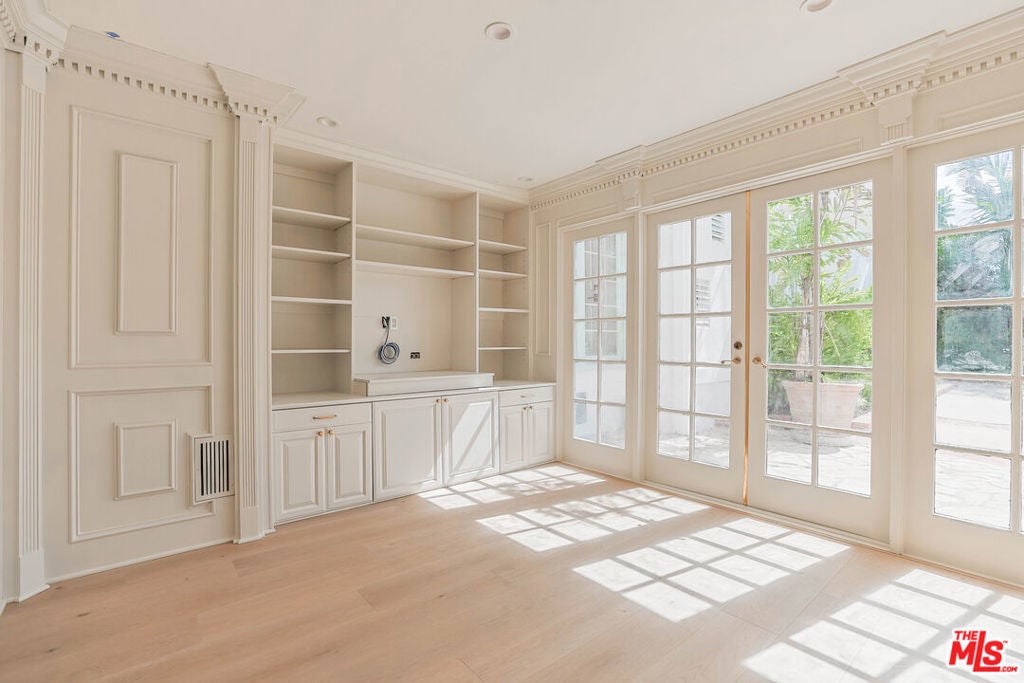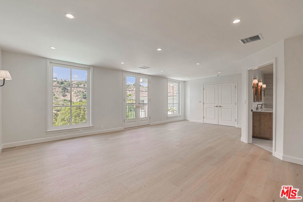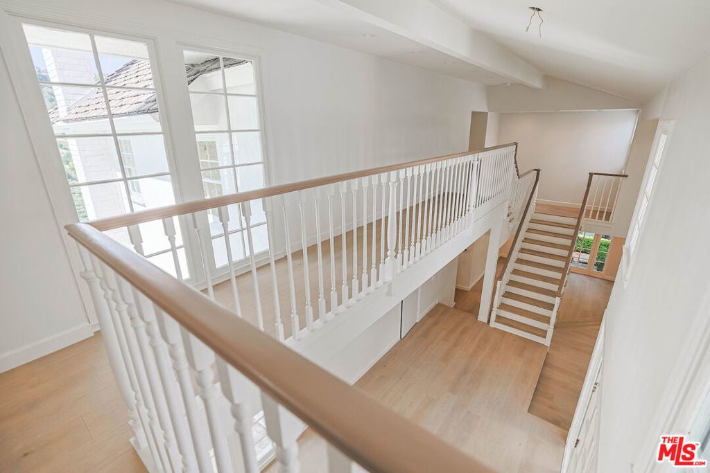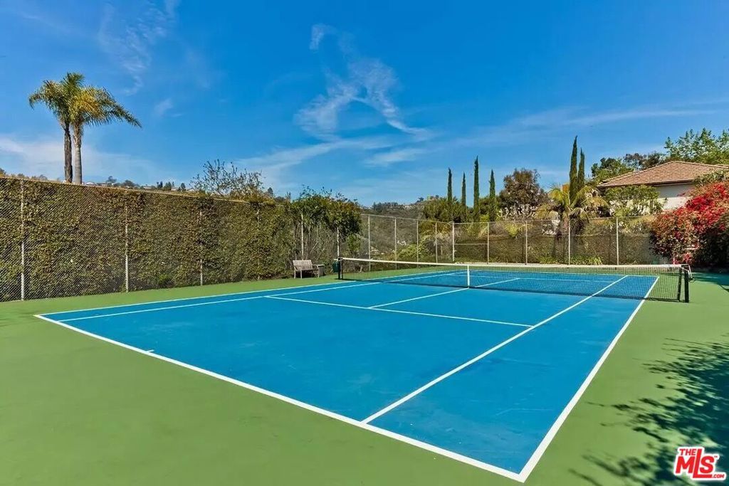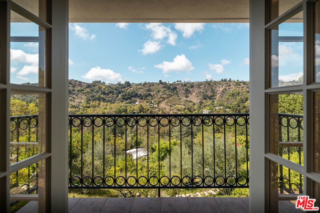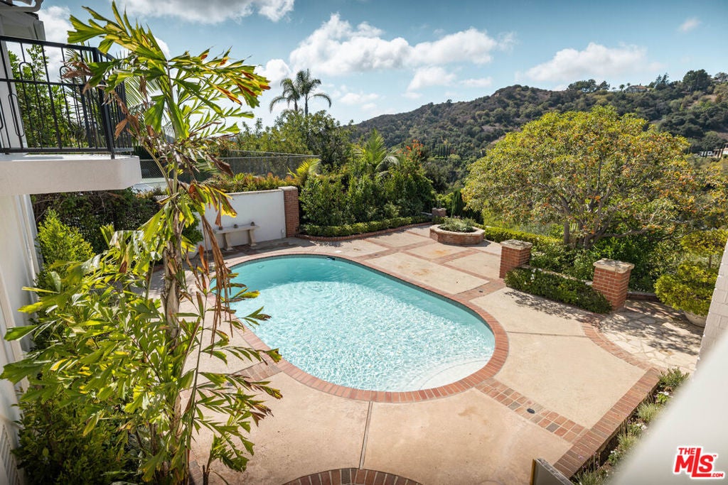 PRIVATE GATED BHPO RETREAT WITH WEST FACING VIEWS & PRIVATE POOL & TENNIS COURTS. This newly renovated +/- 4,000 SF home is the perfect family retreat, offering 4 bedrooms plus a library/den office with an ideal layout and thoughtful finishes. Set within a secure gated community just minutes from Sunset Blvd off Benedict Canyon, the property combines privacy, tranquility, and functionality. High ceilings welcome you into the living room, with new hardwood and tile flooring carrying throughout the house. An oversized primary suite and an additional en-suite master anchor the upstairs level, alongside two perfectly apportioned bedrooms. East-facing exposure fills the interiors with natural light from sunrise to sunset.Outdoors, the home feels like Tuscany, with insane mountain views, a romantic garden, hillside pathway, fruit trees, and a large swimming pool surrounded by tranquil greenery. The property includes a 3-car garage, laundry room, and access to two community tennis courts. Fireplaces are decorative only.