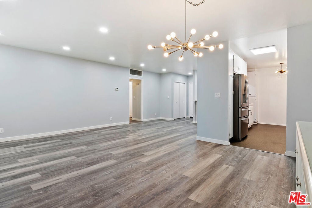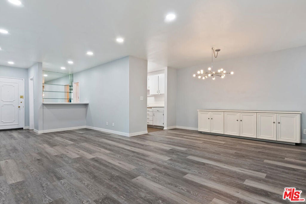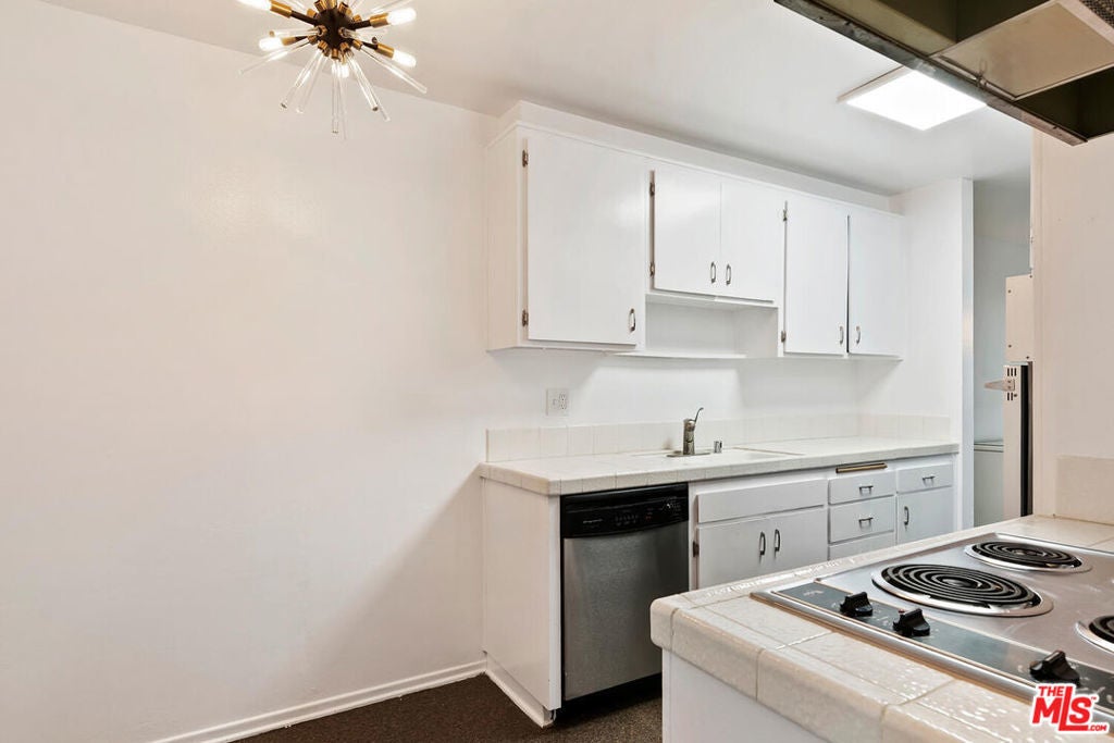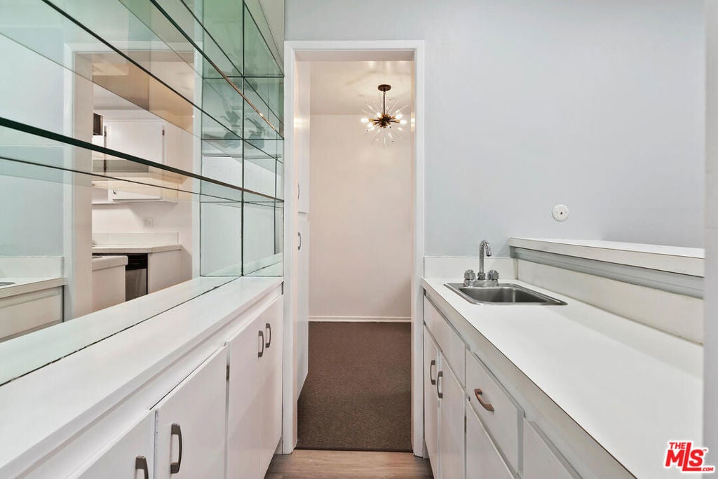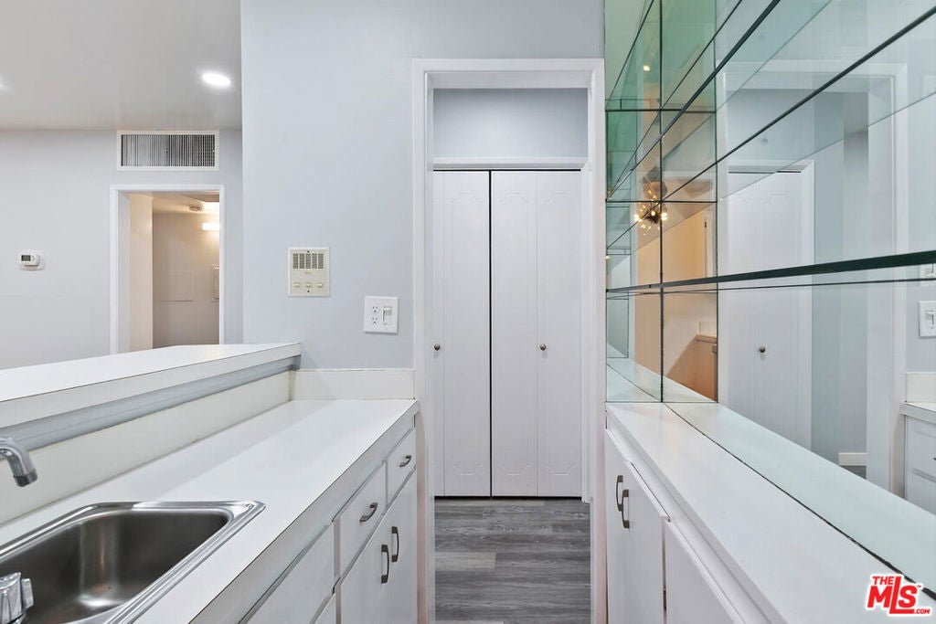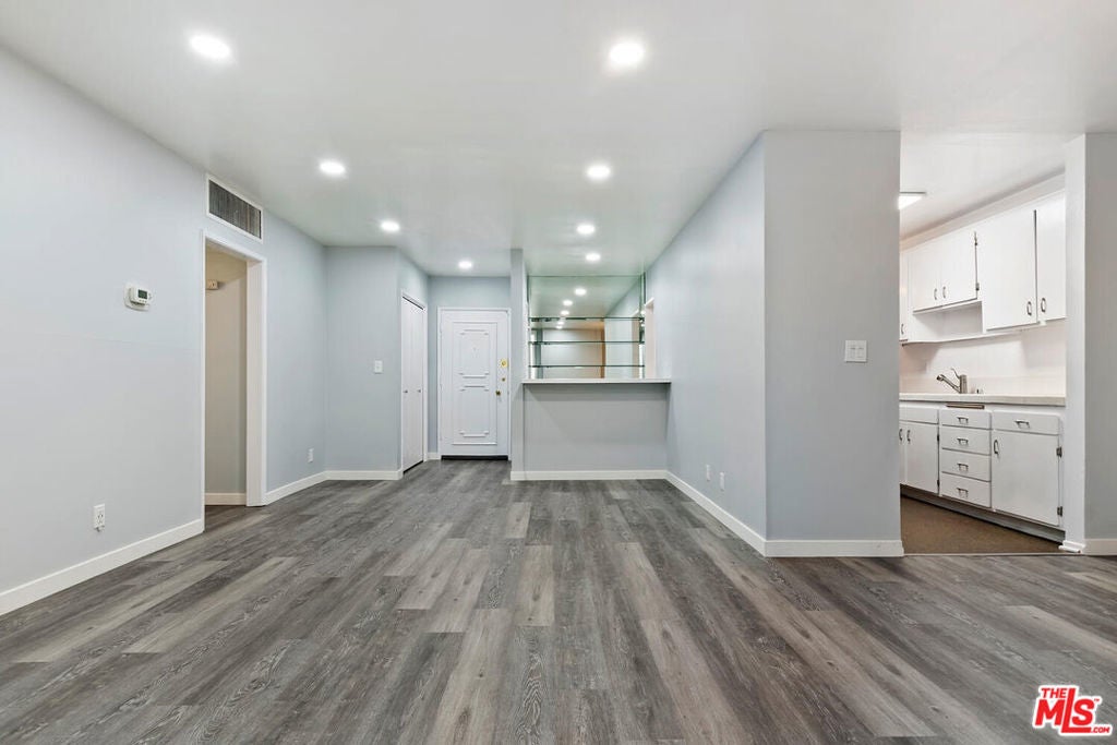 Recently Renovated Large One Bedroom. Beautiful, modern, new lighting, new engineered wood, new carpeting, newly painted unit, new heating, and cooling system. Double door entry opens to a large, updated living room, separate dining area, recessed lighting, and plenty of closet & storage space. Open floor plan, updated kitchen, custom cabinets. The sizable balcony c and bedroom. The Master bedroom consists of a large walk-in closet and bathroom with double sinks, rain shower, and side body sprays. Centrally located, walking distance to shopping, restaurants, bars, and endless entertainment on Santa Monica Blvd. Unit is in a quiet, 60 unit complex with controlled access, a swimming pool, laundry room, 1 garage parking space and basic cable (Spectrum) included.