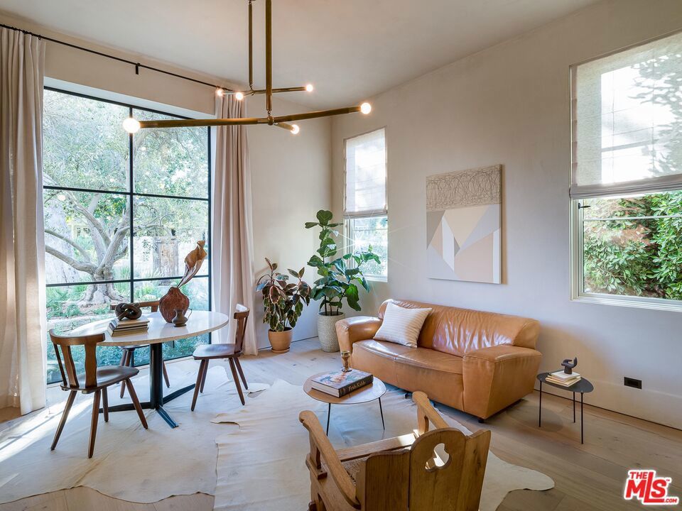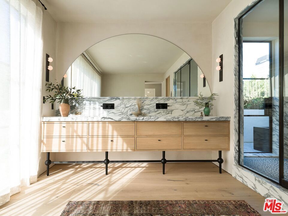 Located on a quiet tree-lined street in the prestigious Longridge Estates sits this newly constructed architectural masterpiece with a fully permitted detached Accessory Dwelling Unit (ADU). Designed with precision and artistry, the residence balances bold form with refined detail. Two striking A-frame volumes rise above the central mass and open to upper-level deck gardens with lush views. Inside, the grand entry hallway showcases sanded limestone floors, oak-encased beams and lighting by Apparatus Studio. A private den and bar with its own courtyard offers the perfect setting for intimate entertaining. The main living, dining and kitchen areas connect seamlessly to the outdoors through expansive Euroline steel doors. Behind the chef's kitchen, a fully equipped prep kitchen enhances functionality for large-scale gatherings. A dramatic staircase with fluted clay walls and custom brass handrails leads to the upper landing, illuminated by a 14-foot steel skylight and framed by garden views. The primary suite exudes understated luxury with a barrel-vaulted clay ceiling, vintage lighting and bespoke woven linen drapery. Dual walk-in closets are anchored by white oak cabinetry, custom hardware, Sub-Zero refrigeration and vintage vanity mirrors. The spa-like primary bath is clad in Calacatta marble with a steel-framed shower that opens to a private garden and outdoor soaking tub accented by Samuel Heath fixtures and Allied Maker lighting. The backyard offers complete privacy with a black-bottom pool, infrared sauna, fire pit lounge and generous space for relaxation and entertainment. The fully integrated ADU (4139 Mary Ellen Ave) provides its own elegance with a kitchen and full bath. Within the highly acclaimed Dixie Canyon Charter School district and moments from the Sportsmen's Lodge and Ventura Boulevard's premier shopping and dining, this exceptional home should not be missed.