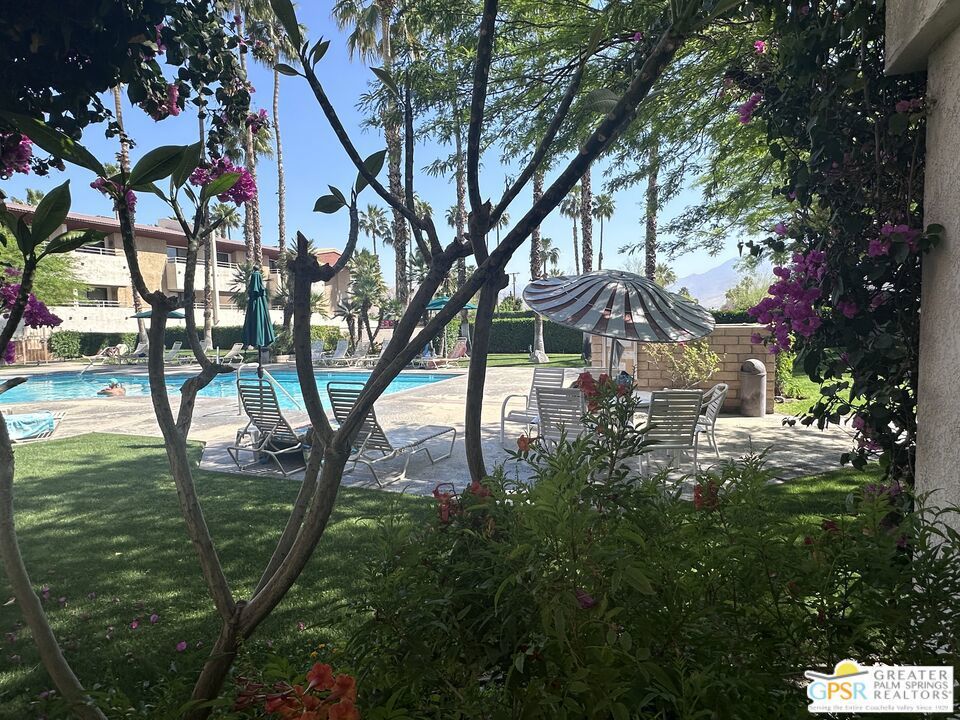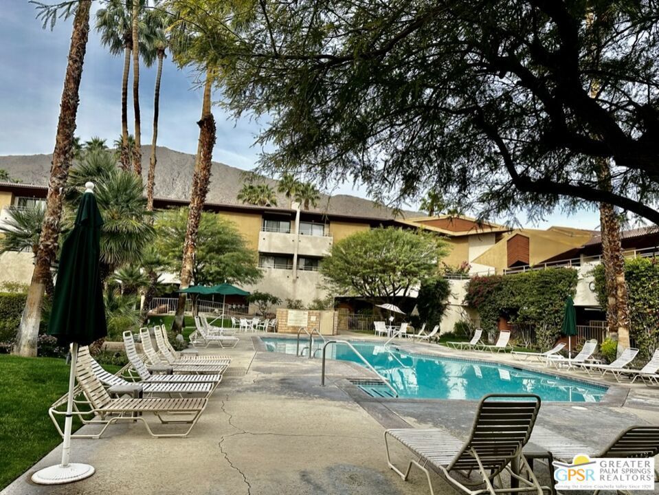 This is an incredible price for an adorable turnkey condo adjacent to downtown Palm Springs! Seller highly motivated. Biarritz is known for its lovely grounds, proximity to downtown Palm Springs. This is a charming unit, a successful short term rental, with balconies in the front and back. It is turnkey furnished and ready for the next owner to move right in. The A/C, dishwasher and disposal were all replaced in 2023 and new granite counters and vanity top in August 2024. With well tended grounds, pools, spas, tennis courts and underground garage, residents are ready to experience the Palm Springs resort lifestyle. Buyer to confirm with city re: availability of license to rent. Buyer to confirm with city re: availability of license to rent.