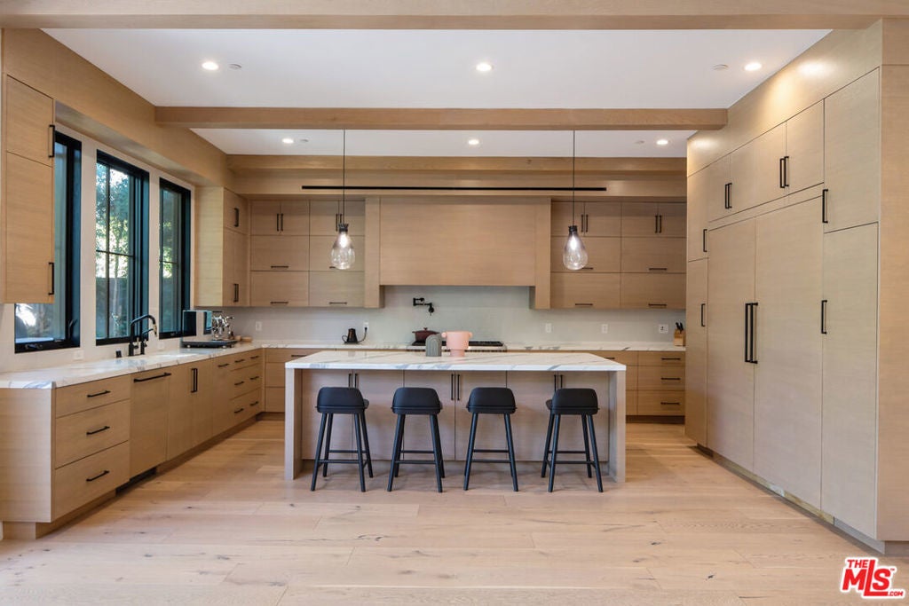 One of the finest examples of blending organic and modern design, this stunning West Hollywood home redefines luxury living with elegant design and state-of-the-art amenities. Spanning approximately 5,036 square feet, this smart home is a masterpiece of seamless, light-filled spaces and designer finishes. The grand primary suite impresses with double-entry doors, soaring ceilings, a walk-in closet, and a luxurious spa-inspired bathroom. The gourmet chef's kitchen features custom countertops, high-end Sub-Zero and Wolf appliances, and a butler's pantry. The open kitchen and family room flow into the outdoor living space, creating a true indoor-outdoor experience. This home is thoughtfully equipped with a dual electric car charger in the garage and a state-of-the-art whole-house water filtration system with water harmonizing, ensuring comfort and convenience at every level. Perfect for entertaining, the property includes a private courtyard with an outdoor BBQ, a beautifully landscaped backyard, and a private, state-of-the-art movie theater. With Control4 home automation, this property balances classic elegance with cutting-edge convenience, making it a standout retreat. Owner has record of previous city approved permit for a 10" x 26" pool with 10" x 5" hot tub.