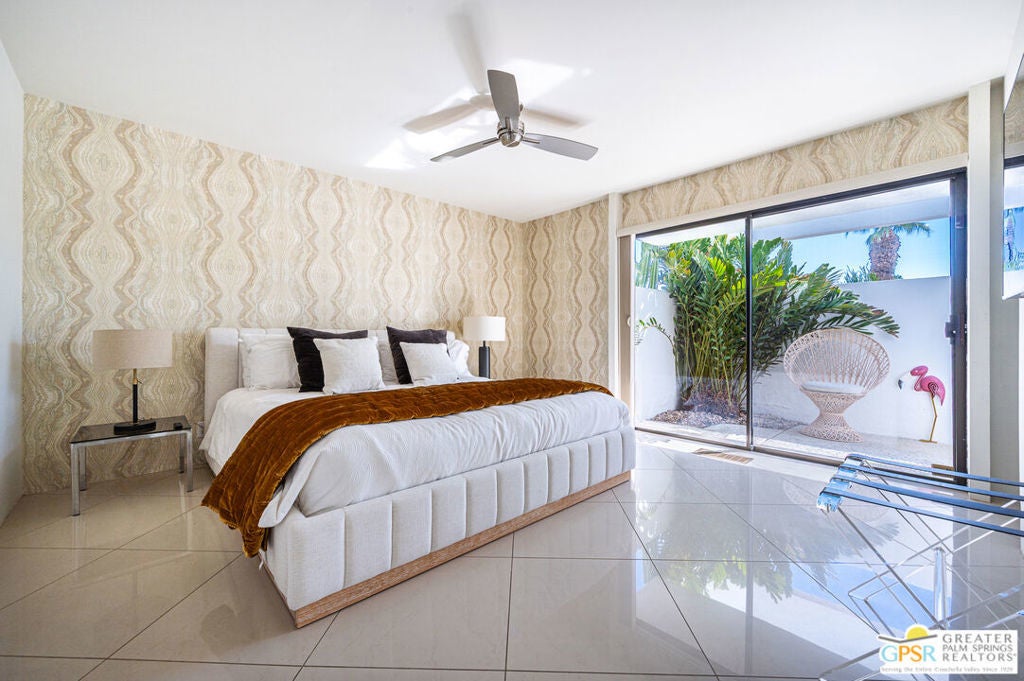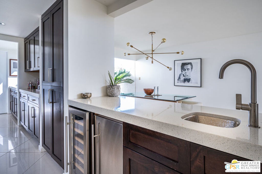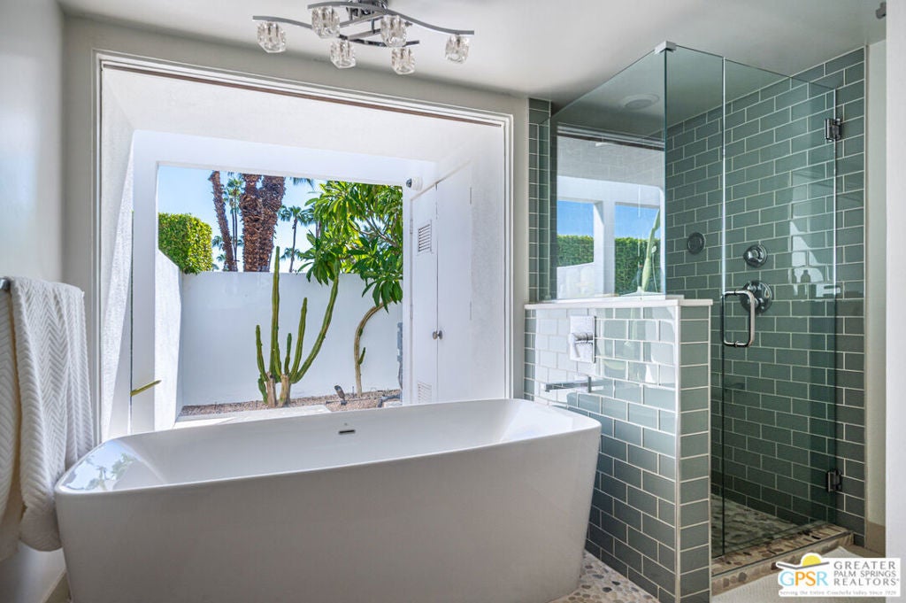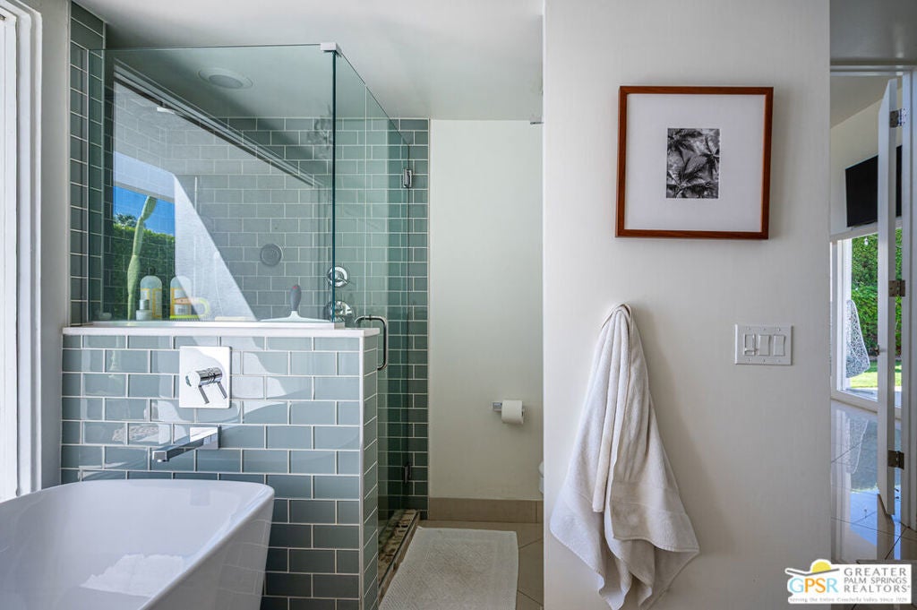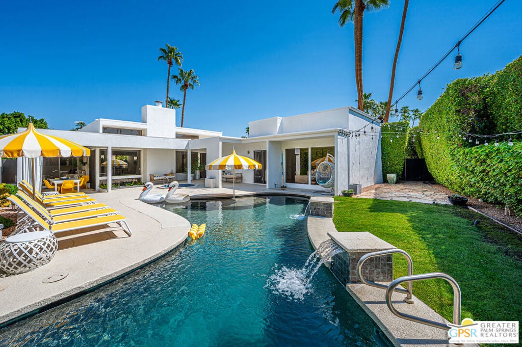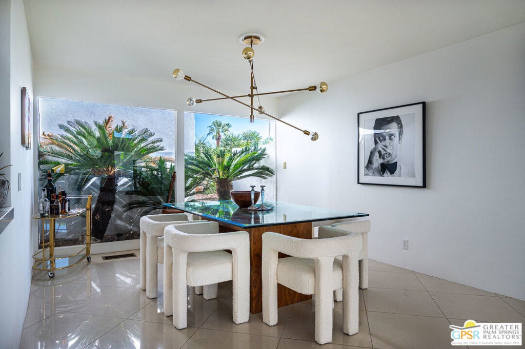 Prime Twin Palms Location | Contemporary Desert Living. Discover the perfect blend of style and sophistication in this stunning contemporary home, ideally located in the highly coveted Twin Palms neighborhood of Palm Springs. Step inside and be greeted by soaring ceilings, clerestory windows and walls of glass that flood the home with natural light while framing breathtaking San Jacinto Mountain views. The open-concept floor plan creates effortless flow between the living, dining, and outdoor spaces perfect for entertaining. The chef's kitchen is beautifully updated and features premium appliances, a breakfast bar, and a casual dining area, complemented by a formal dining room for special occasions. The primary suite is a true retreat with panoramic mountain and pool views and a spa-inspired bath with soaking tub, and an expansive walk-in closet. The second ensuite bedroom includes a private patio for added privacy. The third bedroom has been converted to a media/den space but can easily be restored. Step outside to your private resort-style backyard, complete with a pool and spa, generous patio areas, and iconic Palm Springs views. Owned solar adds efficiency and value. This is the quintessential Palm Springs lifestyle at its best. Architectural design, modern upgrades, and a premier location.
