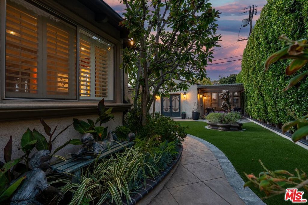 Your search for an elevated 1920s Spanish Revival concludes at 6657, where meticulous enhancements and preserved architectural romance anchor timeless character in the heart of Beverly Grove. Nestled behind mature hedges and a secure gated entry, the residence radiates a discreet elegance offering off-street parking, abundant natural light, and a fully permitted guest home for versatile living or hosting. Step inside to a vaulted, exposed wood-beam ceiling crowning the main level, a formal dining room, a thoughtfully appointed cook's kitchen with Wolf range, and an airy den flowing seamlessly to the tranquil backyard. Hand-wrought ironwork, a restored stone fireplace, and curated lighting honor the home's 1920s origins while embracing modern convenience. Upstairs, the primary suite with sitting room frames serene city and mountain vistas, while a secondary bedroom provides a welcome retreat from the city's vibrant pulse.Across decades of stewardship, worldly craftsmanship has shaped every finish from crackled door treatments, hand-stained baseboards, and refinished original oak floors to Ralph Lauren suede walls, designer lighting (Restoration Hardware, Swarovski), and bespoke iron railings. These artisan details give the home a layered sophistication that is rarely replicated in modern builds. The landscaped backyard, designed as a private oasis with bespoke fire pit and cohesive hardscape, also presents extraordinary untapped potential ample room for a pool addition, ADU expansion, or even thoughtful enlargement of the main residence. For buyers seeking not only a turnkey Spanish Revival but also the ability to imprint their own vision, this lot offers rare flexibility in Beverly Grove. Across decades of stewardship, no expense has been spared on upgrades ranging from new HVAC systems, full electrical/mechanical overhauls, custom roofing, to a Kohler generator, EV charging, clamped copper piping and more ensuring steadfast peace of mind. Although world-class dining, shopping, and cultural venues lie just beyond your doorstep, you may find little reason to leave this exquisitely maintained haven. For the connoisseur of historic architecture who values both authenticity and future-ready possibilities, a private viewing is strongly recommended. An extensively detailed record of improvements is available upon request.