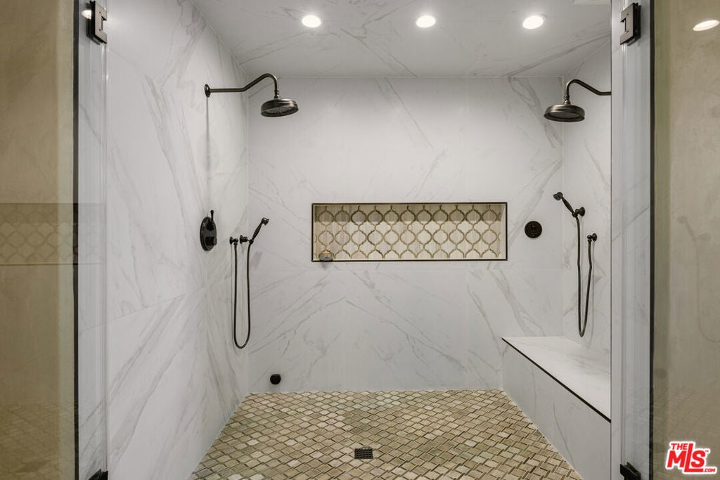 Sited on close to half an acre sits this private and gated Spanish Colonial Villa estate in the best part of Los Feliz. Steps from shops and dining in the Village, this resort style retreat is the ultimate getaway. An abundance of natural light floods the spacious grand living areas with soaring ceilings, a beautifully paneled library, formal dining with 2 way fireplace, spectacular built-ins and a full Chef's gourmet kitchen plus a secondary kitchen. Unwind in the movie theater with private bar or retreat to the Resort style pool and spa with waterfall. The Primary suite is fit for royalty with a sitting area, luxurious en-suite bath with dual showers and soaking tub and enormous walk-in closet - all located on fully gated and secure grounds with private, gated parking for 7 cars. Steps from Restaurants, shops, summer concerts at The Greek Theater and the hiking trails of Griffith Park.