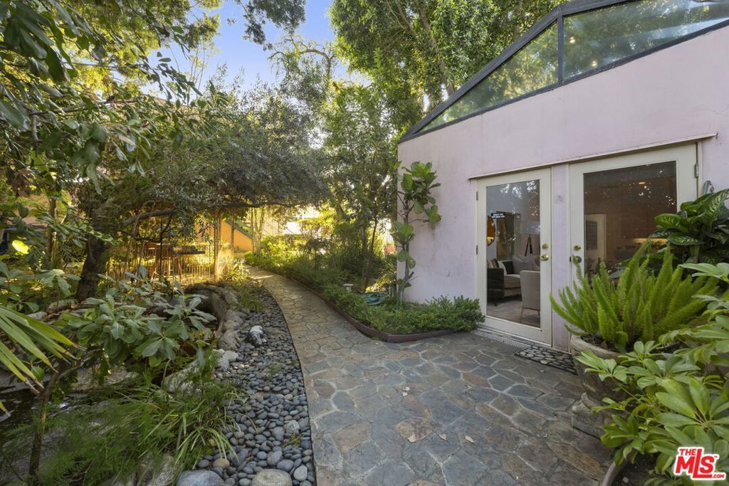 OPEN HOUSE SCHEDULED FOR SUNDAY 11/16 IS CANCELLED DUE TO CONTINUING RAIN! JUST REDUCED! MAJOR PRICE REDUCTION! Outstanding opportunity to acquire an extraordinary 1+ acre compound featuring three separate structures set behind a gate at the end of a private driveway above Hollyridge Drive. The main residence, freestanding guest house, and separate studio above the detached garage provide an abundance of functional space in which to live, work, and entertain amidst a sprawling landscape affording a remarkable sense of privacy. Sited perfectly along a vast ridge and high above the canyon, you will marvel at the unobstructed views of the Downtown Los Angeles skyline, the Griffith Observatory, and the iconic "Hollywood" sign all visible from your own backyard. Distinctive1980's architectural designed by Michael Pearce and Richard Clemenson highlighting many of the characteristic details of the era, including large picture windows, glass block, bleached oak floors, a breezy pastel color palette, and multiple patios & terraces from which to take in the incredible 280-degree wrap-around vistas. The main residence consists of 3 bedrooms + 6 baths with a flex room and an upstairs loft currently configured as an entertainment space & office and poised for reimagination as a dramatic 2-room primary suite. Full separate guest house located at the opposite end of the property features a living room/lounge crowned with a dramatic atrium ceiling, kitchenette, 1 bedroom, 2 baths, and multiple French doors leading to assorted patios bordered by a canopy of trees and lush greenery. The expansive grounds consist of multiple outdoor areas including rolling lawn, a swimming pool, lounging decks, flower & cactus gardens, BBQ station, and a vast flat grassy pad providing the ultimate play area. Ideal for a developer, owner/user, artist, or rock star seeking privacy and the space to create an art or recording studio in a separate detached structure. The longtime home of legendary television writer/producer David Jacobs, creator of the classic drama series DALLAS and spinoff KNOTTS LANDING, who along with his wife and children, acquired a sequence of lots over a span of years to create this one-of-a- kind estate still brimming with possibilities and unlimited potential. Utterly unique & memorable. No sign on property.