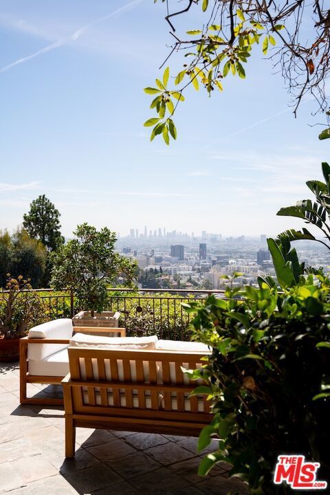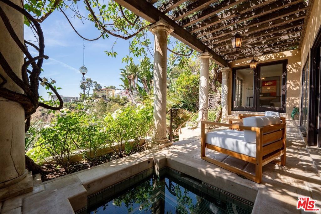 Welcome to an enchanting retreat in the heart of the Hollywood Hills, where timeless character meets modern allure. Tucked away at the end of a tree-lined cul-de-sac in coveted Outpost Estates, this gated Tuscan-inspired villa offers the perfect balance of privacy, romance, and sweeping city views.Set behind walls and surrounded by sunlit gardens, the estate welcomes you through a grand courtyard into interiors rich with artisan craftsmanship. Dramatic coffered ceilings, hand-forged ironwork, and dark wood floors lend an air of old-world sophistication, while expansive windows and French doors bathe each room in natural light.The chef's kitchen, designed with a center island, custom cabinetry, and stenciled pavers, is a culinary haven that flows seamlessly into the home's warm gathering spaces. The primary suite is a sanctuary in itself, featuring a cozy fireplace, private patio, and spa-like tiled hot tub positioned perfectly for sunset views.Multiple verandas embrace the outdoors, providing inviting spaces to host, relax, or simply gaze out at the glittering city lights below. With three spacious bedrooms, lush grounds, and ample room for a pool, this residence offers both a luxurious lifestyle today and endless opportunity to reimagine tomorrow.Just moments from world-class dining, retail, and nightlife, this extraordinary property captures the essence of creative inspiration and refined living in one of Los Angeles' most iconic neighborhoods.
