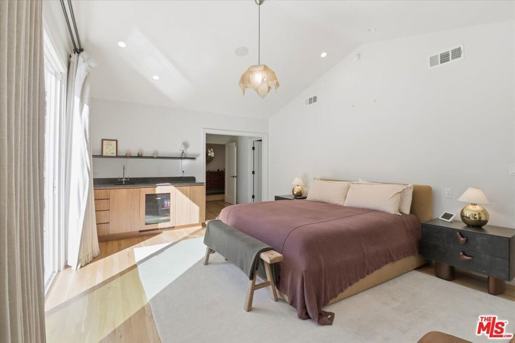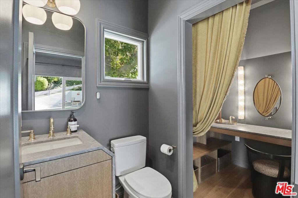 Welcome to this exquisitely reimagined 1938 residence, a timeless retreat nestled in the heart of Outpost Estates at the base of the Hollywood Hills. This designer-done estate masterfully blends Old Hollywood glamour with modern sophistication, offering a rare fusion of architectural integrity and contemporary luxury. Behind its romantic, historic faade lies a fully transformed interior, where no detail has been overlooked and no expense spared.The home unfolds across 4,207 square feet of refined living space, framed by natural textures and ultramodern finishes. A grand living room sets the tone with its striking Paonazzo Corchia marble fireplace, flowing seamlessly into an elegant dining area perfect for hosting. The chef's kitchen, with its own integrated coffee pantry, pass-through window and custom temperature-controlled wine cellar are ideal for curated entertaining.The spacious bedrooms all include custom designed closets, and with the six luxurious bathrooms, you're provided with flexibility for both family living and comfortable guest accommodations.A row of French doors open wide to reveal a resort-like backyard oasis, lushly landscaped and framed by mature palms and rose bushes. An outdoor kitchen with pizza oven, sparkling pool, fire pit, and expansive patios invite effortless indoor-outdoor living. Whether you're enjoying a quiet morning coffee or a lively evening under the stars, every corner of this estate feels like a curated escape.Additional highlights include the option to purchase the home fully furnished. With its mix of one of a kind vintage furniture, collectible contemporary, and bespoke pieces that are designed specifically to fit the space - It's a true turnkey opportunity. Set on an impressive 11,355-square-foot lot, the property offers a rare sense of privacy while remaining moments from the pulse of the city.A captivating expression of historic charm and modern elegance, this Outpost Estates gem is more than a home - it's a lifestyle.
