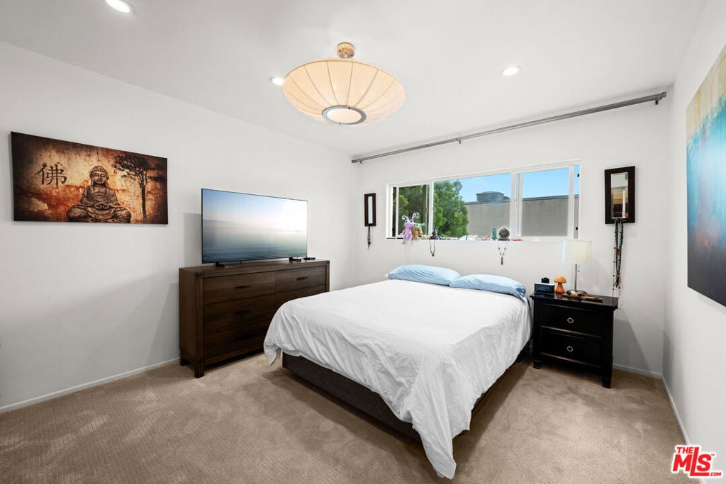 Elevate your lifestyle in this elegant top-floor condominium bathed in natural light and offering sweeping, panoramic views of West Hollywood, Beverly Hills, and the Hollywood Hills. This sophisticated residence boasts an expansive open-concept floor plan, where the spacious living room with a sleek fireplace and modern recessed lighting flows seamlessly to an oversized dining areaperfect for stylish entertaining. Floor-to-ceiling sliding glass doors open to a covered balcony, creating an effortless indoor-outdoor living experience. The well-appointed kitchen features new stainless steel appliances, generous cabinetry, and a charming walk-in pantry, offering both function and finesse. Retreat to the serene primary suite, complete with a luxurious en-suite bathroom featuring a beautifully upgraded double vanity and a custom walk-in closet with built-in organizers. A second renovated bathroom and a spacious guest room provide ample space and comfort with a walk-in closet. Additional highlights include central HVAC, in-unit laundry, and two dedicated parking spaces. Residents enjoy access to resort-style amenities, including a sparkling pool, sun deck, and stylish clubhouse. The unit also includes 2 tandem parking spots and a storage space in the garage. Ideally situated in the heart of West Hollywood, this chic condo is just steps from the city's most iconic dining, shopping, and nightlife. Moments from Cedars-Sinai, the Sunset Strip, and the Pacific Design Center, this is Westside living at its finest.