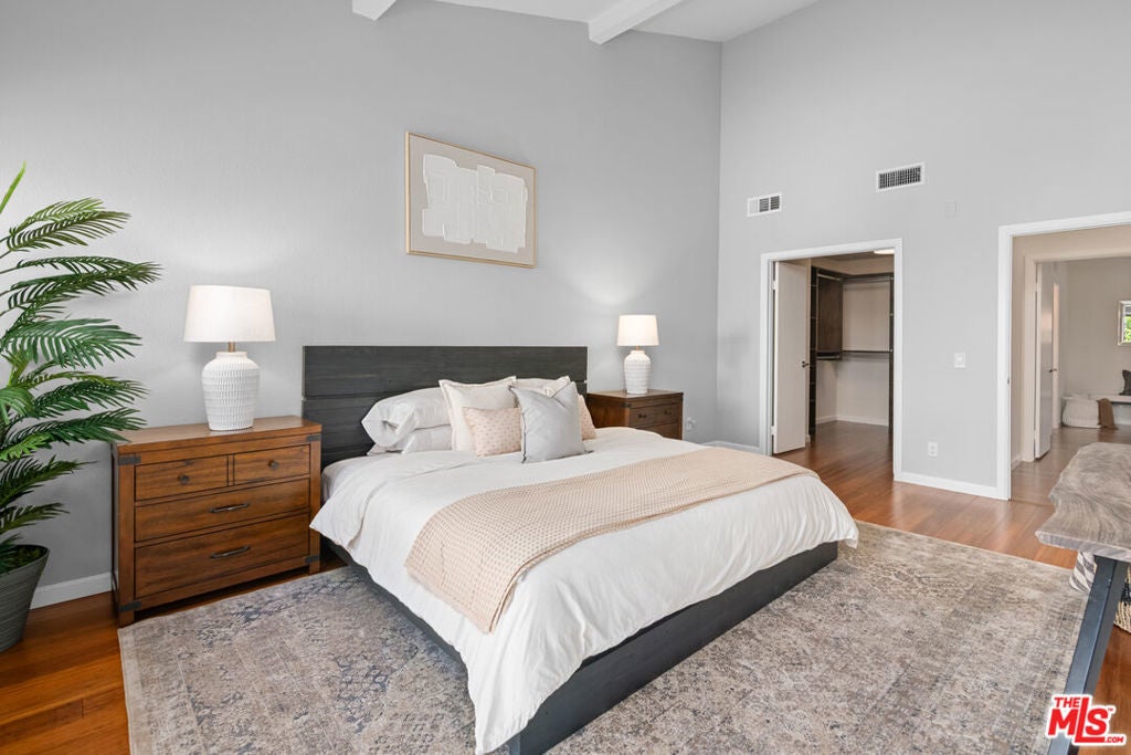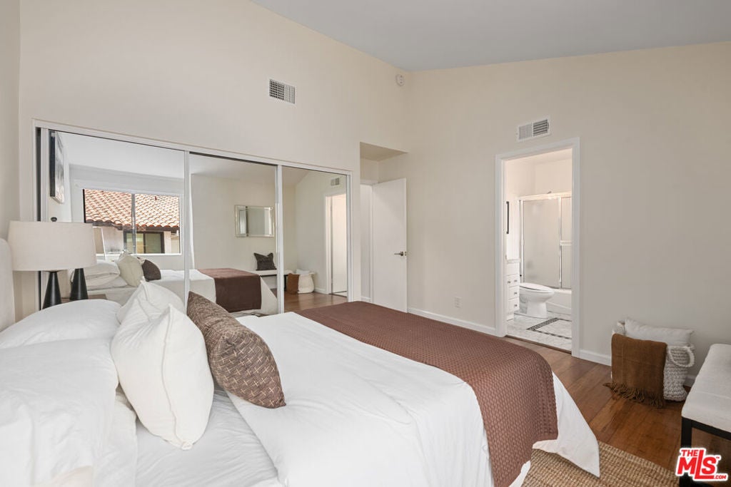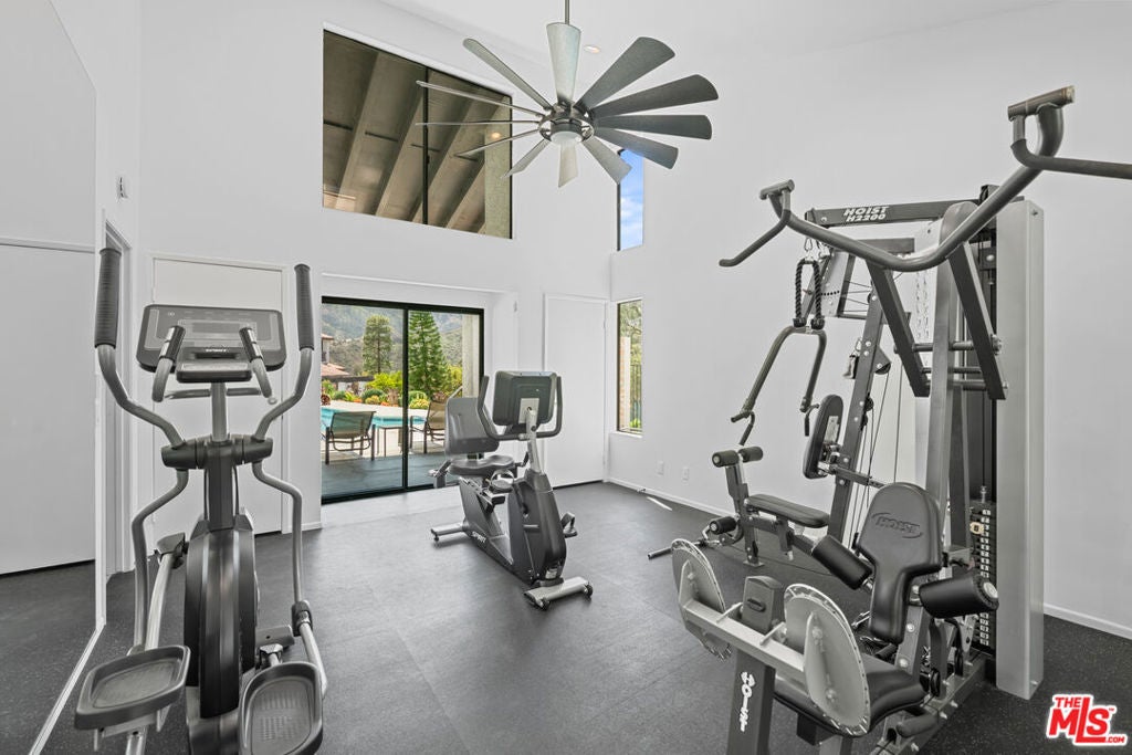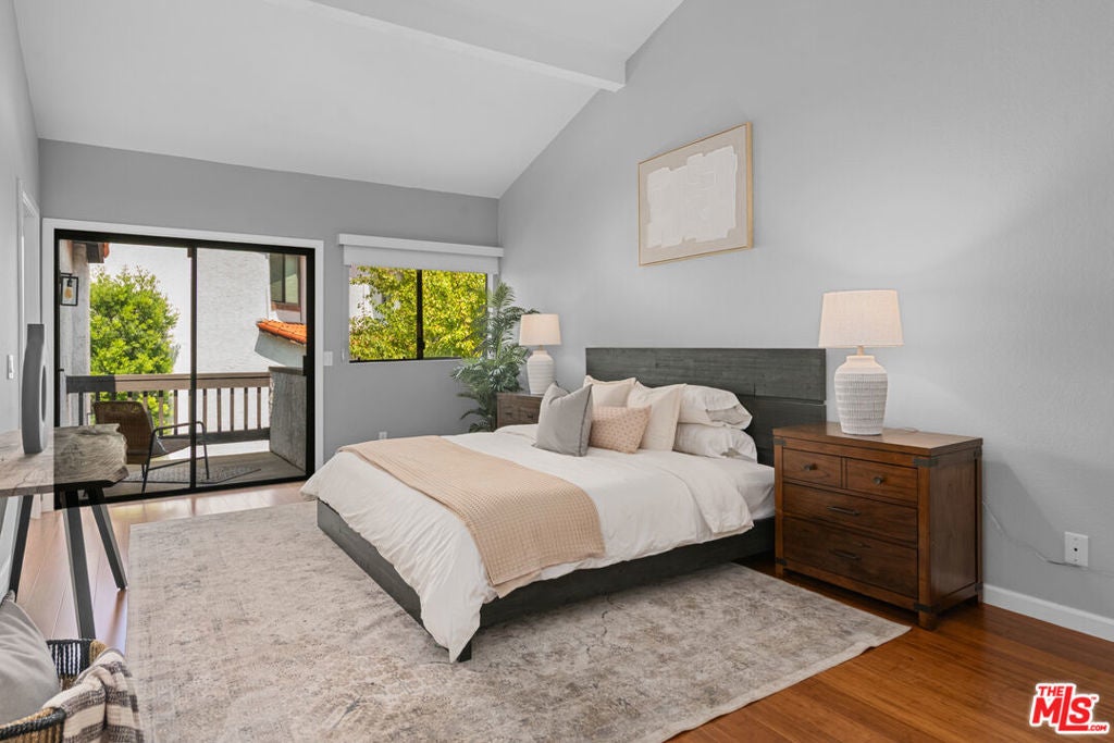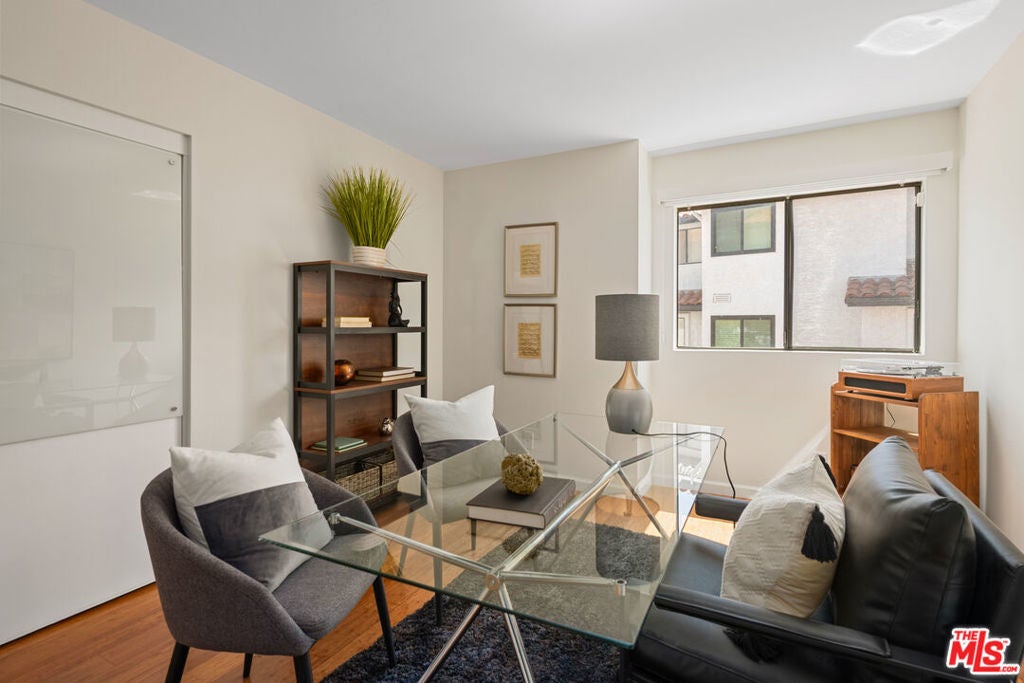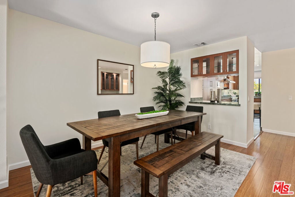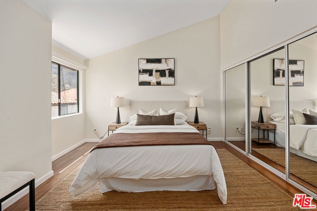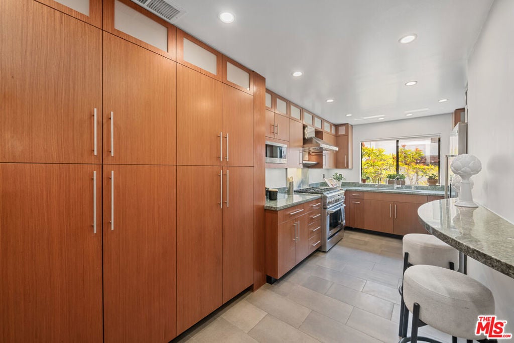 Step into this beautifully designed home featuring an inviting open floor plan that seamlessly integrates the living room with high ceilings, a striking rock stone fireplace, bamboo flooring and an al fresco dining area perfect for entertaining. The spacious dining room boasts elegant glass railings and a stylish bar that leads to a gourmet kitchen, complete with dramatic mood lighting, stainless steel appliances, granite countertops, and custom "pull out" shelving cabinetry. Enjoy the convenience of a built-in microwave, a deep "D" sink, two wine chillers, cozy breakfast bar that are all seated on beautiful ceramic floors. The main level features an exclusive private office or 3rd bedroom that offers complete privacy from upstairs life. A central skylight bathes soft light onto the stunning upstairs mahogany bookcase then gently pours that light down through the glass railed stairwell to the dining area. The luxurious primary bedroom is a true retreat, equipped with a thoughtful designed custom walk-in closet and private balcony that provides relaxing garden greenbelt and mountain views. The master bath features double sinks and large spa tub that offer a serene escape. The second bedroom, also on the upper level, includes an updated bath providing comfort and style. Additional highlights of this freshly painted exceptional home include bamboo wood floors, tankless water heater, epoxy floor in the garage and comprehensive security system. The outdoor space is equally impressive featuring a spacious entertainers patio with privacy hedging perfect for socializing with family and friends. Just up the path is a sparking swimming pool framed by a mountainous landscape featuring a spa, gym, and sauna for ultimate relaxation and recreation. Enjoy the security of a spacious 2 car garage with direct access and adjacent dedicated laundry area with ample cabinet space. There is additional utility in an under the home storage area access door. This residence also provides exclusive entry to a unique private park featuring dog-friendly zones, a playground, and expansive grassy areas, all located just minutes from the beach and picturesque local hiking paths that meander endlessly through the Santa Monica Mountains. Seize the chance to make this beautiful home yours! Fireplaces are considered decorative; therefore, the seller will not provide any repairs or credits.